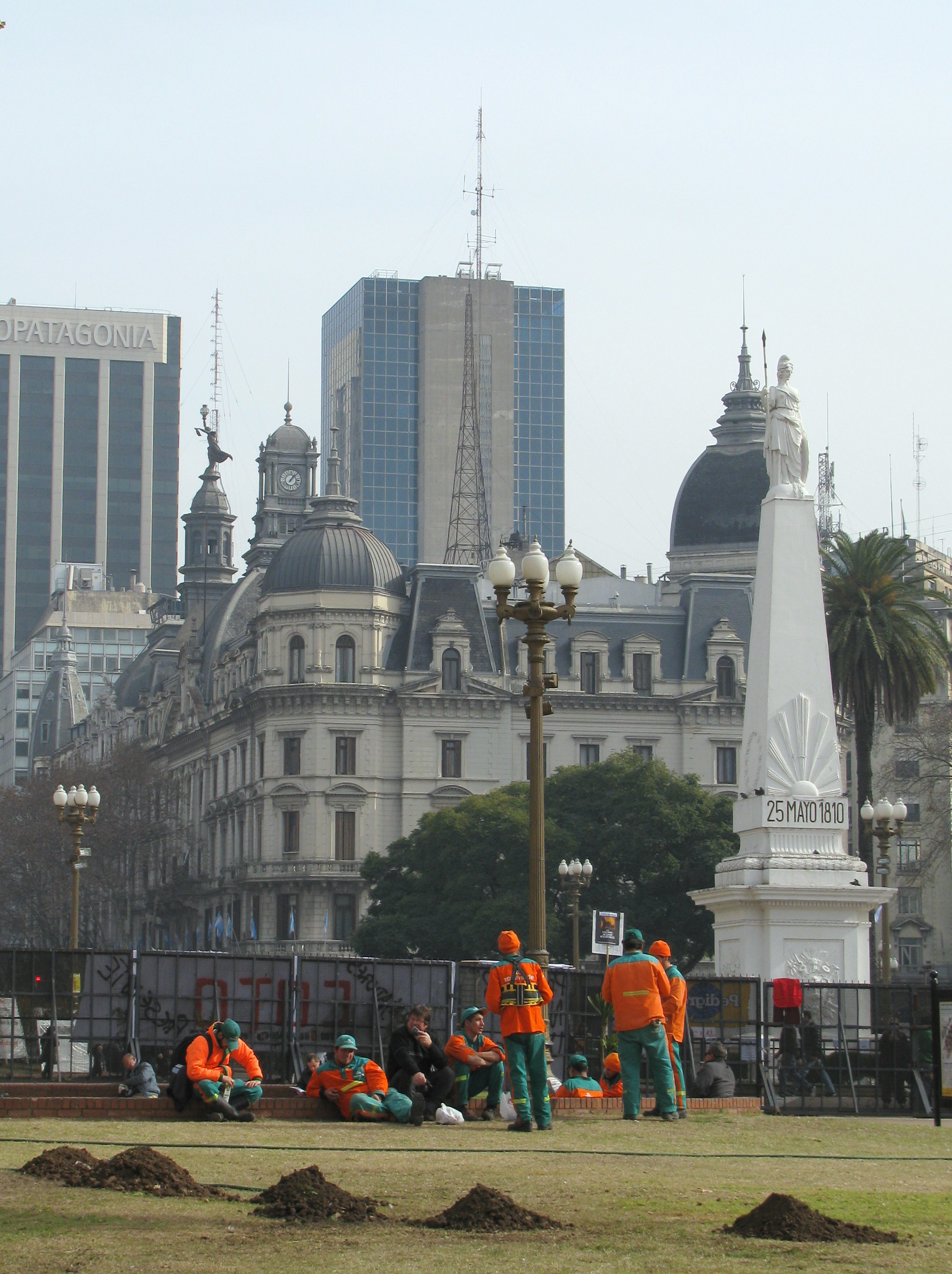 Aangezien we het weekend niets kunnen doen en het zaterdag een feestdag is, gaan we als toeristen op pad. Eerst lopen we door Recoleta, de rijkeluisbuurt waar Maxima heeft gewoond. We bekijken de begraafplaats en lopen door naar Palermo, waar het hip is. We lunchen heerlijk op straat. De temperatuur valt ons