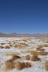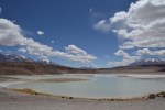 hoge snelheid tegemoet rijden. Met knipperende lichten hopen we maar dat ze ons op tijd zien. Laguna Verde ligt vlak voor de grens en maakt de verwachtingen niet waar. Bij de immigratie vraagt de beambte geld voor een stempel. Ik vraag waarom en dat is blijkbaar al genoeg om hem op andere gedachten te brengen. Even later staan we op het asfalt van Chili de banden op te pompen. Heel apart.