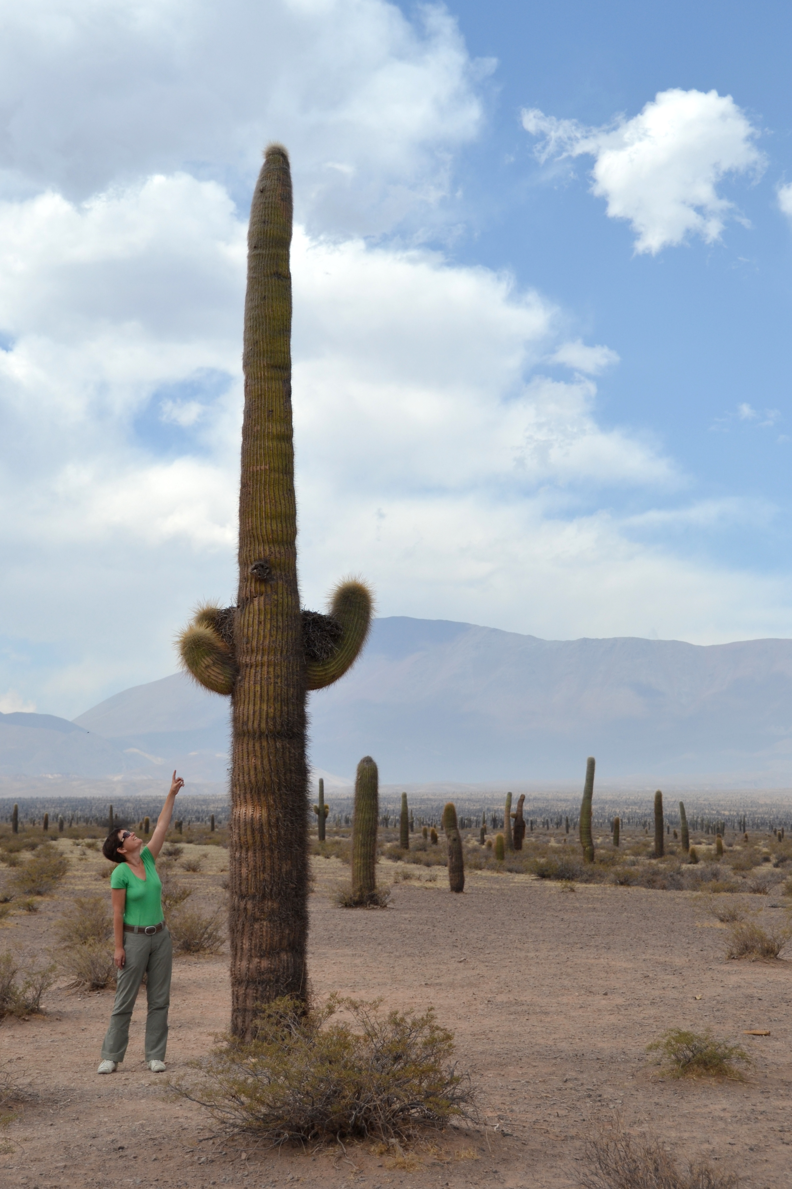 Vrijdag 30/9 rijden we eerst naar een supermarkt om wat in te slaan en Internetten wat in een café. We maken een prachtige rit via de Cuesta del Obispo en het Parc National Los Cardones. Dit kleine park staat vol met cactussen en dat is heel fotogeniek. Ook fotogeniek blijkt onze auto, als een toeriste even snel op de foto gaat. Grote hilariteit. Aan het einde van de dag komen we bij Cachi