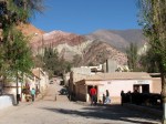 foto’s te maken en dus passeren we de Salinas Grandes. Als we verderop een zijtak van de Quebrada de Humahuaca (=werelderfgoed) inrijden, zijn we toch onder de indruk (ook van het hellingspercentage). Doel vandaag is het dorpje Purmamarca, dat nogal toeristisch schijnt te zijn. Als we er aankomen ligt het dorpje prachtig tussen de gekleurde rotsen en wemelt het er inderdaad van de toeristen (vooral Argentijnen) rond de souvenirmarkt op de Plaza. Zo te zien wordt het tijd dat ik een trainingsbroek of andersoortige stretchbroek aanschaf om niet op te vallen. Argentijnse toeristen (vooral de vrouwen) zijn net Amerikanen; aan de zware kant met nogal smakeloze kleding en gympen. We parkeren de Landcruiser bij Hosteria Bebe Vilte op de parkeerplaats (= de camping, 60 AR$) en gaan snel naar de Plaza om het schouwspel te bekijken met een biertje. We ontmoeten de Duitsers in de pickup weer en ’s avonds eten we gezellig in een restaurantje met live-muziek. De volgende morgen knoopt Joost een praatje aan met de Duitsers, want de Mitsubishi Pick-up met camperopbouw heeft onze aandacht getrokken. We nemen een kijkje en het blijkt dat Joost wel kan helpen bij een lekkende dieseljerrycan. Daarna gaan we op weg naar de Camping Municipal van Salta, dat schijnt een ontmoetingsplek te zijn voor ‘overlanders’. We zijn benieuwd. De rode weg naar Salta blijkt ineens een hele smalle steile bergweg te zijn en dus duurt het langer dan gedacht. Op het hoogste punt staan zo’n 20 Argentijnse toeristen ineengestrengeld elkaar te knuffelen. Apart volk. In Salta slaan we lekkere dingen in bij een prachtige supermarkt en laten de auto afspuiten. De camping valt vies tegen. Het is er nogal verlaten en