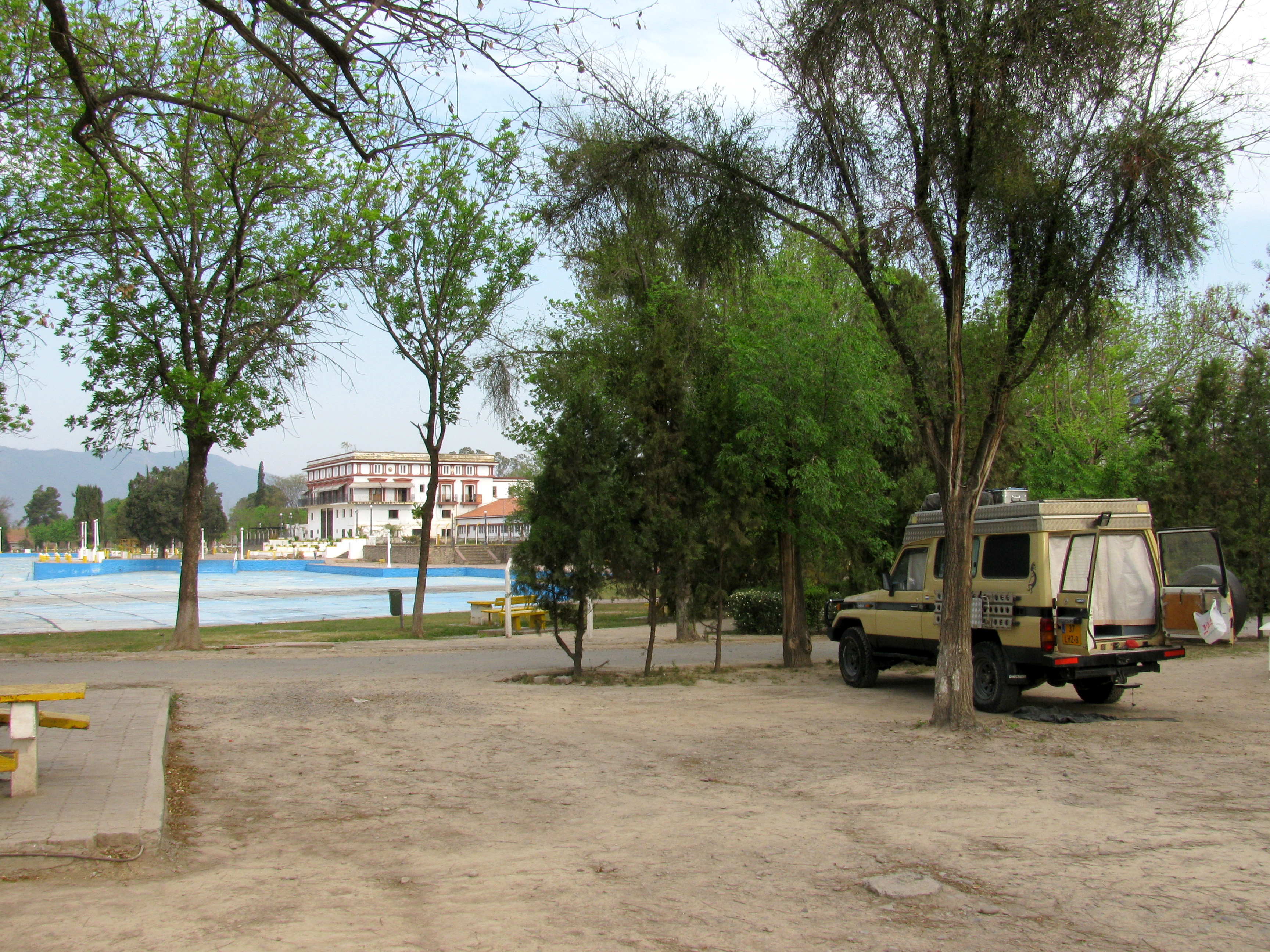 aan. Hier blijkt een prachtige Camping Municipal te zijn en dit lijkt een prima plek om even te blijven. We hebben een eigen plek met schaduw en een haagje eromheen, een grilplaats en een tafel. We kunnen warm douchen na 17 uur en het geheel kost 3 Euro per nacht! Minpuntje is wel dat het naastgelegen sportcomplex ook dienst doet als locatie voor evenementen en dus genieten we vrijdagavond, zaterdag de hele dag en zaterdagavond van resp. een jongerenfeest, een dag voor kinderen en een verjaardag. De muziek houdt het midden tussen smartlap, pop, en smurfenliederen. Desondanks blijven we hier 3 nachten en mesten de hele auto uit. Zondagmiddag genieten we van de plaatselijke parilla die vandaag jonge geit serveert, de regionale specialiteit, heerlijk. Prima stek hier. Op naar het Zuiden!