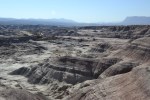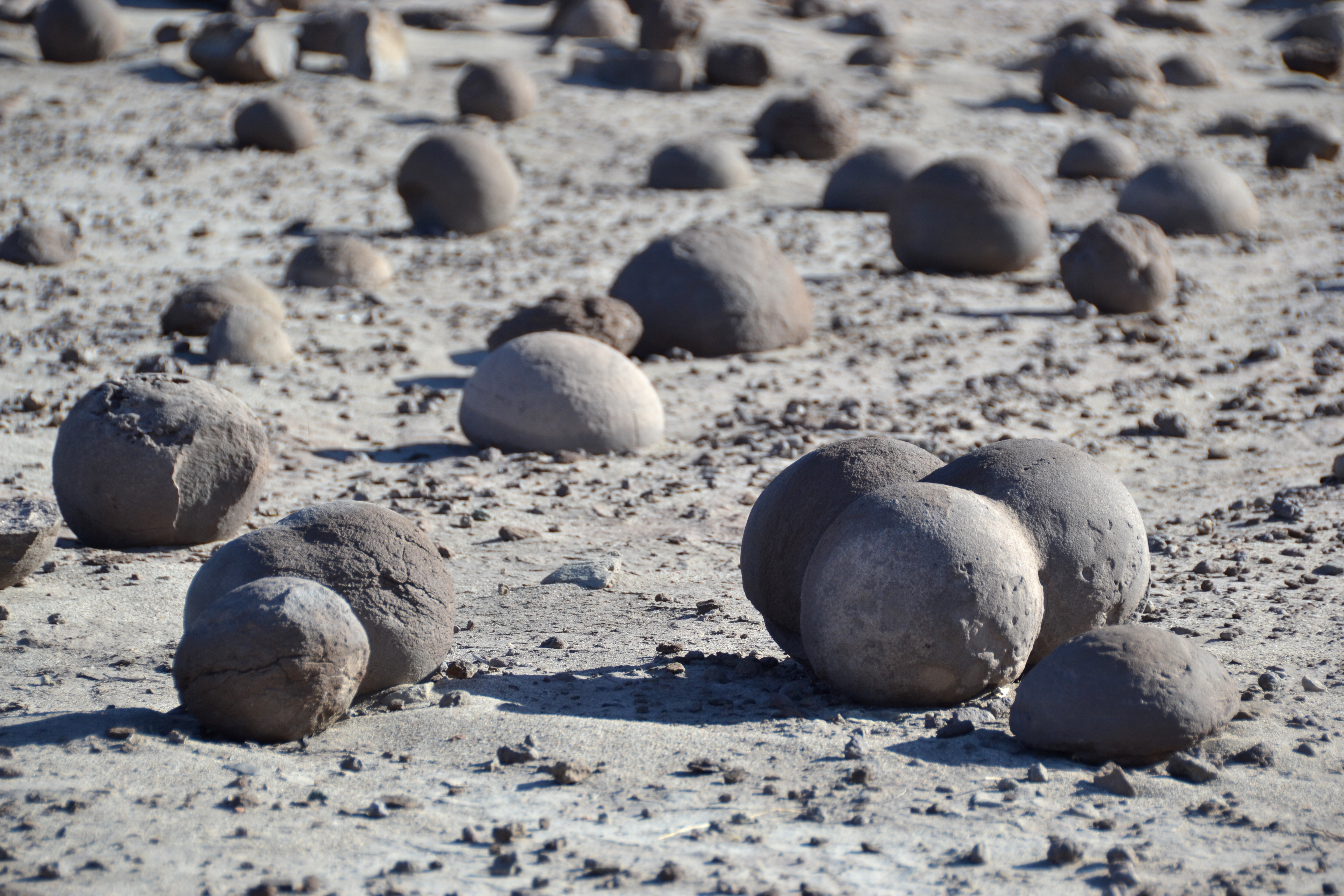 Als we het park uitrijden is het pas 14 uur en het volgende stukje werelderfgoed ligt op nog geen 50 km: Parque Provincial Ischigualasto of Valle de la Luna (maanvallei). Als we daar om 15 uur aankomen, kunnen we nog prima mee met de tour van 16 uur. Ook hier mag je niet zelf rondrijden, maar moet je meerijden in een convooi met een ranger voorop. Prima oplossing, vinden we. Ik word steeds enthousiaster omdat door het late tijdstip het licht steeds zachter wordt en de foto’s steeds beter. Dan blijkt ook de gids nog een echte enthousiasteling te zijn die daadwerkelijk probeert ons iets over het Triassium te vertellen (de prehistorische periode – 180 miljoen jaar geleden – waarin door het over elkaar schuiven van twee aardlagen dit gebied is ontstaan). We stoppen eerst bij de worm; een formatie stenen waarin verschillende op elkaar geperste aardlagen te zien zijn met fossielen er in. Vervolgens stappen we allemaal weer in (zo’n 8 auto’s) en rijden 15 kilometer verder. We komen aan bij de Valle Pintado, een gekleurd maanlandschap met afgeronde heuvels in verschillende tinten. Vervolgens rijden we naar een gebied waar de erosie allerhande vormen heeft achtergelaten zoals een sfinx en een veldje met ballen; heel apart. Op de achtergrond zijn de Cerros Colorados, een wand van rode rotsen die vooral in het avondlicht mooi rood oplichten.