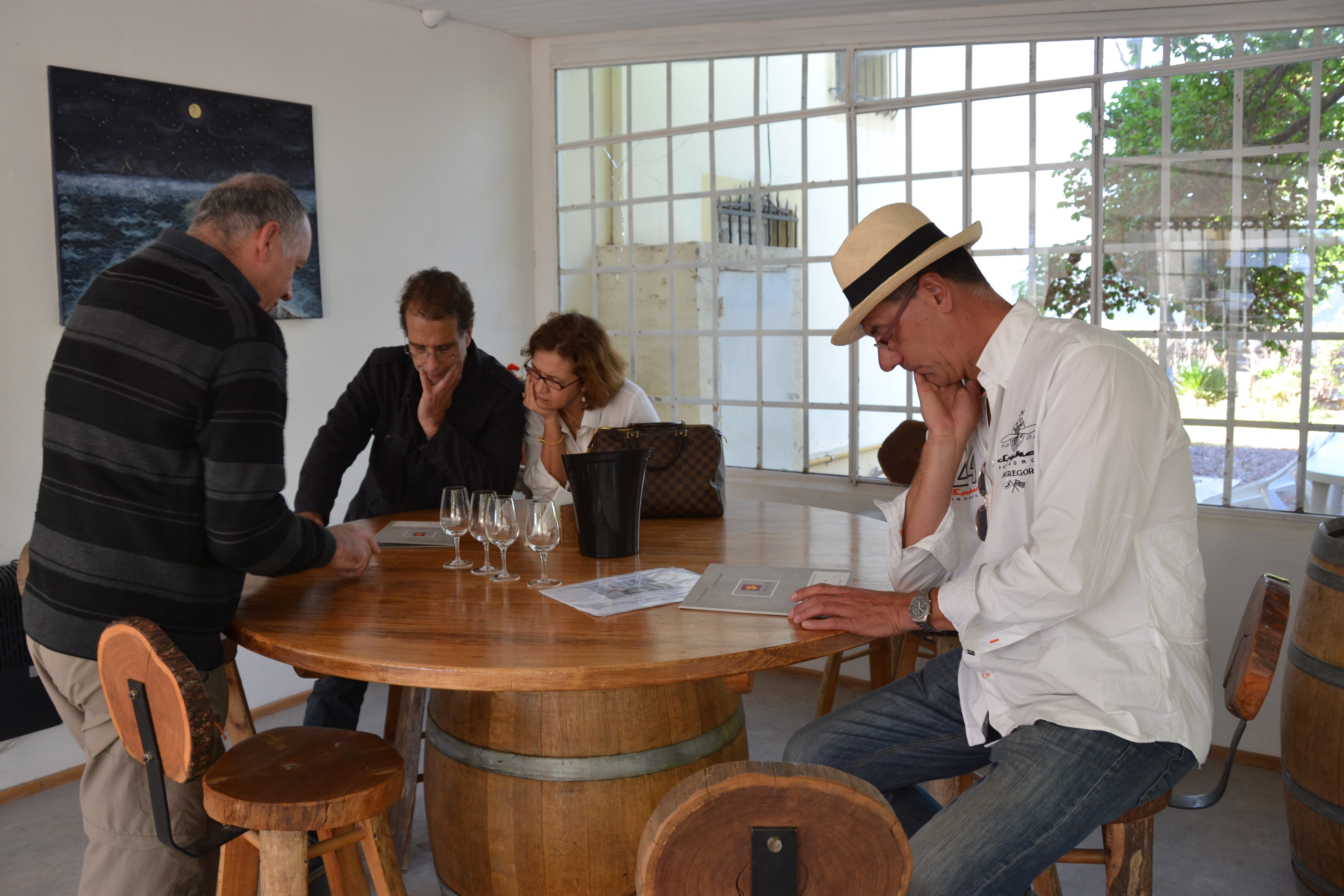 het gezellig druk met proevende mensen. Brigitte vraagt of we tijd hebben en al s we antwoorden met “heel veel tijd” (in het Frans) dan vraagt ze gelijk of we blijven slapen! We hadden al van de Duitsers gehoord dat ze hier na het proeven mochten overnachten in de wijngaard. Dat is boffen! We raken aan de praat met een Braziliaans stel en Philippe leidt ons de wijngaard rond (in het Engels). Hij neemt alle tijd en legt uit dat zijn hobby (astronomie) overal terug te vinden is. Carinae