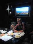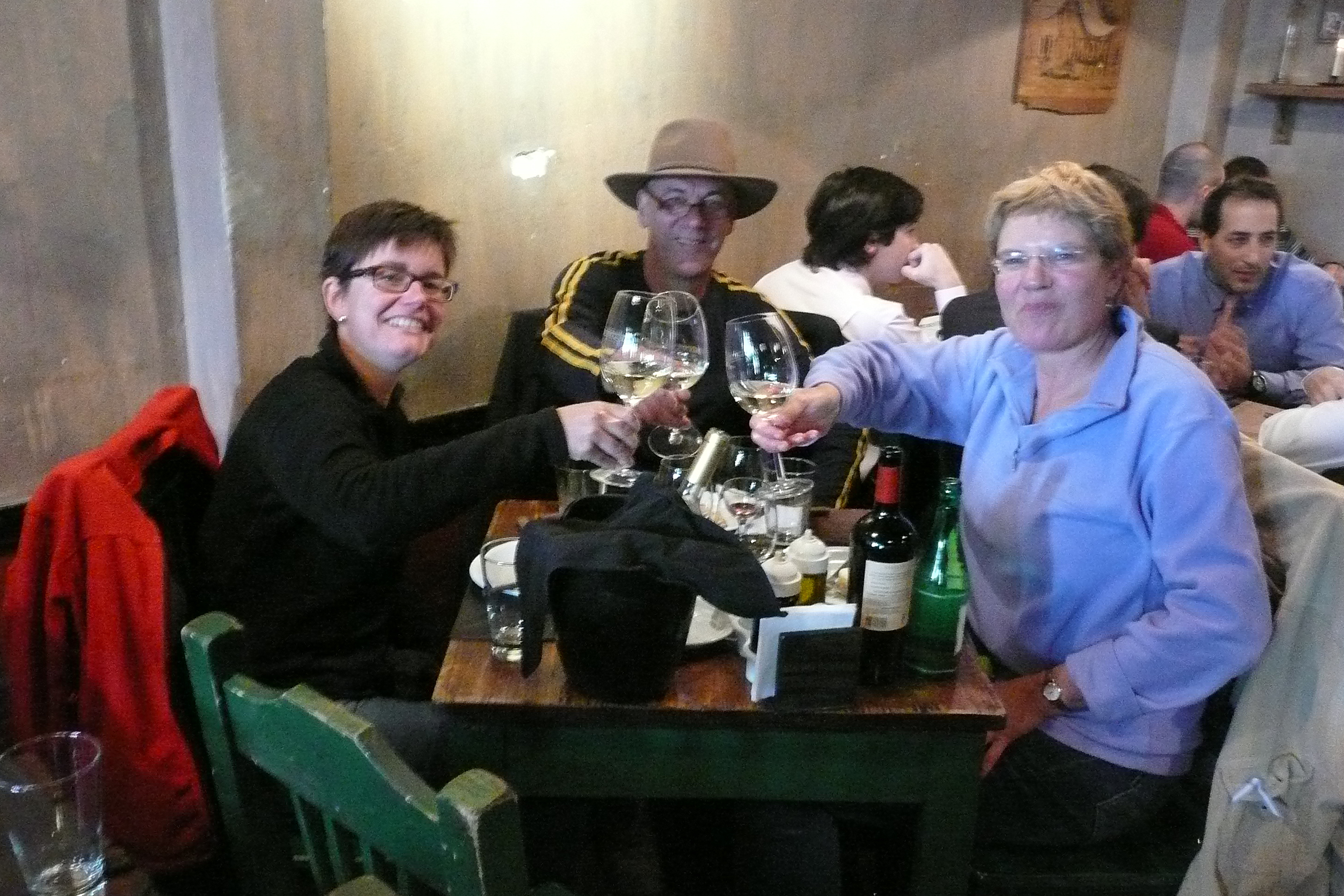 Zaterdag 8/10 skypt Joost nog voor het ontbijt met Noor. Ook belt Joost met Roel, die nu bij Margriet en Will is. We schrikken ervan hoe slecht hij klinkt. De aanvullende info van Margriet maakt het beeld er niet vrolijker op. We willen eigenlijk vertrekken, maar krijgen vervolgens zoveel familie en vrienden aan de lijn, dat we om 13 uur nog steeds niet ontbeten hebben. Het is ineens heel erg koud geworden, dus wat geeft het. We skypen ook met Rob en Mirjam die speciaal voor ons een webcam hebben aangeschaft en gelukkig krijgt Rob het ding aan de gang. Erg leuk en gezellig. Het bijzondere aan Skype is dat je veel relaxter met elkaar kletst; het duurt ook vaak langer dan een telefoongesprek. Je ziet elkaar en het is net alsof je op bezoek bent. Gouden uitvinding! Annemiek skypt ook even met haar moeder (80!) en we komen op het geniale idee samen te gaan lunchen. Ach ja, een biefstuk als ontbijt, waarom niet? We lopen door het