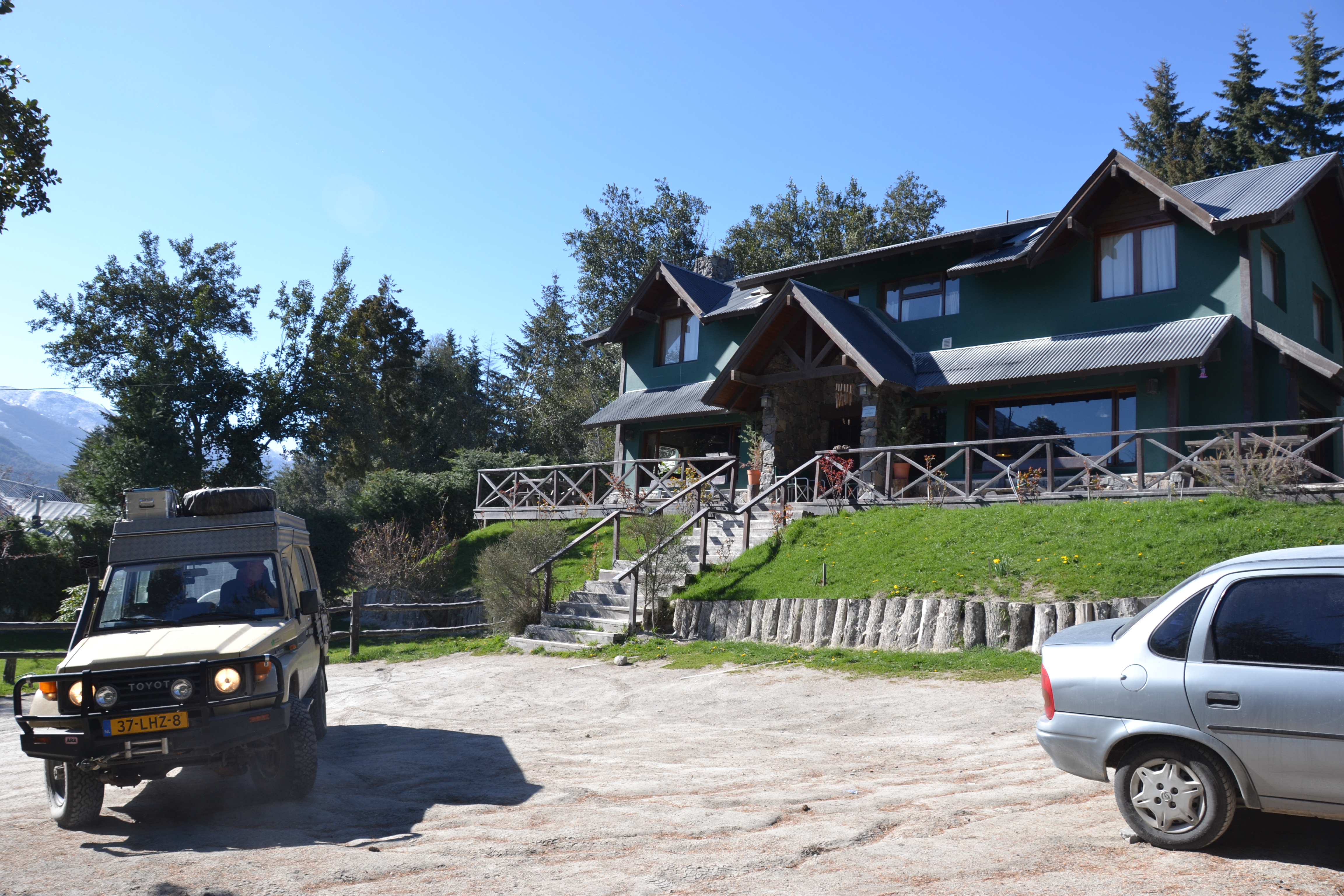Dinsdagochtend skypen we eerst gezellig met Jacomien, want de WIFI in het hostel is super. Jaap zit voor de Stichting Child Support even in Kenia om 30 (!) projecten te bezoeken als lid van de Raad van Toezicht en dus heeft ze het rijk alleen. We rijden langs Lago Nahuel Huapi en de bergtoppen zijn bedekt met grijze sneeuw (door de as). Gelukkig wordt de as minder en de zon schijnt lekker. Alleen aan het einde van het meer zien we de resten as in het water liggen. Het lijkt net een strandje! -> Filmpje YouTube. We komen nu weer bij Ruta 40 en rijden richting Bariloche. Dit is Maxíma/Zorreguieta gebeid, want haar broer heeft een restaurant in Villa la Angostura en zij en Alexander hebben zelf een zomerhuis rond Bariloche. De verwachtingen zijn dus hoog. Bariloche ligt prachtig aan een heel groot meer met prachtige wit bedekt toppen aan de horizon. De as is hier een stuk minder, maar desalniettemin is het altijd stoffig in de zomer. We parkeren vlak bij de stad en gaan info vragen bij de Turismo. De camping ligt ver uit de stad en ’s nachts is het erg koud. We kiezen er al snel voor om eens even bij een Complejo Turistico na te vragen wat een cabaña kost. Als dat maar 120 pesos (20 Euro) blijkt te zijn, is de keuze snel gemaakt. We hebben een schattig huisje met alles erop en eraan en nog WIFI ook. De zon schijnt heerlijk en het deert ons niet dat een steeds grotere stofwolk het zicht op de bergen wegneemt. Aan het einde van de middag gaan we een ritje rijden: Circuito Chico. Deze rit gaat langs LLao Llao; een prachtig stukje berggebied langs het meer. We zien zelfs een mooie golfbaan. We koken lekker zelf in ons huisje en kijken een film. Hoe huiselijk!