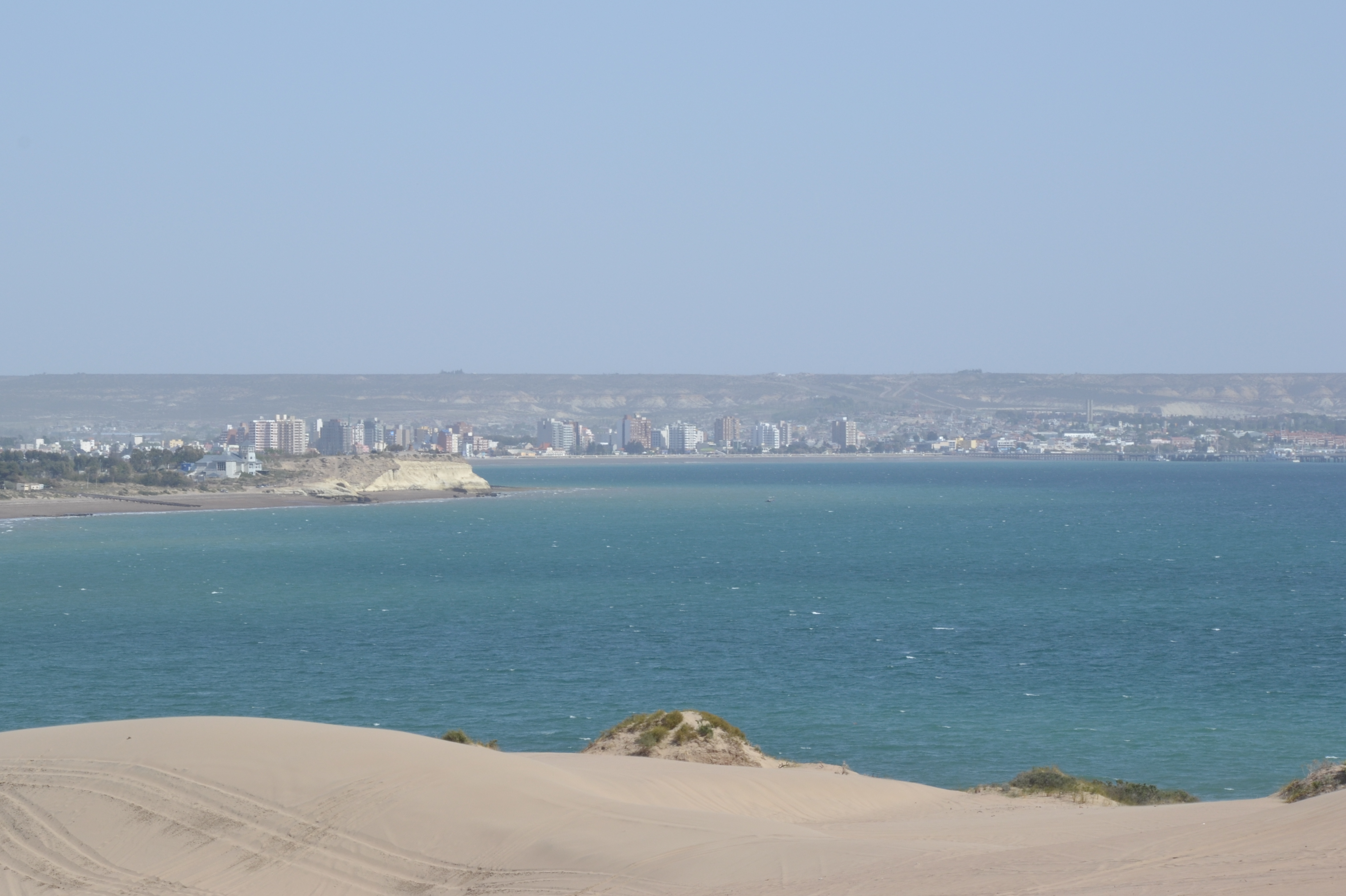 Grappig dat hier op de kaart wel alle estancias (ranches) staan aangegeven, want plaatsen zijn er eigenlijk niet. Bij die ranches zie je gauchos (cowboys) te paard met een hond om de landerijen en het vee te controleren. Bij de huizen staat meestal een oude auto. Opmerkelijk is dat we hier veel oude Renaults zien (4, 5, 12, 18 en zelfs een lila Fuego), niets geen 4×4, dat doen ze te paard. Als we bijna aan de Oostkust zijn, slaan we even af naar Gaiman. Dit dorp is van oorspong gebouwd door immigranten uit Wales en het resultaat daarvan is veel stenen huisjes en tearooms. We rijden er even rond en kopen brood en wat lekkers. Dan rijden we via Trelew naar Puerto Madryn. Hm, het lijkt hier wel warmer! Bij de toeristeninformatie halen we een kaartje en krijgen we een getijdentabel mee (onontbeerlijk gereedschap wanneer je zeeleeuwen of zeeolifanten wil spotten). We zoeken een plaatsje op de (bijne lege) ACA-camping aan het einde van de stad. Puerto Madryn ligt aan een prachtige baai en het ziet er aantrekkelijk uit;