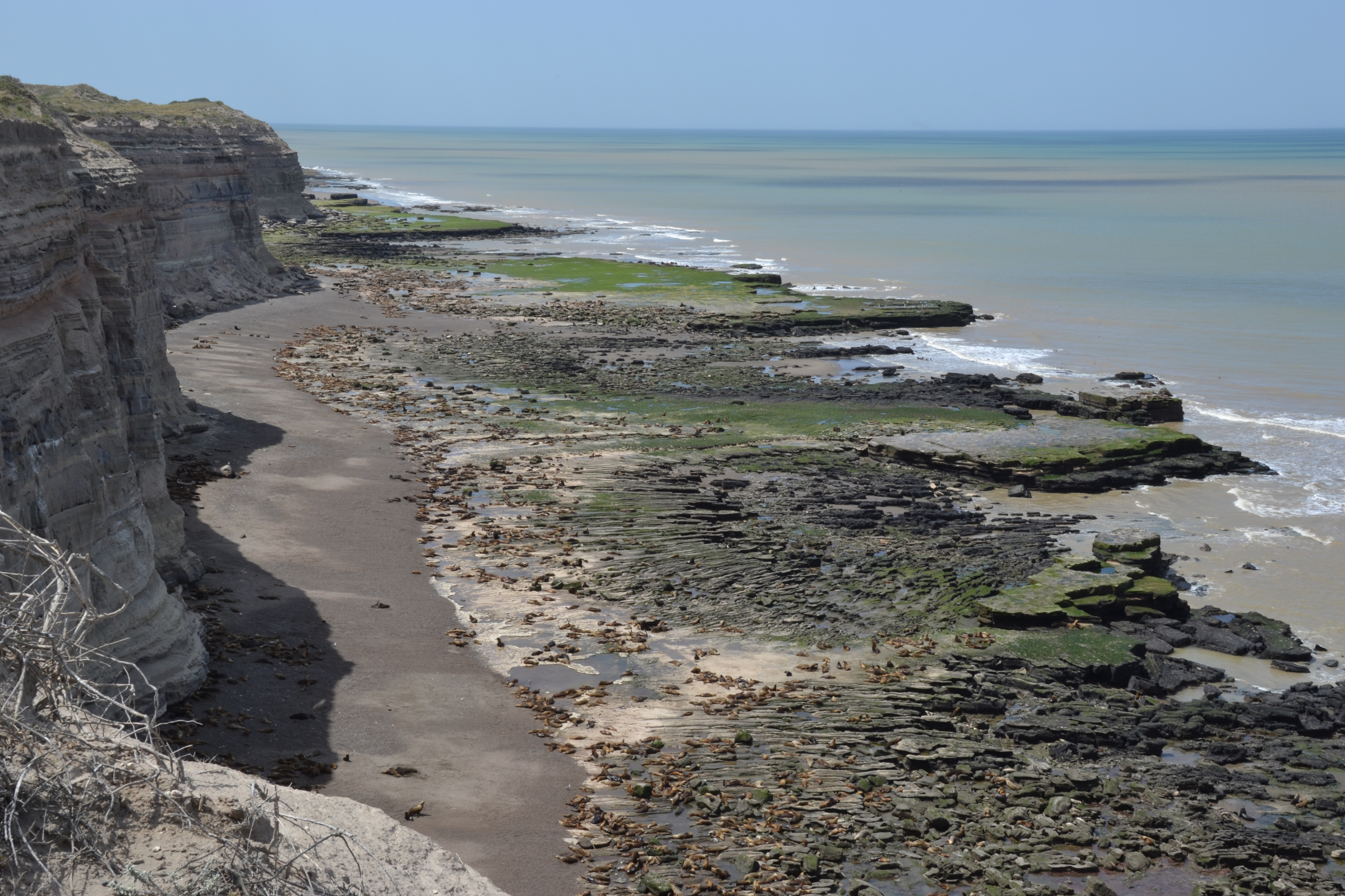 In de Lonely Planet stond ook nog vermeld dat er hier een zeeleeuwenkolonie is. Ach, nu we toch aan het rijden zijn, laten we er even gaan kijken. De weg vanaf El Condor is erg slecht met veel gaten. Van armoede leggen ze er een nieuwe weg naast. De papegaaien vliegen ons om de oren. Als we voorbij het dorpje La Loberia bij het park El Bermejo aankomen ziet het er armetierig uit, maar de parkwachter staat al bij de deur. Er is een kleine tentoonstelling en de man is er erg op gebrand om ons vanalles uit te leggen (in het Spaans). Ik vind het vooral erg opvallend dat hij een coup soleil heeft, dat heb ik hier nog niet vaak gezien! Met onze eerdere ervaringen in het achterhoofd, houden we het op hooguit enkele zeeleeuwen. Als we buiten komen, zien we lange houten gangpaden die