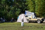 o Paulo) graag hun vakantie doorbrengen. Het eiland is zo’n 40 km lang en er loopt maar 1 weg aan de westkust langs tientallen strandjes met palmbomen. Bij één van de noordelijke stranden vinden we, op aanwijzing van de Tourist Information een camping. Het is hier erg rustig (winter) en weer zijn we de enige gasten. De eigenaar helpt ons met planken op de Landcruiser enigszins vlak te krijgen. De camping is prijzig (30 R$ p.p.), maar vanochten kijken we uit de daktent door de palmen naar de zee met opkomende zon. Wat wil je nog meer? Wij vermaken ons wel!