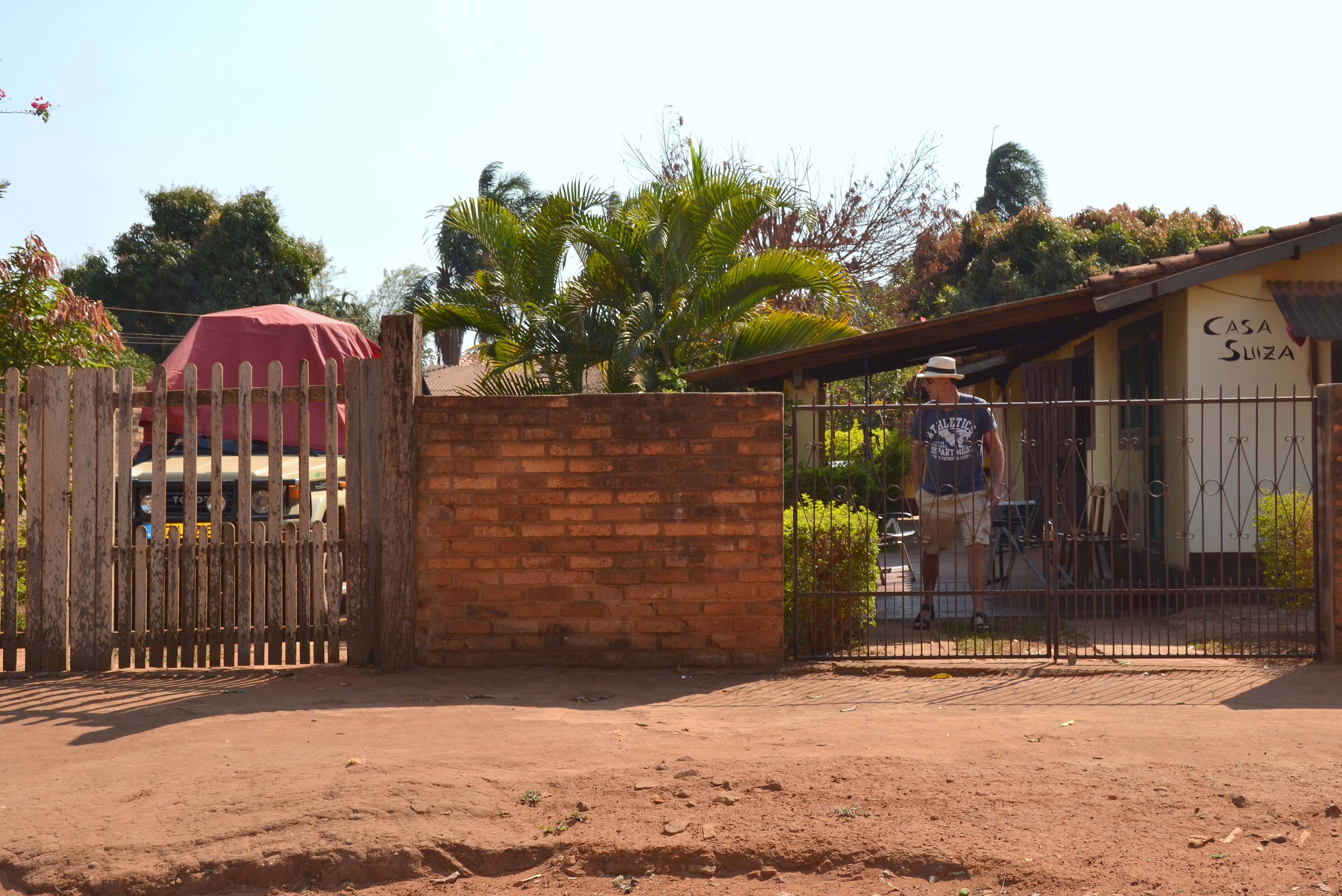 n het amper aan. Vlak voor San Ignacio staat een Landcruiser met pech. Ze hebben geen hulp nodig maar waarschuwen ons wel dat alle wegen naar de stad geblokkeerd zijn door de militairen. Ze wijzen ons een klein weggetje. Als we aan het einde bij een militaire post aankomen, grinnikt de militair als we zeggen dat we uit Cáceres komen; blijkbaar gelooft hij ons niet. Het is in het halfdonker even zoeken, maar dan zijn we bij Casa Suiza. Hier woont een Zwitserse en ze verhuurt wat kamers. In de tuin kunnen 2 auto’s staan, maar we zijn de enige gasten. Ook hier vinden ze het warm voor de tijd van het jaar en een koele douche is heerlijk. Aangezien de wegen geblokkeerd zijn en het te warm is om iets te doen, luieren we 2 dagen in de tuin en lopen wat door het stadje. Zondag 28/8 doen we een traditionele almuerzo bij de plaatselijke churrasceria. We krijgen een lekkere Bife de Chorizo van de grill met de gebruikelijke rijst, bonen, rauwkost, gefrituurde