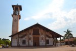 et een rode kentekenplaat, dwz dat ze alleen in deze regio mogen rondrijden (zijn vaak uit Brazilië gestolen auto’s ). Nu kan iedereen zijn auto legaliseren, maar wel tegen flinke kosten en dat zorgt voor beroering. Volgens haar is de weg naar Santa Cruz open. We bekijken de plaatselijke kerk (die we in 2007 ook hebben bezocht). Het is een replica van de oorspronkelijke missiekerk en vol met kleurrijk schilderwerk en glimmend mica. En struinen wat langs de winkeltjes. In de auto is het 45 graden…..