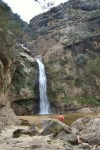 ment zo smal dat we het niet vertrouwen. Ik loop naar een paar huisjes en een oud mannetje komt me tegemoet: “¿Estan perdida?” (Zijn jullie verdwaald?). Hm, ik heb dus een navigatiefoutje gemaakt. We rijden terug en zien dan dat het een echt stomme fout was, want de weg is wel heel duidelijk. Via San Juan del Rosario komen we uiteindelijk bij La Pajcha. Volgens Pieter moeten we bij Don Carlos betalen maar bij zijn huisje zien we niemand. Dan rijden we door en de weg eindigt (volgens de kaart loopt ‘ie door) bij een smalle kloof met aan het einde een hele hoge waterval met een strandje ervoor. Het is een prachtige plek, erg afgelegen en er is helemaal niemand. We pakken wat te eten en zoeken een picknickplekje. Even later komt Don Carlos er toch aan. Hij is een beetje