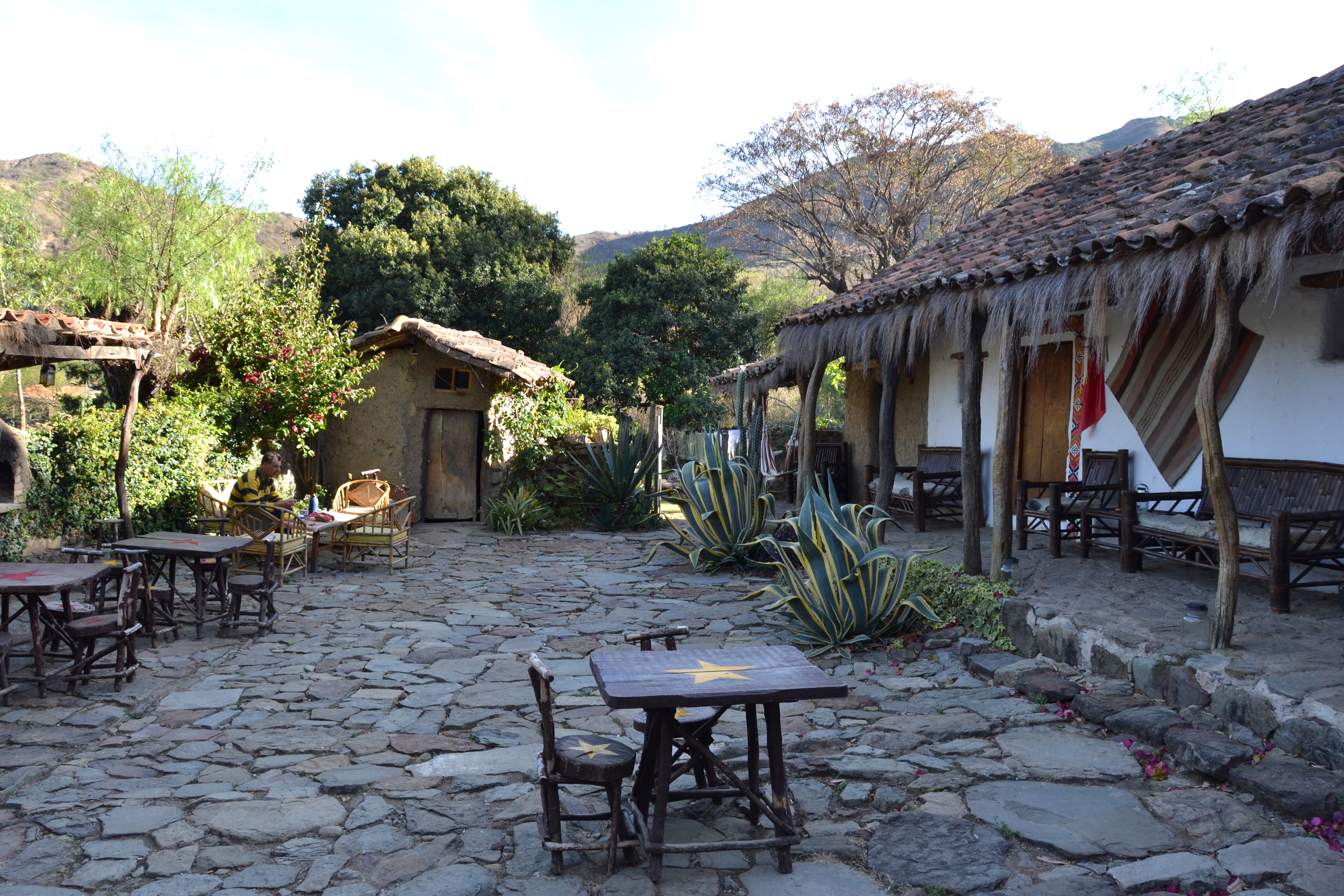 La Vispera in Samaipata is een hele fijne plek. Het is een rustig stadje, maar vanwege het prettige klimaat en de mooie omgeving wonen er inmiddels 25 nationaliteiten. Echt een vakantiedorpje maar wel met een Boliviaans uiterlijk. We zijn hier in mei 2007 ook al geweest en eigenlijk is het heel bijzonder dat we voor een tweede keer op eenzelfde plek komen. Pieter en Marga verhuren huisjes en kamers op 6 hectare terrein en kweken groente en kruiden die ze in het restaurant verwerken of verkopen aan restaurants in Santa Cruz.