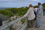 dutten en lunch lopen we naar Boulders Beach waar ezelspinguins zitten. We vragen ons af waarom ze zo heten. Het zijn grappige beestjes en leuk om naar te kijken. We lopen langs de kust door het Fynbos en nemen een biertje even