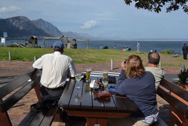Donderdag 20 september – We pakken alles weer in en rijden richting Hermanus. Een porachtige route over Franschhoek pass naar de kust. De zon schijnt gelukkig weer. We hebben nog geen accomodatie en dus gaan we in Hermanus eerst naar de informatie. Ze zijn er erg behulpzaam, maar een leuk huisje kunnen we zo niet vinden. We drinken ergens koffie en kopen bij een Belgische bakkerij een zoet boodje. We bedenken ons en gaan terug naar de Inormation en gaan toch terug om een eenvoudig huisje te boeken, omdat we toch graag van het mooi weer willen genieten en walvissen kijken. Het huisje is simpel en goedkoop (500 Rand per nacht, 50 Euro), maar valt alles mee: wel 2 slaapkamers en badkamers! Opgetogen eten we een broodje op het piepkleine, ommuurde terrasje. Snel gaan we naar de boulevard, waar we al snel wat walvissen spotten. We vinden een prachtig terras met uitzicht op zee en onder het genot van een biertje/wijntje kijken we naar de