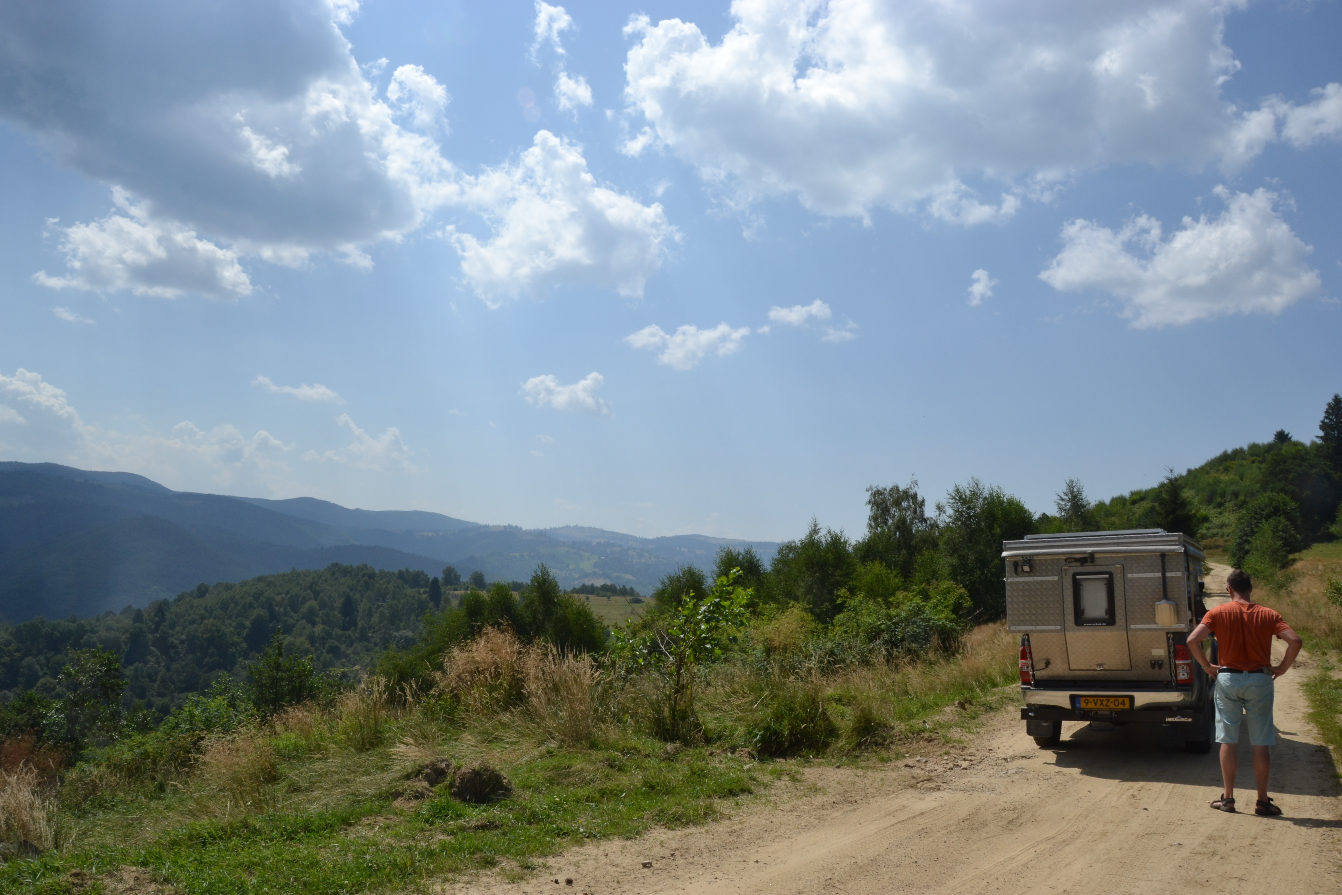weggetje” om een stuk ruig te rijden. Het is nu de derde keer dat we moeten omdraaien omdat het weggetje onbegaanbaar lijkt. Mariska vraagt een Roemeen om raad, en die gebaart druk en gebruikt veel woorden, maar we verstaan er geen klap van. De “witte weggetjes” beginnen een begrip met lading te worden deze vakantie. We rijden dan maar over een gele en rode weg via Câmpulung naar camping Panorama in Rucar. De eigenaar rent ons enthousiast tegemoet als hij onze auto’s (en kentekens) ziet. Aad Kwakernaak woont hier nu 12 jaar en heeft een eenvoudige camping met een werkelijk fenomenaal uitzicht over het dal. Helaas zakt de zon snel weg en waait het nogal. We eten rode curry met kip.
