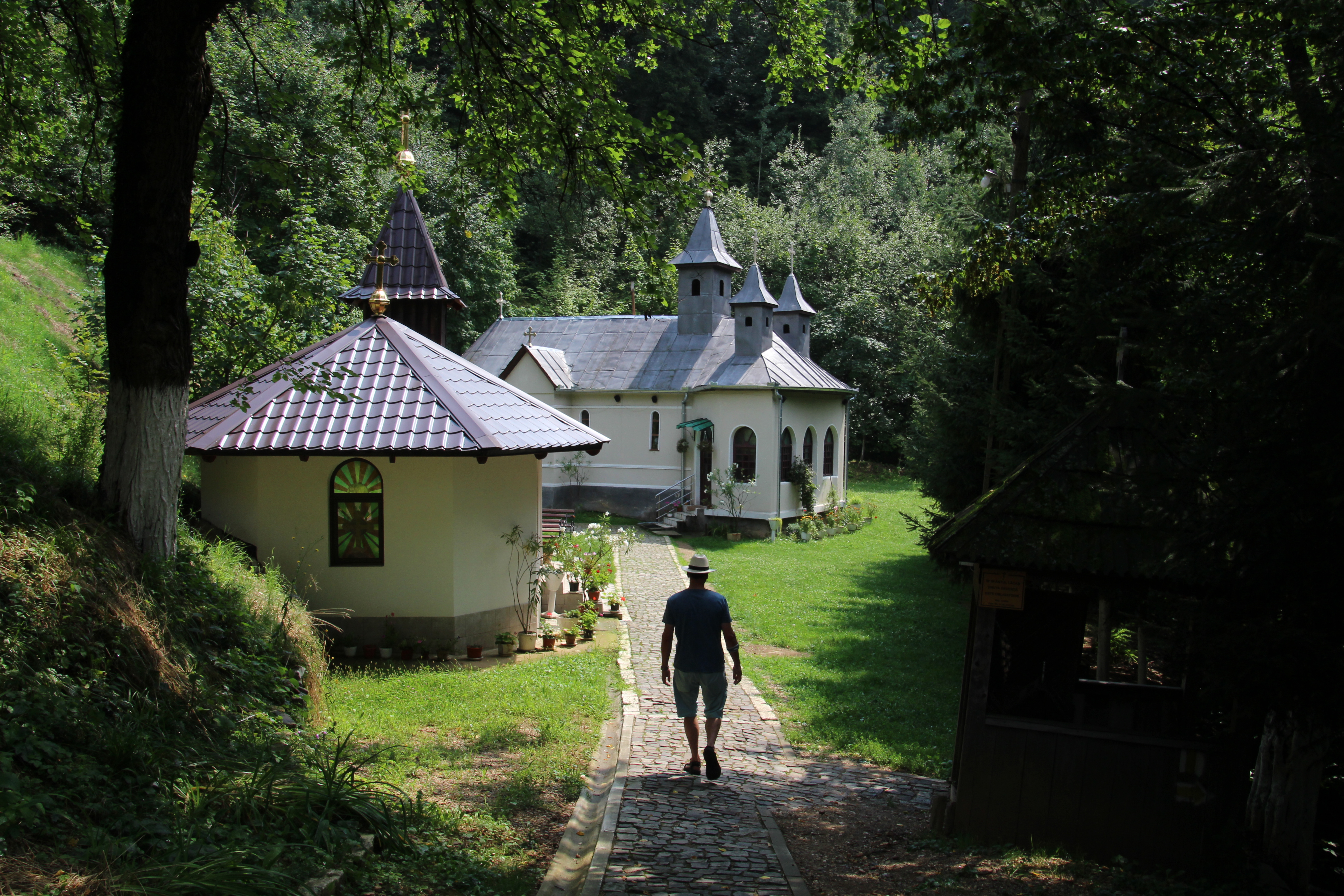 Do 7 aug. De volgende ochtend doen we rustig aan en laten Paul en broer Luciano ons foto’s zien van mooie Roemeense plekjes. Luciano neemt de tijd om een hele route voor ons uit te stippelen. Heel handig. Ze spreken prima Engels. Na een broodje roerei van Harald gaan we op pad om de plaatselijke kloosters te bekijken. Onderweg zien we in kleine dorpjes enorme kastelen van villa’s in aanbouw met dikke Mercedessen ervoor. “ Gypsies” legt Paul ons later uit. Mensen die hun geld op “slimme” manieren verdiend hebben en soms met wel 40 man in een huis wonen. Heel opvallend. Joost, Harald en Mariska gaan het terrein op van een redelijk modern klooster. Het is warm. Daarna denken we het onverharde pad in te gaan naar een kloosterruïne, maar wat volgt is een