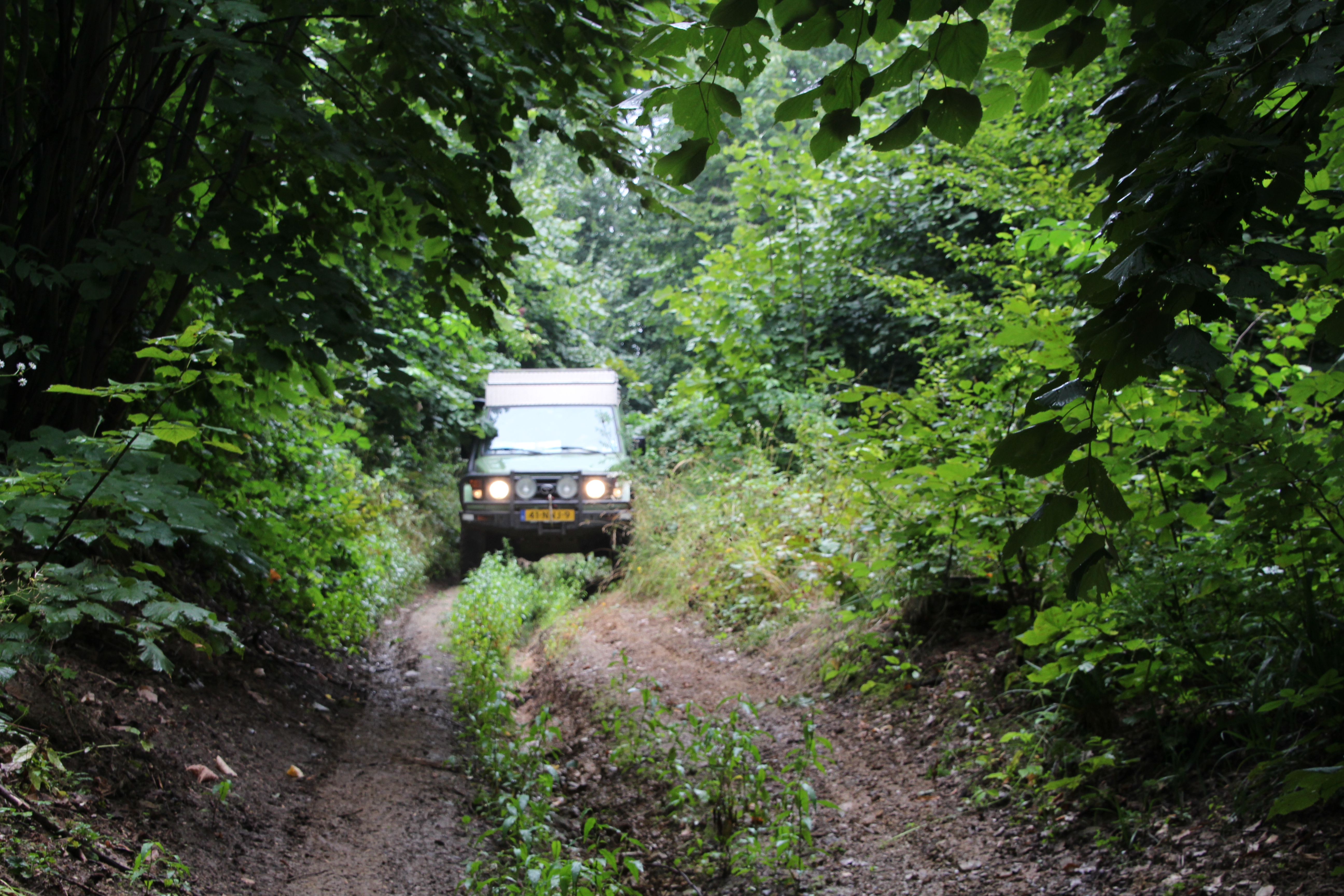 spannende offroad middag. Paden met diepe moddergeulen, plassen en smalle doorgangen. Na 2 uur komen we bij een boskapterrein, waar het pad bezaaid ligt met stammen en takken. Ik kan zien op de GPS dat het pad naar een verharde weg leidt en dus besluiten we het pad wat op te ruimen en door te rijden. De lintjes in de bomen en tekens op de stammen stemmen bemoedigend, maar na nog een uur ploeteren wordt het toch te gek. De paadjes zijn te smal en eerder geschikt voor crossmotoren of mountainbikes. We besluiten om te draaien. Tot onze verbazing razen we in een uur terug naar het klooster. Vooral de mannen hebben een erg leuke middag gehad! Hier kwamen ze voor en dat al de eerste dag. Ik ben vooral in de auto blijven zitten, iets te benauwd om te zwikken in het bos. We zijn te laat voor het avondeten dat de vrouw van Paul voor ons heeft gekookt. We eten soep, Sarmale (gevulde koolrolletjes die we voor de eetclub ook een keer gemaakt hebben) met gebakken aardappels en ijs toe. Prima na zo’n middag. ’s Avonds borrelen we met de broers en hun vader en Nederlandse stiefmoeder. Zo horen we nog het een en ander van dit boeiende land.