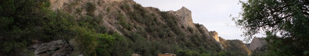 Op 18 augustus rijden we de grens met Georgië over, een fluitje van een cent. We kopen 3 sim-kaarten en wisselen geld en rijden een lange warme rit naar het afgelegen Udabno. Eerst staan we achter het Terrace restaurant in de wei, maar na een matig diner met veel vliegen besluiten we te verkassen. In een weiland buiten het dorp staan we heerlijk rustig met weids uitzicht. Na het ontbijt rijden we naar het Davit Gareja klooster, een van de top sights van Georgië. Het is inderdaad een prachtig kloostercomplex, maar slecht 1 ervan is open. Het klooster ligt op de grens met Azerbaidzjan en een militair houdt iedereen tegen die naar het andere deel wil, helaas. Terug in Udabno nemen we twee Poolse lifters mee, helemaal tot vlak voor Sighnagi. Onderweg wil ik nog wat tomaten kopen, maar als ze begrijpen dat ik uit Nederland kom, moet echt van de shaslik en wijn proeven! Onderweg worden we ook nog staande gehouden door een enthousiaste jonge vent. Hij zag dat we uit Nederland komen en we moeten een tros druiven van hem aannemen! In Dedoplistskaro gaan we naar het information center voor het Nationaal Park Vashlovani. Dat is een zeer afgelegen park met ruige wegen. Nino spreekt gelukkig Engels en verzekert ons, dat nu het droog is, we ook met 4×2 het park door kunnen rijden, behalve de weg naar Mijniskure. En ze waarschuwt ons voor slangen (die we gelukkig niet zien). Ze vult een aanvraag voor ons in en daarmee gaan we naar de borderpolice, waar we een gestempelde permit krijgen om het park in te mogen en langs de grens met Azerbaidzjan te rijden. De weg naar de ingang van het park is zo slecht dat er bypasses zijn ontstaan, waar het beter rijden is. Joost laat de banden af en dat scheelt gelukkig. De wegen in het park zijn af en toe heel steil en hier moet je echt niet zijn als het regent! We eindigen in een ruige en stenige rivierbedding (Pantishara) en zijn helemaal alleen. Sterker, in de 4 dagen dat we door het park hobbelen, zien we alleen mensen bij 2 border posts en 1 parkranger! Net als we willen afwassen en douchen, houdt de waterpomp er weer mee op. Niet voor een gat te vangen, tappen we af onder uit de watertank en doen het daarmee. Het wordt aardedonker met veel sterren en gelukkig koelt het af. De volgende dag gaat Joost aan de klus. In de riviergorge staan we gelukkig in de schaduw. Het reserve Hilux-pompje krijgt ie aan de gang! Bij een inspectie onder de auto zien we de oorzaak van het metalige geluid: de schokbreker rechtsvoor is afgebroken. Gelukkig hebben we ook bladveren voor en lukt het om samen de schokbreker weg te halen. We rijden door de rivierbedding een grote vlakte op waar we gazelles zien. Passeren een grenspost en Joost manouvreert heel behoedzaam over de ruige wegen met soms verraderlijke ‘knippen’ bij het over- en doorsteken van (droge) rivierbeddingen. Bij grote wieluitslagen blijven we een vervelend metalig geluid horen. We vinden een plek onder een grote boom bij het visitors centre, waar we niemand zien. Wel zijn er bijtende vliegen (daar hebben we meer last van dan muggen) en zien we ’s avonds een drone patrouilleren in de verte. De volgende dag rijden we via de centrale ingang naar black mountain. De weg is soms erg smal met veel bomen. We lopen aardig wat krassen op en zijn op een gegeven moment een dode hoek spiegel kwijt. Een paar hellingen met gravle zijn heel heftig (18 en 20%!!). Gelukkig kan Joost de lage gearing wel gebruiken en tokkel De Chef met veel kabaal de helling op. Pfoe. Als we aankomen bij het ranger station, blijkt dat geen ideale kampeerplek (veel hoog gras). De man spreekt alleen Russisch, raakt wat in paniek en belt Nino voor ons. Uiteindelijk parkeren we langs de weg en Joost wint de weddenschap: er komt niemand langs. Wel zien we ’s avonds “ogen” dichterbij komen en dus kijken we na het douchen lekker 3 afleveringen Mocro Maffia binnen. De wind gaat buiten enorm te keer. Als we de volgende morgen het park uit rijden zien we na Zemo Kedi een brandweerwagen ons tegemoet komen. Het is de 26-jarige Duitser Nico (explore.309), die ons meevraagt om het verlaten Soviet vliegveld Big Shiraki te bezoeken. Dat blijkt een bizarre plek! Wel 30 hangars, een enorme landingsbaan en een ontmanteld oud gevechtsvliegtuig. We besluiten samen door te rijden naar Eagle gorge en doen onderweg boodschappen en tanken water. We maken samen een wandeling en ik maak Thai curry. We krijgen gezelschap van nog twee andere campers. Het is erg gezellig met Nico en hij wil wel met ons mee naar de garage in Tblisi.