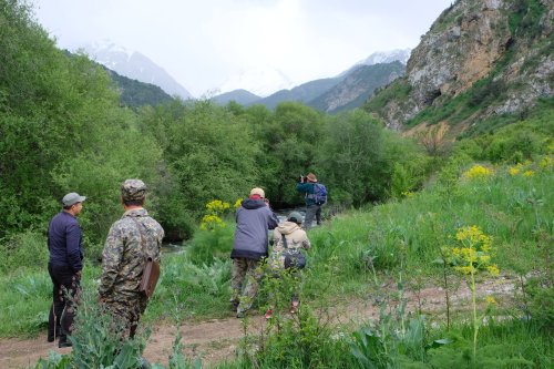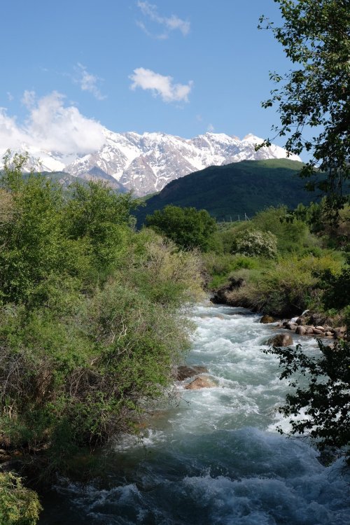 Vanuit Shymkent rijden we naar het National Park Sairam Ugam. Onderweg videobellen we met Noor wat erg goed gaat. Het is lekker warm en we rijden door kleine dorpjes naar zo’n 1500 meter. De witte toppen zijn indrukwekkend het landschap mooi, op de grens met Uzbekistan. Opgetogen lunchen we langs een rivier en even later betalen we toegang bij de ranger (900 Tenge) en kiezen kampeerplek nr. 4 uit. ’s Avonds koelt het lekker af en maakt Joost een vuur. De volgende dag begint lekker zonnig. Ik doen een wasje, Joost repareert zijn stoel en maakt kennis met mensen van de Duits-Kazachse Speleologen vereniging die langsrijden. Helaas begint het rond de middag te regenen. Het koelt af en we lunchen onder de luifel. Een ranger steekt z’n hoofd om de hoek en meldt ons dat er mensen van de National Geographic Kazachstan graag foto’s van ons willen maken met een rugzak om. We zijn geen wandelaars maar poseren lukt best wel. Eerst samen maar Joost alleen valt wat beter in de smaak. Hij krijgt een grote camera in de hand gedrukt en een rugzak om en moet allerhande poses aannemen. Er is ook iemand uit Thailand bij. Ik vind het vreselijk lachwekkend, maar zeker leuk. Wel frustrerend dat ik het Russisch zo slecht beheers. ’s Avonds kijken we een James Bond want buiten is het onaangenaam.