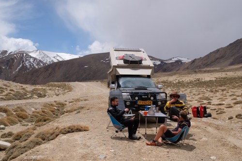 Ok, de wegen zijn hier en daar (en vooral in Tadzjikistan) echt slecht (onder de 5 op de schaal van Kloeg ;-)). Maar dat maakt ook het avontuur! Veel locals rijden echter met gewone auto’s rond (die ze dus rustig aan gort rijden). Wel is het zo dat we ons afvragen welke 4×4 voorzieningen we ècht nodig hebben. Zo hebben we de lier niet gebruikt. De auto wordt er zwaar van en in combinatie met de slechte wegen, krijgen alle onderdelen het echt te verduren. Dat is iets om over na te denken. Ook is nu weer gebleken dat we veel binnen moesten zitten vanwege de kou ’s avonds en dan is de ruimte in de cabine, vooral voor Joost, wat beperkt. Dus iets groters zou een wens zijn. Overigens zijn we weer onder de indruk van wat de Hilux kan, het is echt een beest. Ook de cabine heeft zich keurig gehouden en biedt alles wat we nodig hebben (al zou een toilet soms wel handig zijn). We hebben zelfs per ongeluk 120 kilometer gereden met het dak open (…oeps…door de Anzob tunnel zelfs) en er is werkelijk niets gebeurd! Indrukwekkend. Helaas is wel de douchezak gestorven, terwijl we die juist aan het gebruiken waren (vaak meegesleept, niet gebruikt). Toch iets anders voor zoeken. Ach, en eigenlijk kun je met zo weinig spullen toe. Dat maakt reizen zo lekker overzichtelijk, dat geeft rust. We hebben dan ook heel veel geslapen.