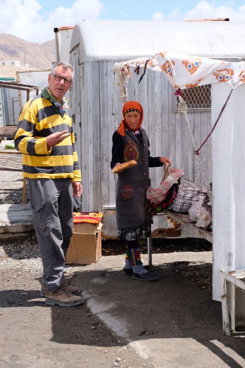 In de Wakhan zijn 3 religies aanwezig: Islam, Bhuddisme en het Zoroasme. In Vrang gaan we op zoek naar een Buddhistische stupa. We lopen een paar jongetjes achterna en de stupa is ‘een hoop stenen’ (Joost). Ach, hebben we onze cultuur ook weer gehad. Aan het einde van de Wakhan vallei, in Langyar, ga ik op zoek naar brood. Ik kom uit bij een mevrouwtje dat me meeneemt naar haar woonkamer waar ze een doos onder de tv openmaakt. Er komen zowaar twee mooie platte broden tevoorschijn!