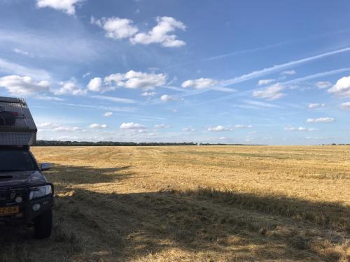 Hadden we eerst het plan op nog verder langs de Wolga naar het zuiden te rijden, gaan we toch direct naar het westen. De lange kilometers zijn niet echt boeiend. Bovendien is het weer niet zo best. Het regent als we wakker worden en dus gaan we zonder ontbijt vroeg weg. Joost stuurt de Hilux moeiteloos door de modder en diep ondergelopen kuilen in de weg. We nemen een ontbijtje bij een truckerscafe. En het wordt warmer! Zomaar 23 graden! De weg is prima, maar omdat het vaak tweebaans is maken we toch gemiddeld maar 60 km/uur (je kunt er 90 rijden). Veel wegwerkzaamheden en heel veel trucks. Ok staan er erg veel incognito snelheidscontroles langs de weg. Ik krijg het idee dat het een franchise constructie is! Iedereen met een auto krijgt twee camera’s en gaat langs de weg zitten. Het gaat fout als Joost over een doorgetroken streep rijdt en er net een politieman aan het filmen is. Joost blijft volhouden dat hij er niets van begrijpt en na 20 minuten wenst oom agent Joost, met Google Translate, een fijne reis! Da’s beter dan de gevangenisstraf of rijontzegging waar de man het over had. Aan het einde van de dag douchen we bij een eenvoudig motel en besluiten daar ook te overnachten op de parkeerplaats. Als ik het vraag aan de eigenares, krijg ik een prachtig antwoord (via Google translate) dat begint met ‘lieve kameraden’. Het komt er op neer dat we niets hoeven te betalen want de parkeerplek is voor haar gasten, heel aardig. We eten wat in het naastgelegen restaurant en hebben een onrustige nacht (altijd lawaai die pleisterplekken en het blijft licht tot 23 uur). De volgende dag even snel een fruit-muesli ontbijtje en rijden maar weer. Bij Tambov besluiten we toch de zuidelijke route te nemen richting de grens met Oekraïne. De M-wegen zijn over het algemeen beter (dan de P-wegen) en dus sneller. In Voroznoe raken we (ik dus) even de weg kwijt, maar het gaat als een speer. Vlak na de grote stad zoeken we op goed geluk een plekje. Dat is niet eenvoudig hier, want veel land is bebouwd en bewoond. Uiteindelijk gaan we aan de rand van een pas gemaaid tarweveld staan. Ik heb daar vreselijk veel moeite mee en voel me bijzonder ongemakkelijk om zo op iemands land te staan. Maar, eerlijk is eerlijk, niemand valt ons lastig, ook voorbijgangers niet, het is een prachtige plek en de zon schijnt. Eigenlijk zie je in Rusland werkelijk overal geparkeerde auto’s staan in velden en bossen. Geen idee wat mensen daar doen, maar we vallen dus niet echt op en doen wat de locals doen ;-). Wat we niet doen, is afval achterlaten en dat doen de locals met verve! Werkelijk overal ligt troep en met name plastic flessen en toiletpapier zijn natuurlijk erg vervelend. Zo jammer.