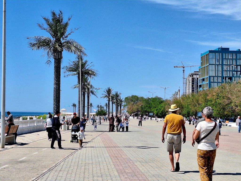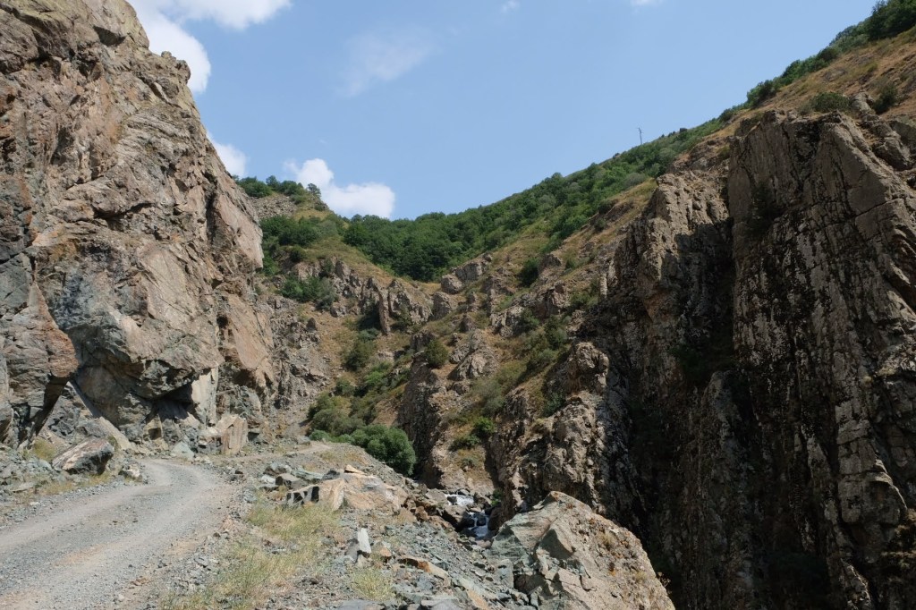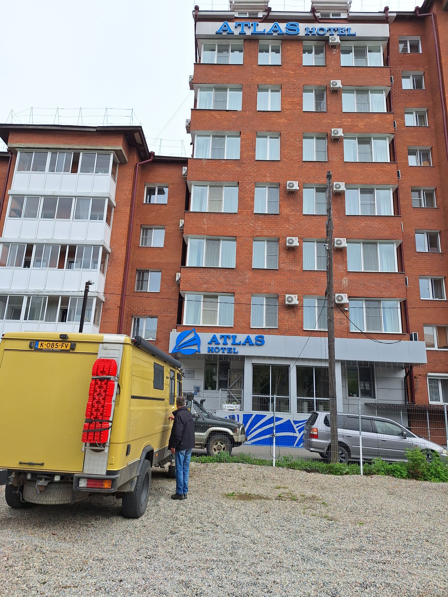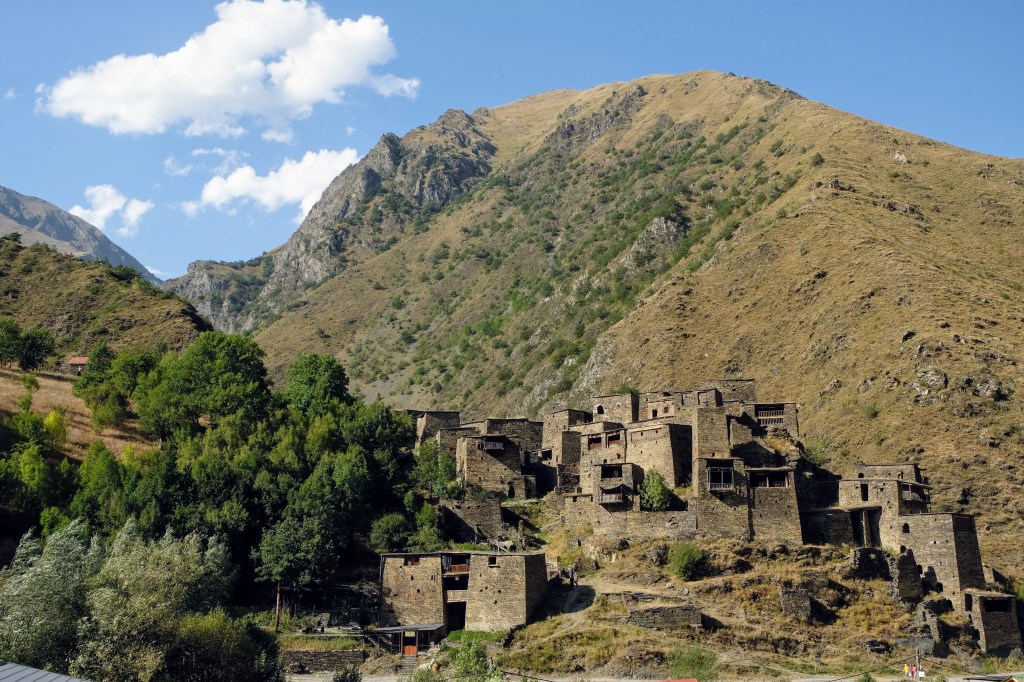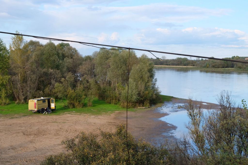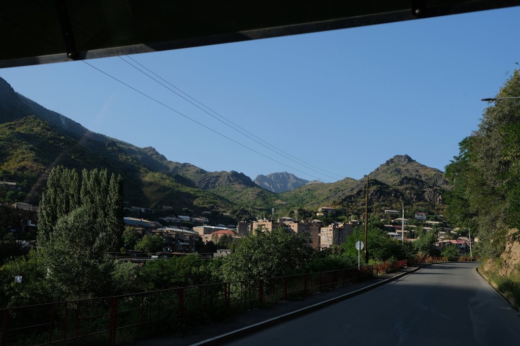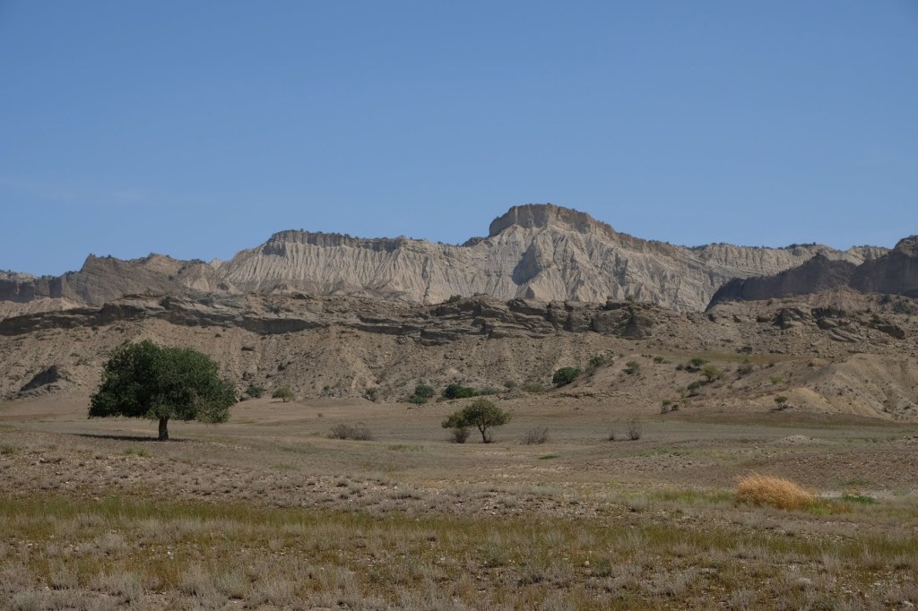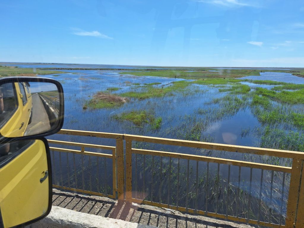 We zijn vlak bij de Russische grens, al maakt een enorme verkeersopstopping bij het verlaten van Atyrau dat het nog wat langer duurt eer we er zijn. Kazachen zijn vriendelijke mensen, tot ze in een auto stappen! Onderweg vinden we nog een mooie douche bij een tankstation en om 15.30 uur staan we aan de grens. En ongelofelijk, we zijn in 65 minuten klaar! We complimenteren de Russische beambten met hun efficiëntie, dat hebben we wel anders meegemaakt. Onze telefoon (e-sim) werkt helaas niet, waar die het op de heenweg nog wel deed in dit gebied. De GPS doet het gelukkig nog. Bij Krasny Jar gaan we weer met de veerpont over de Buzan rivier. De man vraagt nu maar liefst 10 Euro voor een paar minuten varen. Aan de overkant vinden we tussen de bomen een plekje om te overnachten. Het is zowaar warm. De volgende dag willen we een flink eind rijden om zo Astrahan voorbij te komen. Zoals ik al had verwacht gaat de GPS vlak voor de stad heel raar doen. In Google zie je dan ineens dat je op een hele andere plek bent en niet op de weg. Dit doen de Russen uiteraard om eventuele vijandige drones om de tuin te leiden. Het Nederlandse reisadvies voor dit gebied is dan ook rood. Gelukkig had ik het voorbereid en kan ik met een offline kaart langs een goed te volgen rondweg door de stad navigeren. Toch wel spannend. Ook als we de stad gepasseerd zijn blijft de GPS nog lange tijd van slag. We passeren checkpoints als we de autonome republieken Kalmukkië en Dagestan inrijden. Rusland kent 21 autonome republieken en die hebben zo hun eigen zelfbestuur, waaronder vaak een eigen grondwet, regering en parlement. Als je dus zo’n grens overgaat, wordt je gecontroleerd. Bij Sulevkent parkeren we op een stukje oude weg, de andere plekjes ijn veel te nat en modderig. Politieagenten zwaaien vriendelijk en er passeren onverwacht veel auto’s. Niemand valt ons lastig, hoewel……als het donker is horen we twee auto’s aankomen en mannen discussiëren. Dan wordt er op de deur geklopt. De rest kijkt toe, terwijl een van de mannen in het Russisch met me begint te praten. Dat versta ik natuurlijk niet, dus ik draai m’n standaardpraatje af: sorry, ik spreek weinig Russisch, we zijn toeristen uit Nederland op bezoek in Dagestan. Binnen no-time verexcuseren ze zich, z’n vriend legt een hand op z’n hart en ze vertrekken. Die dachten waarschijnlijk, wat doet die gele vrachtwagen hier? toch even checken. Verschillende overlanders zijn naar Sulak Canyon geweest en dat willen wij ook wel zien. Het is heerlijk weer en we zien verschillende kraampjes met druiven onderweg. Joost koopt een flinke zak bij een jonge dame, lekker. We starten het rondje bij het Chirkey Stuwmeer. Mooi uitzicht met de besneeuwde toppen van de Kaukasus op de achtergrond. We rijden door naar Dubki waar we naar een uitzichtpunt wandelen. Het is zowaar een toeristische hotspot met veel nationale toeristen. Het uitzicht over de canyon is prachtig en we zien diverse speedboten rondvaarten maken in de diepte. We belsuiten door te rijden naar een visrestaurant waar je ook kunt overnachten. Op de weg er naar toe lijkt er een omleiding te zijn en worden we tegengehouden door wat mannen. Geen idee waarom, maar het is niet zo prettig. We negeren ze en draaien om. Het is zowaar 25 graden en we nemen plaats op het prachtige terras van het restaurant. Buiten zijn een aantal visbassins dus de vis zal wel vers zijn! We eten inderdaad heerlijk. Na wat overleg mogen we inderdaad op het terrein staan. Joost loopt nog even naar de drukke, kermisachtige boulevard aan de rivier. Gelukkig hebben we daar ’s nachts geen last van.
