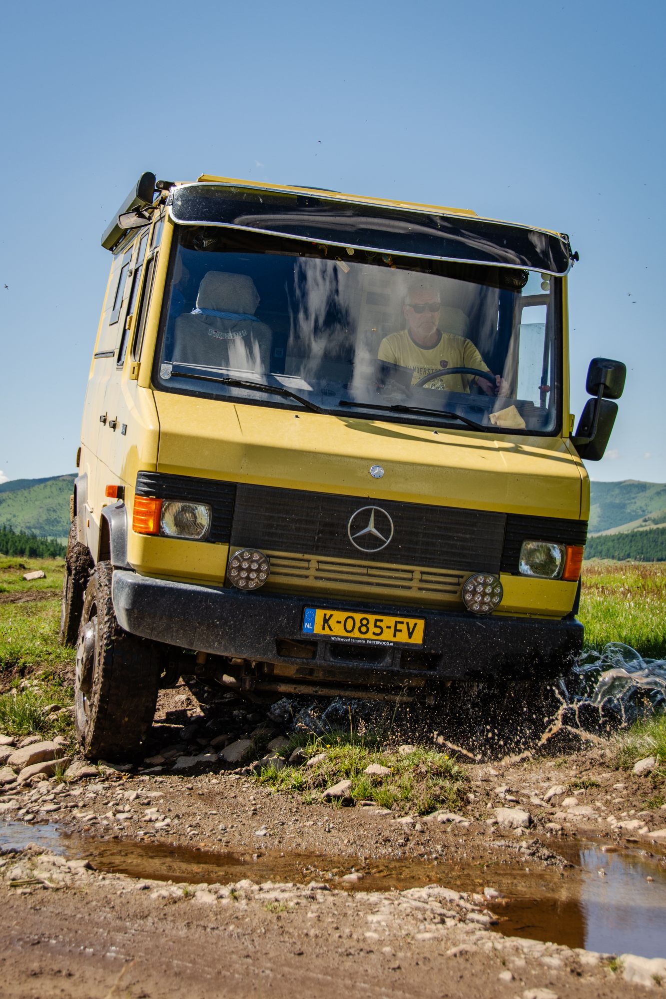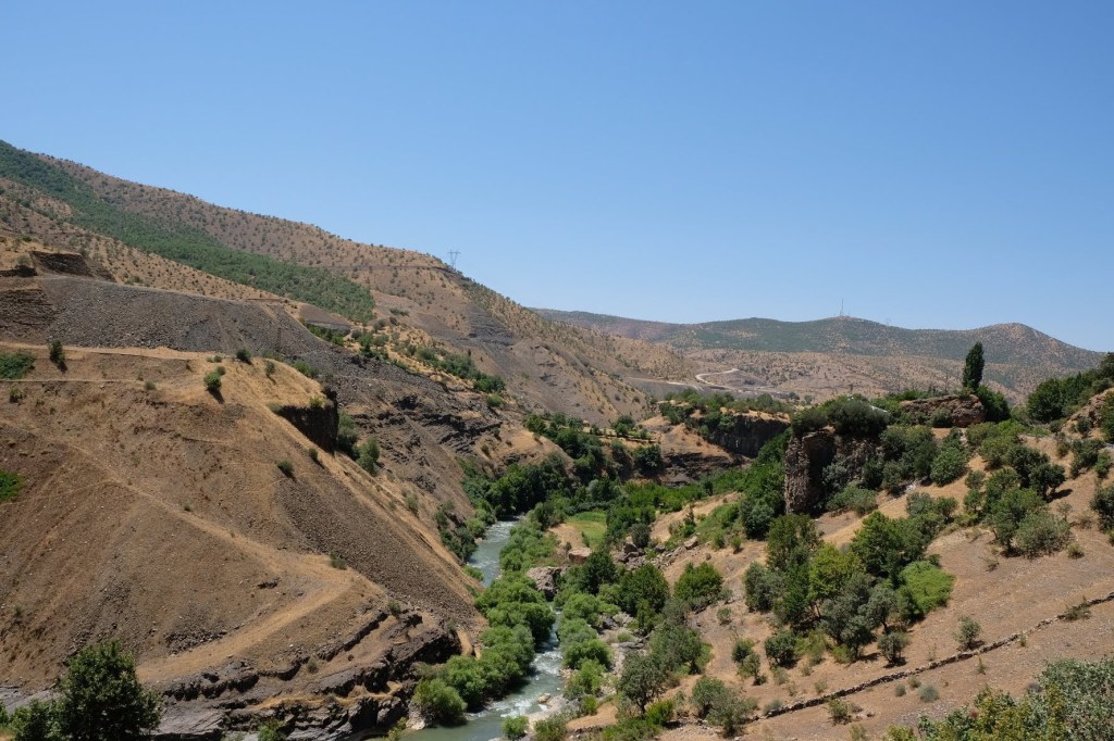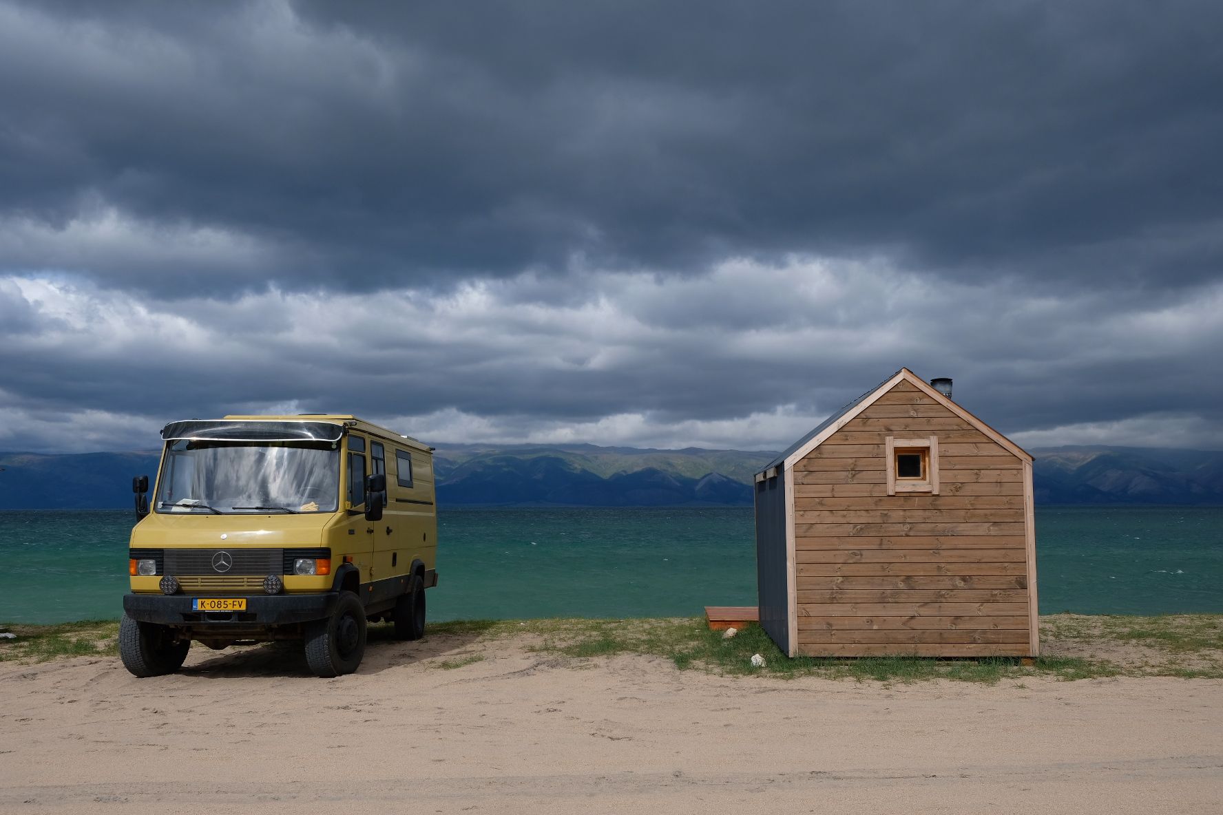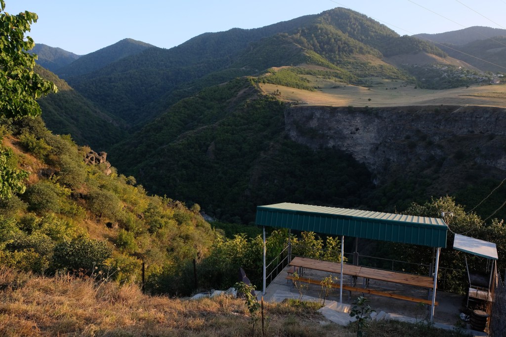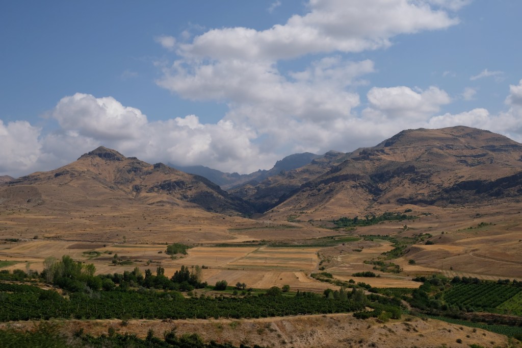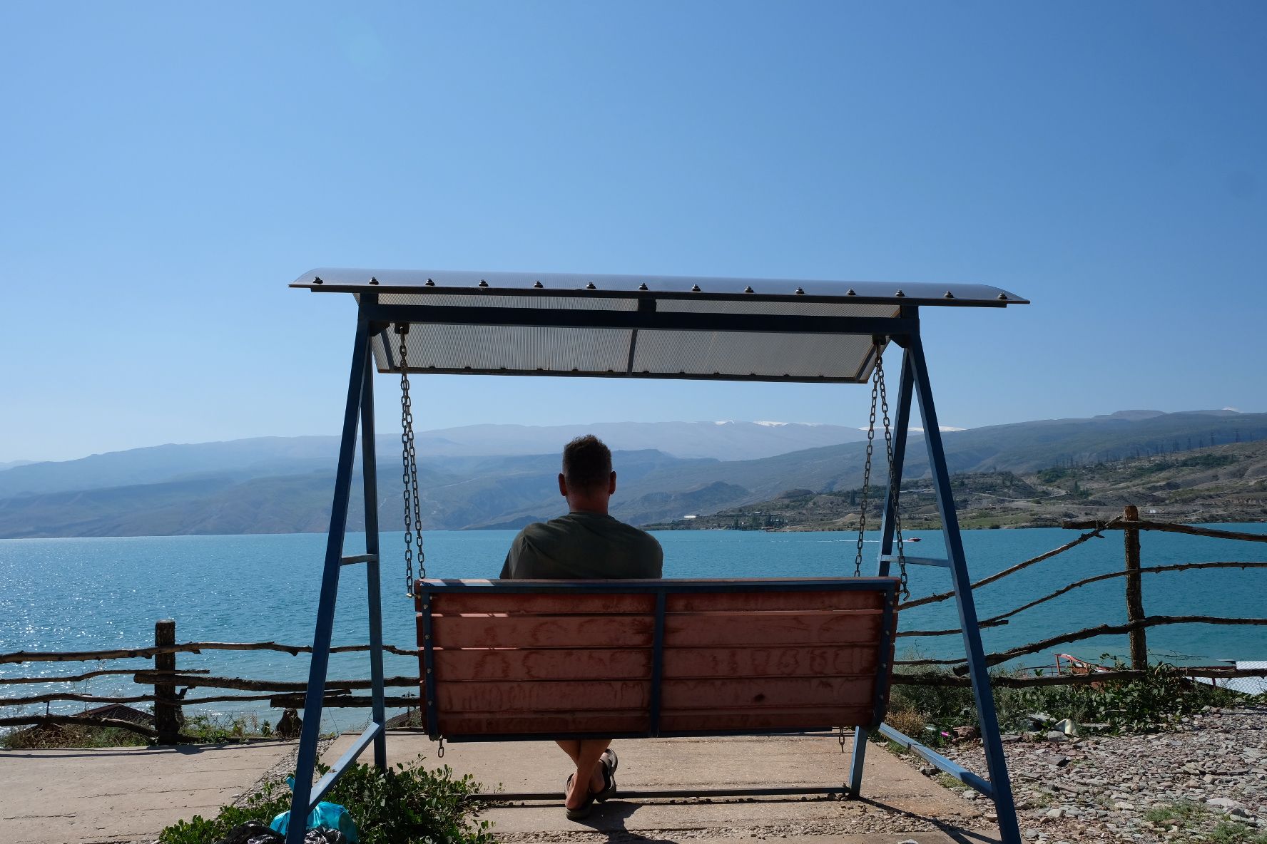 We zijn vlak bij de Russische grens, al maakt een enorme verkeersopstopping bij het verlaten van Atyrau dat het nog wat langer duurt eer we er zijn. Kazachen zijn vriendelijke mensen, tot ze in een auto stappen! Onderweg vinden we nog een mooie douche bij een tankstation en om 15.30 uur staan we aan de grens. En ongelofelijk, we zijn in 65 minuten klaar! We complimenteren de Russische beambten met hun efficiëntie, dat hebben we wel anders meegemaakt. Onze telefoon (e-sim) werkt helaas niet, waar die het op de heenweg nog wel deed in dit gebied. De GPS doet het gelukkig nog. Bij Krasny Jar gaan we weer met de veerpont over de Buzan rivier. De man vraagt nu maar liefst 10 Euro voor een paar minuten varen. Aan de overkant vinden we tussen de bomen een plekje om te overnachten. Het is zowaar warm. De volgende dag willen we een flink eind rijden om zo Astrahan voorbij te komen. Zoals ik al had verwacht gaat de GPS vlak voor de stad heel raar doen. In Google zie je dan ineens dat je op een hele andere plek bent en niet op de weg. Dit doen de Russen uiteraard om eventuele vijandige drones om de tuin te leiden. Het Nederlandse reisadvies voor dit gebied is dan ook rood. Gelukkig had ik het voorbereid en kan ik met een offline kaart langs een goed te volgen rondweg door de stad navigeren. Toch wel spannend. Ook als we de stad gepasseerd zijn blijft de GPS nog lange tijd van slag. We passeren checkpoints als we de autonome republieken Kalmukkië en Dagestan inrijden. Rusland kent 21 autonome republieken en die hebben zo hun eigen zelfbestuur, waaronder vaak een eigen grondwet, regering en parlement. Als je dus zo’n grens overgaat, wordt je gecontroleerd. Bij Sulevkent parkeren we op een stukje oude weg, de andere plekjes ijn veel te nat en modderig. Politieagenten zwaaien vriendelijk en er passeren onverwacht veel auto’s. Niemand valt ons lastig, hoewel……als het donker is horen we twee auto’s aankomen en mannen discussiëren. Dan wordt er op de deur geklopt. De rest kijkt toe, terwijl een van de mannen in het Russisch met me begint te praten. Dat versta ik natuurlijk niet, dus ik draai m’n standaardpraatje af: sorry, ik spreek weinig Russisch, we zijn toeristen uit Nederland op bezoek in Dagestan. Binnen no-time verexcuseren ze zich, z’n vriend legt een hand op z’n hart en ze vertrekken. Die dachten waarschijnlijk, wat doet die gele vrachtwagen hier? toch even checken. Verschillende overlanders zijn naar Sulak Canyon geweest en dat willen wij ook wel zien. Het is heerlijk weer en we zien verschillende kraampjes met druiven onderweg. Joost koopt een flinke zak bij een jonge dame, lekker. We starten het rondje bij het Chirkey Stuwmeer. Mooi uitzicht met de besneeuwde toppen van de Kaukasus op de achtergrond. We rijden door naar Dubki waar we naar een uitzichtpunt wandelen. Het is zowaar een toeristische hotspot met veel nationale toeristen. Het uitzicht over de canyon is prachtig en we zien diverse speedboten rondvaarten maken in de diepte. We belsuiten door te rijden naar een visrestaurant waar je ook kunt overnachten. Op de weg er naar toe lijkt er een omleiding te zijn en worden we tegengehouden door wat mannen. Geen idee waarom, maar het is niet zo prettig. We negeren ze en draaien om. Het is zowaar 25 graden en we nemen plaats op het prachtige terras van het restaurant. Buiten zijn een aantal visbassins dus de vis zal wel vers zijn! We eten inderdaad heerlijk. Na wat overleg mogen we inderdaad op het terrein staan. Joost loopt nog even naar de drukke, kermisachtige boulevard aan de rivier. Gelukkig hebben we daar ’s nachts geen last van.
