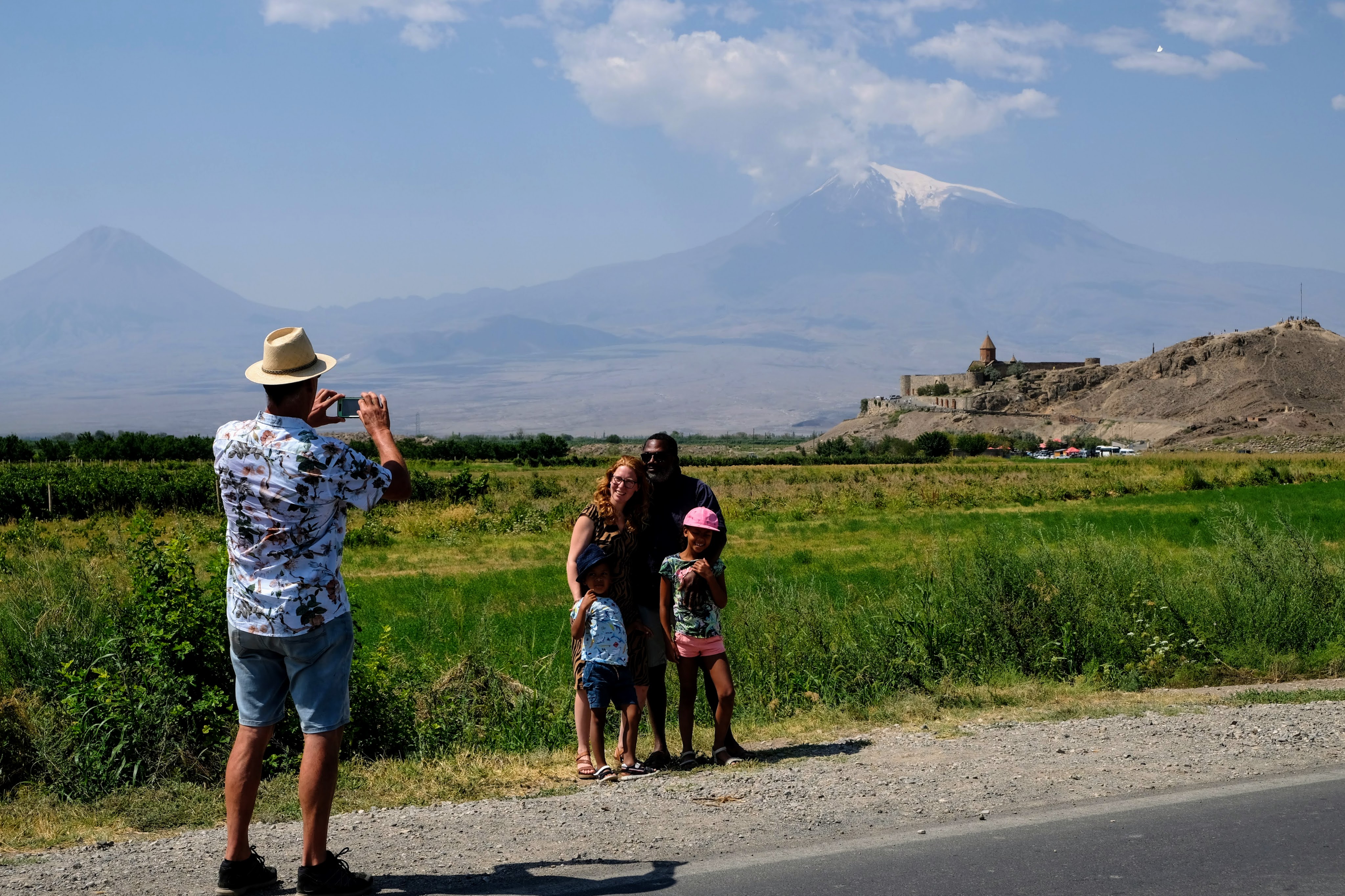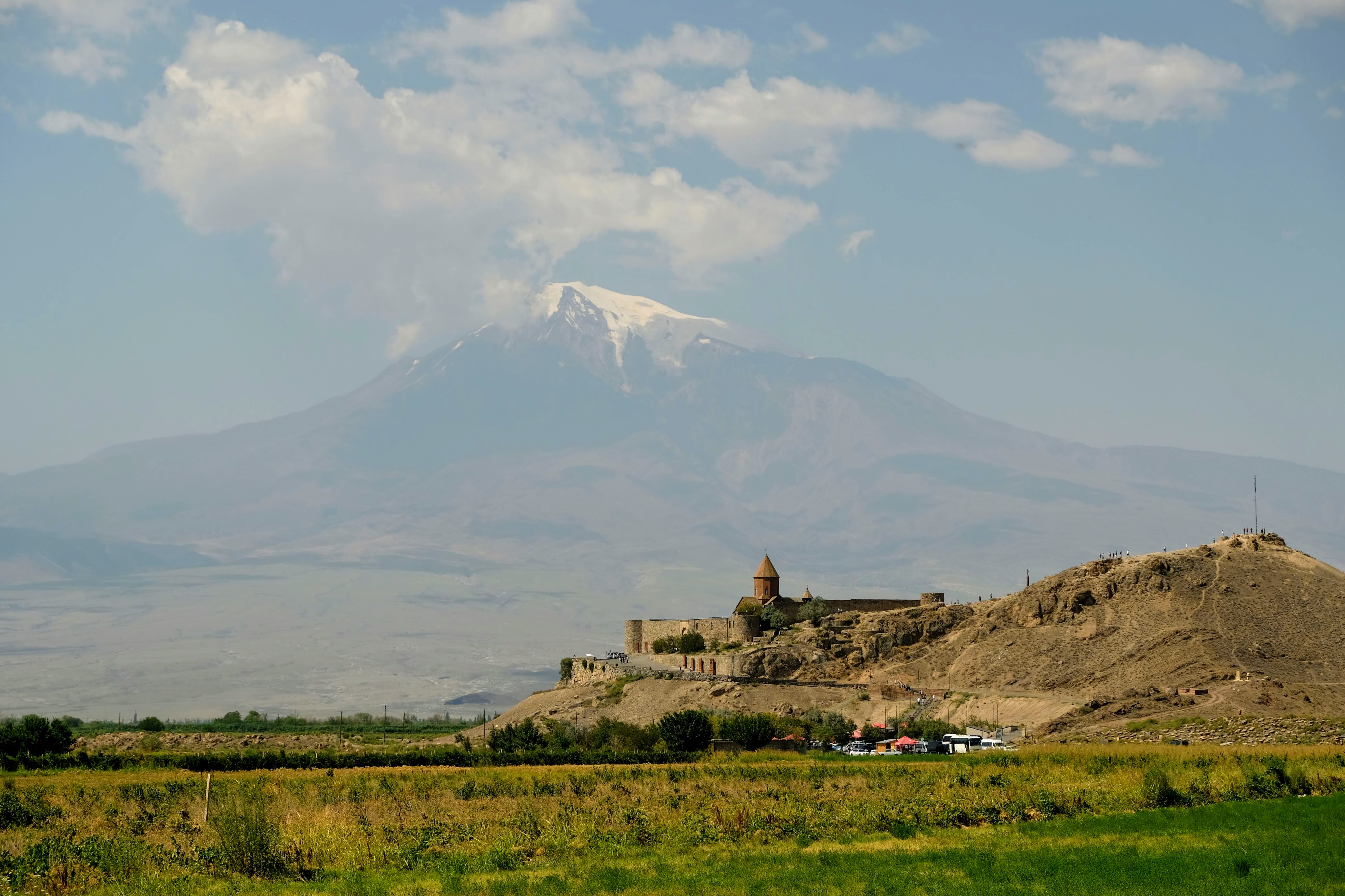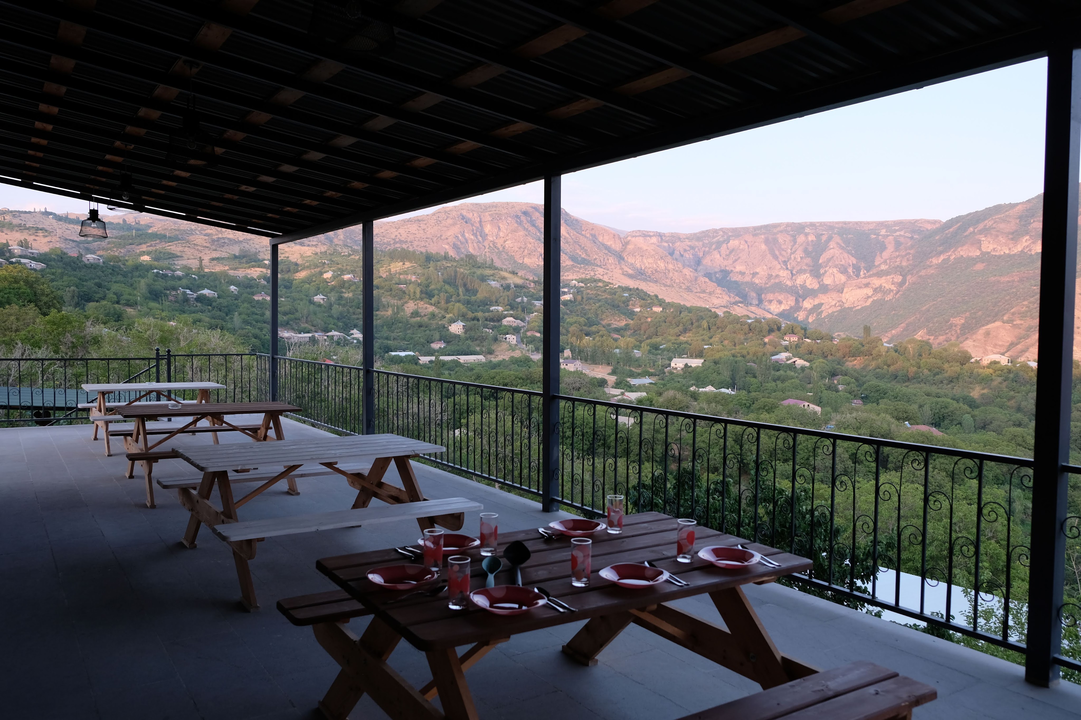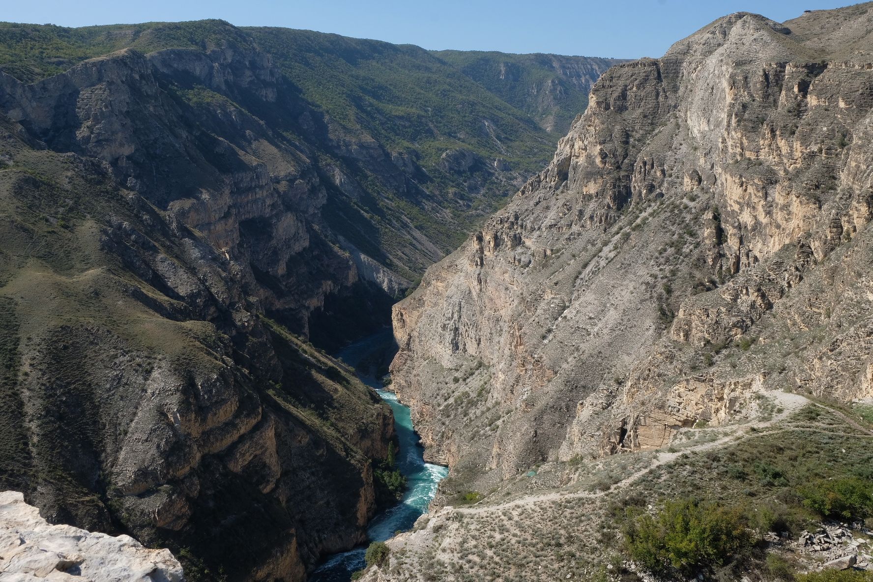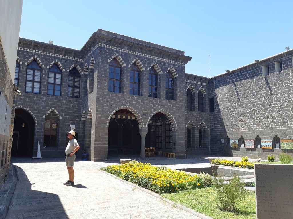We zijn vlak bij de Russische grens, al maakt een enorme verkeersopstopping bij het verlaten van Atyrau dat het nog wat langer duurt eer we er zijn. Kazachen zijn vriendelijke mensen, tot ze in een auto stappen! Onderweg vinden we nog een mooie douche bij een tankstation en om 15.30 uur staan we aan de grens. En ongelofelijk, we zijn in 65 minuten klaar! We complimenteren de Russische beambten met hun efficiëntie, dat hebben we wel anders meegemaakt. Onze telefoon (e-sim) werkt helaas niet, waar die het op de heenweg nog wel deed in dit gebied. De GPS doet het gelukkig nog. Bij Krasny Jar gaan we weer met de veerpont over de Buzan rivier. De man vraagt nu maar liefst 10 Euro voor een paar minuten varen. Aan de overkant vinden we tussen de bomen een plekje om te overnachten. Het is zowaar warm. De volgende dag willen we een flink eind rijden om zo Astrahan voorbij te komen. Zoals ik al had verwacht gaat de GPS vlak voor de stad heel raar doen. In Google zie je dan ineens dat je op een hele andere plek bent en niet op de weg. Dit doen de Russen uiteraard om eventuele vijandige drones om de tuin te leiden. Het Nederlandse reisadvies voor dit gebied is dan ook rood. Gelukkig had ik het voorbereid en kan ik met een offline kaart langs een goed te volgen rondweg door de stad navigeren. Toch wel spannend. Ook als we de stad gepasseerd zijn blijft de GPS nog lange tijd van slag. We passeren checkpoints als we de autonome republieken Kalmukkië en Dagestan inrijden. Rusland kent 21 autonome republieken en die hebben zo hun eigen zelfbestuur, waaronder vaak een eigen grondwet, regering en parlement. Als je dus zo’n grens overgaat, wordt je gecontroleerd. Bij Sulevkent parkeren we op een stukje oude weg, de andere plekjes ijn veel te nat en modderig. Politieagenten zwaaien vriendelijk en er passeren onverwacht veel auto’s. Niemand valt ons lastig, hoewel……als het donker is horen we twee auto’s aankomen en mannen discussiëren. Dan wordt er op de deur geklopt. De rest kijkt toe, terwijl een van de mannen in het Russisch met me begint te praten. Dat versta ik natuurlijk niet, dus ik draai m’n standaardpraatje af: sorry, ik spreek weinig Russisch, we zijn toeristen uit Nederland op bezoek in Dagestan. Binnen no-time verexcuseren ze zich, z’n vriend legt een hand op z’n hart en ze vertrekken. Die dachten waarschijnlijk, wat doet die gele vrachtwagen hier? toch even checken. Verschillende overlanders zijn naar Sulak Canyon geweest en dat willen wij ook wel zien. Het is heerlijk weer en we zien verschillende kraampjes met druiven onderweg. Joost koopt een flinke zak bij een jonge dame, lekker. We starten het rondje bij het Chirkey Stuwmeer. Mooi uitzicht met de besneeuwde toppen van de Kaukasus op de achtergrond. We rijden door naar Dubki waar we naar een uitzichtpunt wandelen. Het is zowaar een toeristische hotspot met veel nationale toeristen. Het uitzicht over de canyon is prachtig en we zien diverse speedboten rondvaarten maken in de diepte. We belsuiten door te rijden naar een visrestaurant waar je ook kunt overnachten. Op de weg er naar toe lijkt er een omleiding te zijn en worden we tegengehouden door wat mannen. Geen idee waarom, maar het is niet zo prettig. We negeren ze en draaien om. Het is zowaar 25 graden en we nemen plaats op het prachtige terras van het restaurant. Buiten zijn een aantal visbassins dus de vis zal wel vers zijn! We eten inderdaad heerlijk. Na wat overleg mogen we inderdaad op het terrein staan. Joost loopt nog even naar de drukke, kermisachtige boulevard aan de rivier. Gelukkig hebben we daar ’s nachts geen last van.