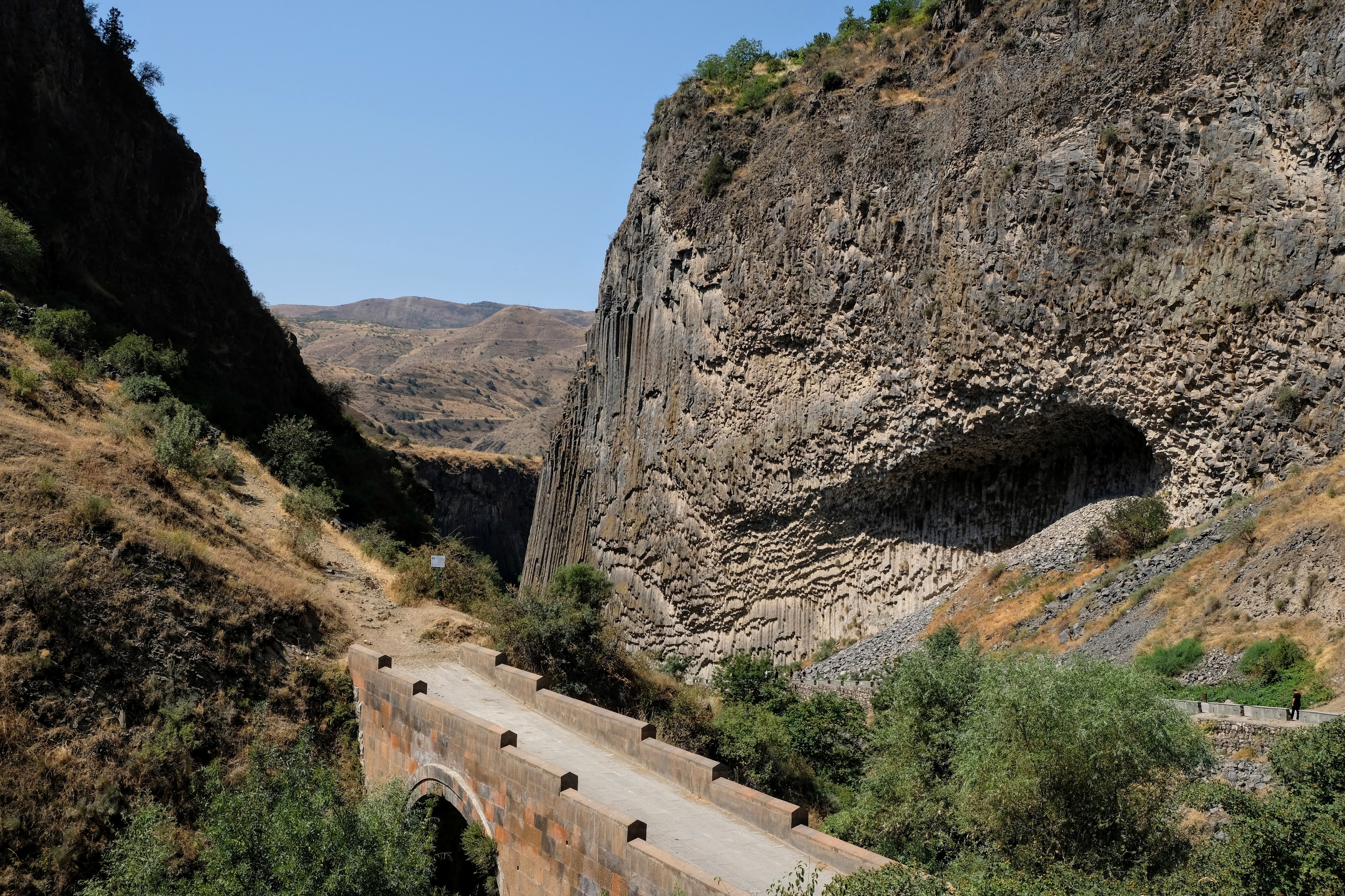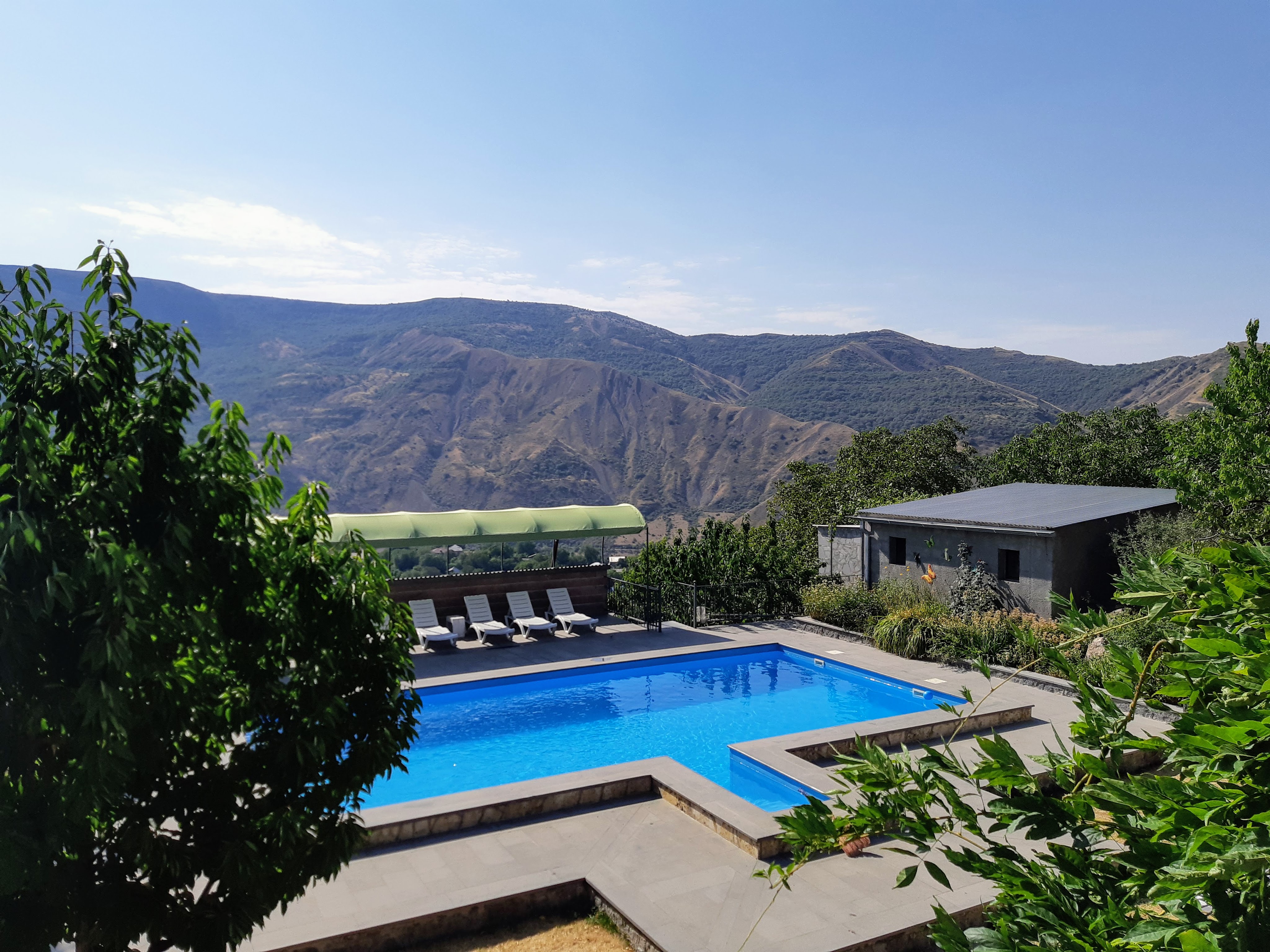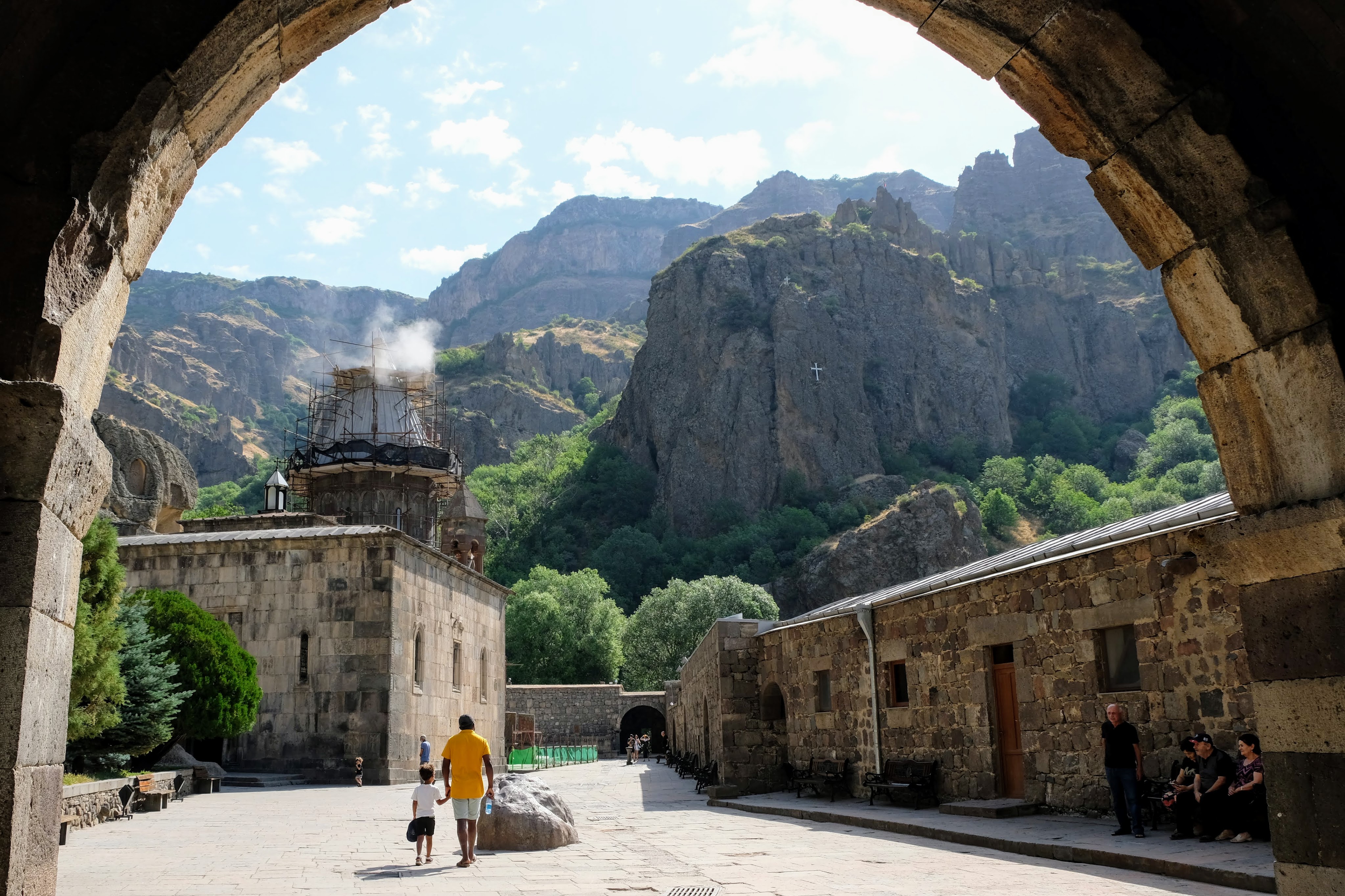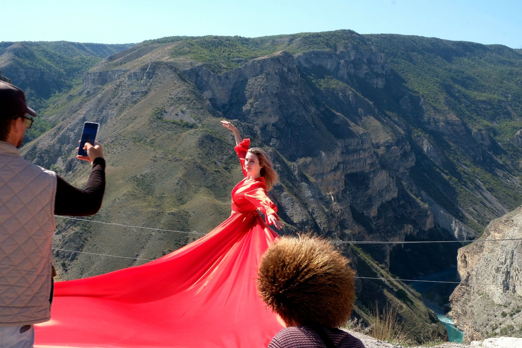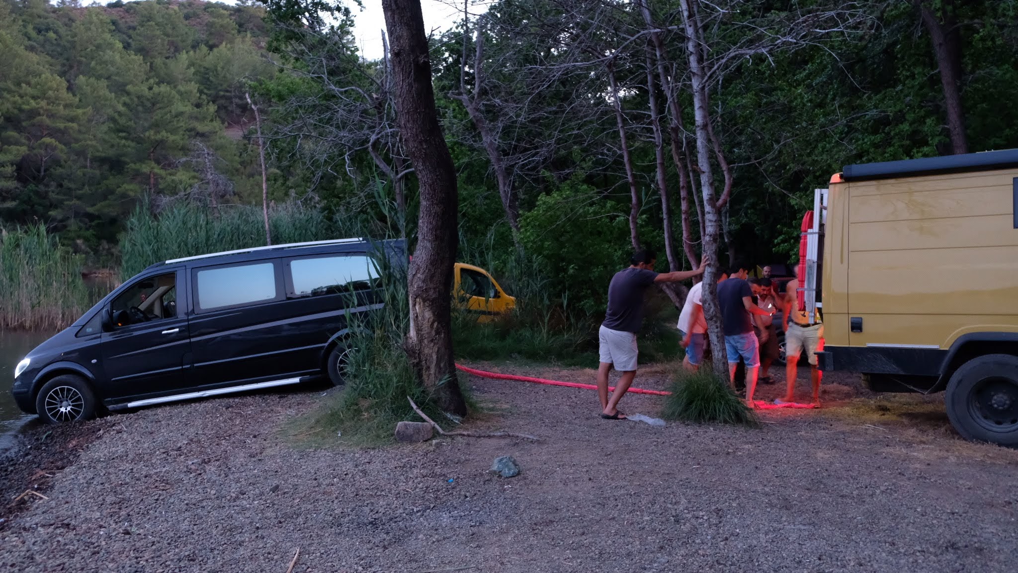 We zijn vlak bij de Russische grens, al maakt een enorme verkeersopstopping bij het verlaten van Atyrau dat het nog wat langer duurt eer we er zijn. Kazachen zijn vriendelijke mensen, tot ze in een auto stappen! Onderweg vinden we nog een mooie douche bij een tankstation en om 15.30 uur staan we aan de grens. En ongelofelijk, we zijn in 65 minuten klaar! We complimenteren de Russische beambten met hun efficiëntie, dat hebben we wel anders meegemaakt. Onze telefoon (e-sim) werkt helaas niet, waar die het op de heenweg nog wel deed in dit gebied. De GPS doet het gelukkig nog. Bij Krasny Jar gaan we weer met de veerpont over de Buzan rivier. De man vraagt nu maar liefst 10 Euro voor een paar minuten varen. Aan de overkant vinden we tussen de bomen een plekje om te overnachten. Het is zowaar warm. De volgende dag willen we een flink eind rijden om zo Astrahan voorbij te komen. Zoals ik al had verwacht gaat de GPS vlak voor de stad heel raar doen. In Google zie je dan ineens dat je op een hele andere plek bent en niet op de weg. Dit doen de Russen uiteraard om eventuele vijandige drones om de tuin te leiden. Het Nederlandse reisadvies voor dit gebied is dan ook rood. Gelukkig had ik het voorbereid en kan ik met een offline kaart langs een goed te volgen rondweg door de stad navigeren. Toch wel spannend. Ook als we de stad gepasseerd zijn blijft de GPS nog lange tijd van slag. We passeren checkpoints als we de autonome republieken Kalmukkië en Dagestan inrijden. Rusland kent 21 autonome republieken en die hebben zo hun eigen zelfbestuur, waaronder vaak een eigen grondwet, regering en parlement. Als je dus zo’n grens overgaat, wordt je gecontroleerd. Bij Sulevkent parkeren we op een stukje oude weg, de andere plekjes ijn veel te nat en modderig. Politieagenten zwaaien vriendelijk en er passeren onverwacht veel auto’s. Niemand valt ons lastig, hoewel……als het donker is horen we twee auto’s aankomen en mannen discussiëren. Dan wordt er op de deur geklopt. De rest kijkt toe, terwijl een van de mannen in het Russisch met me begint te praten. Dat versta ik natuurlijk niet, dus ik draai m’n standaardpraatje af: sorry, ik spreek weinig Russisch, we zijn toeristen uit Nederland op bezoek in Dagestan. Binnen no-time verexcuseren ze zich, z’n vriend legt een hand op z’n hart en ze vertrekken. Die dachten waarschijnlijk, wat doet die gele vrachtwagen hier? toch even checken. Verschillende overlanders zijn naar Sulak Canyon geweest en dat willen wij ook wel zien. Het is heerlijk weer en we zien verschillende kraampjes met druiven onderweg. Joost koopt een flinke zak bij een jonge dame, lekker. We starten het rondje bij het Chirkey Stuwmeer. Mooi uitzicht met de besneeuwde toppen van de Kaukasus op de achtergrond. We rijden door naar Dubki waar we naar een uitzichtpunt wandelen. Het is zowaar een toeristische hotspot met veel nationale toeristen. Het uitzicht over de canyon is prachtig en we zien diverse speedboten rondvaarten maken in de diepte. We belsuiten door te rijden naar een visrestaurant waar je ook kunt overnachten. Op de weg er naar toe lijkt er een omleiding te zijn en worden we tegengehouden door wat mannen. Geen idee waarom, maar het is niet zo prettig. We negeren ze en draaien om. Het is zowaar 25 graden en we nemen plaats op het prachtige terras van het restaurant. Buiten zijn een aantal visbassins dus de vis zal wel vers zijn! We eten inderdaad heerlijk. Na wat overleg mogen we inderdaad op het terrein staan. Joost loopt nog even naar de drukke, kermisachtige boulevard aan de rivier. Gelukkig hebben we daar ’s nachts geen last van.