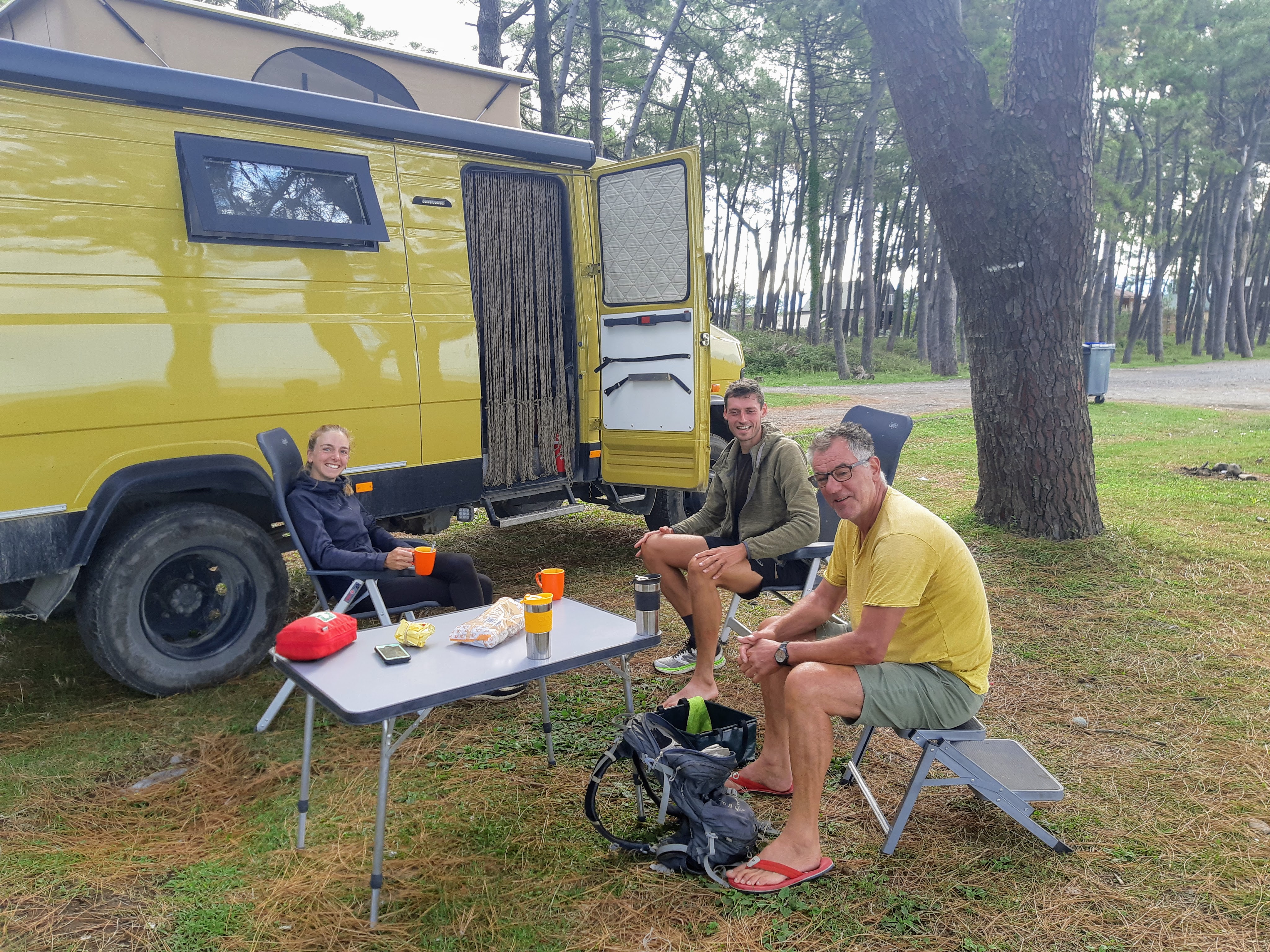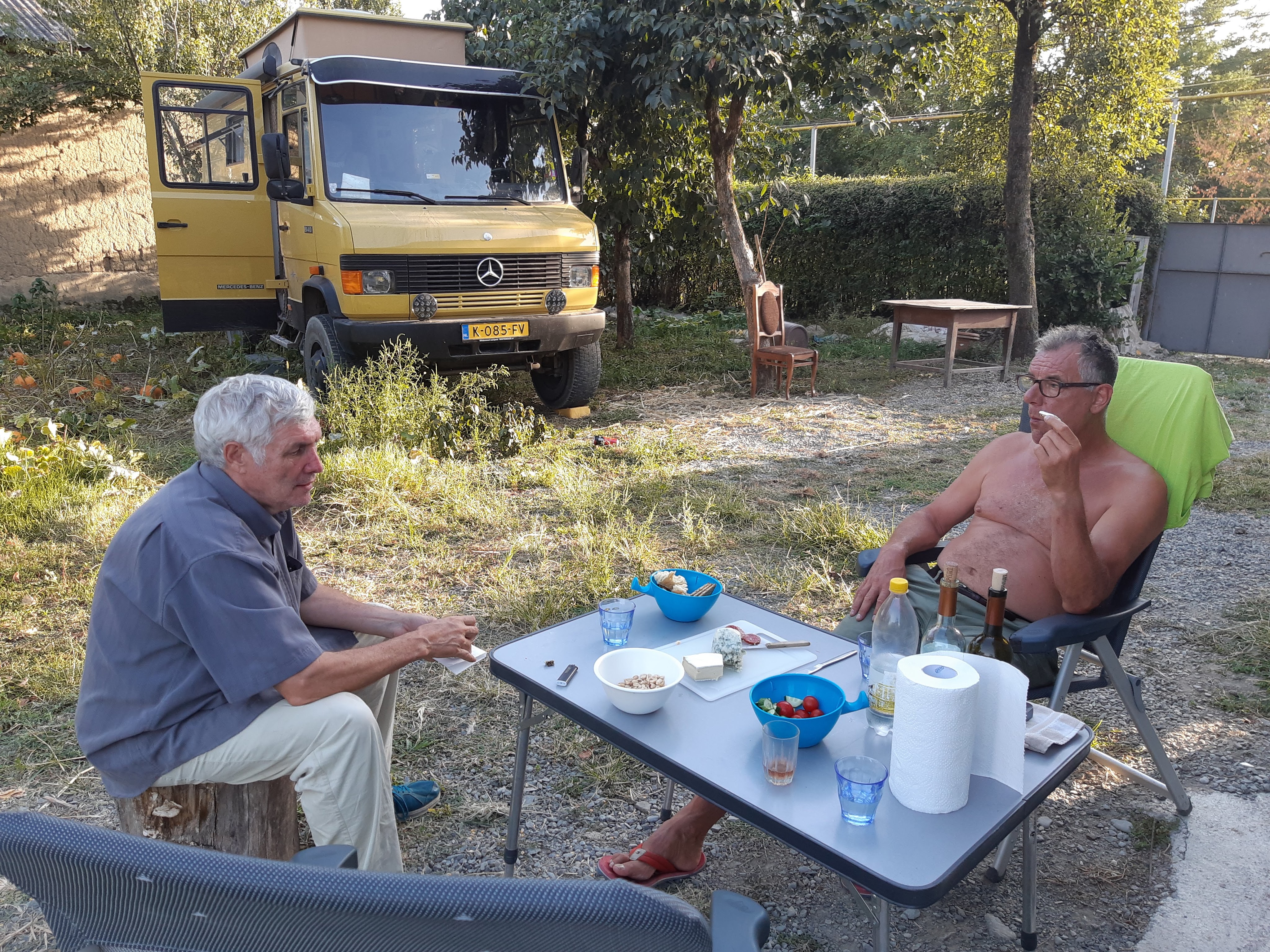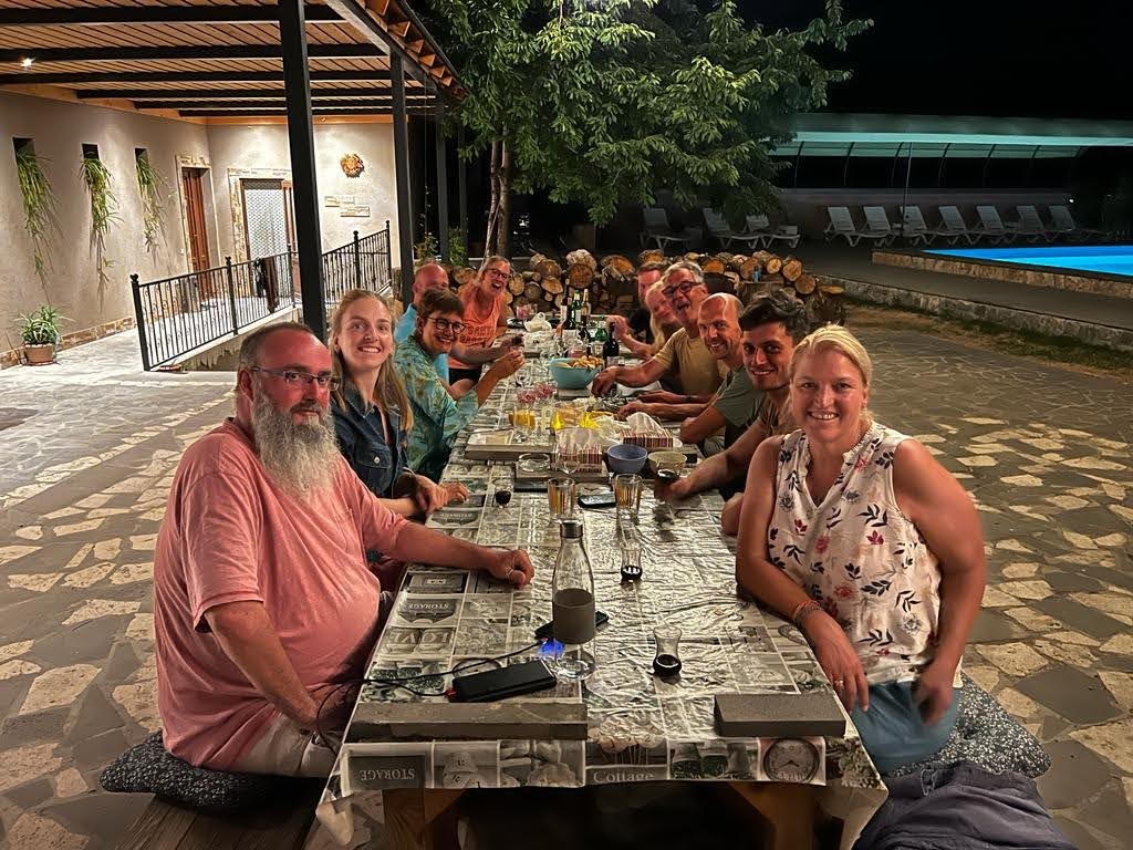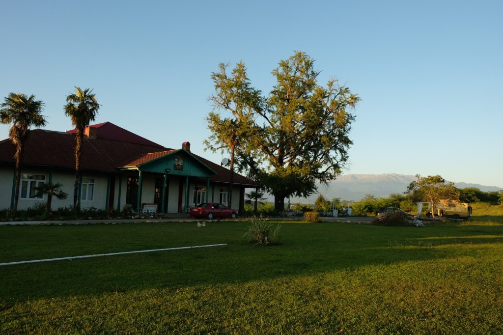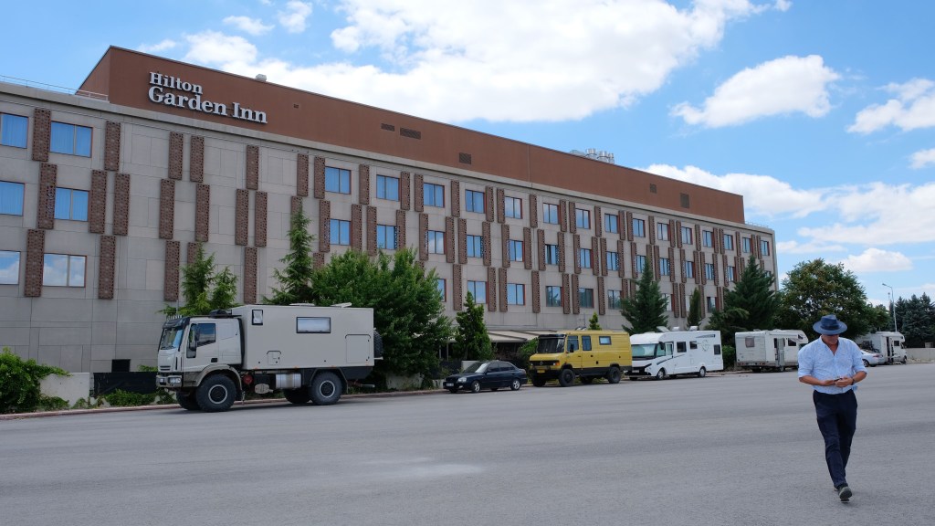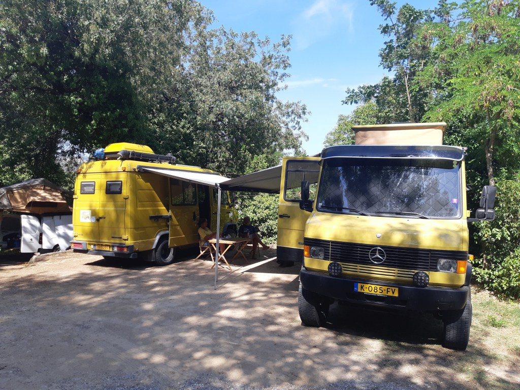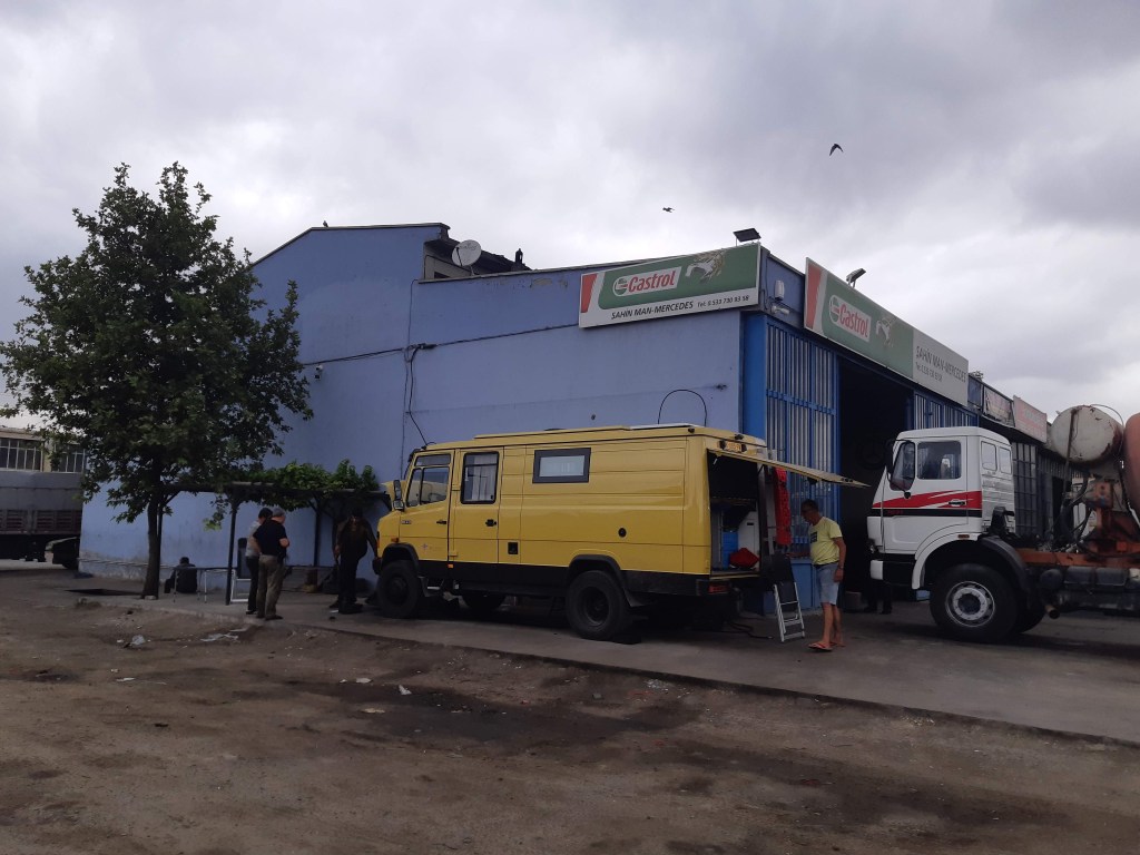 Maandag de 29e hebben we een afspraak bij de Mercedes garage. De vorige keer heeft Georgi ons vortreffelijk geholpen met de vervanging van de luchtverdeler. We hebben hem gevraagd van te voren wat onderdelen te bestellen maar dat is niet helemaal gelukt. Gelukkig weten ze dat we een grote beurt nodig hebben, dus daar starten ze gelijk mee. Helaas kunnen ze verder weinig doen. Als we vertrekken om 12 uur, komt Georgi aan. Hij is duidelijk flink ziek en was naar het ziekenhuis. Nou ja, dan laten we het hier bij. We rijden over de fantastische nieuwe snelweg naar Kutaisi. Die Chinezen hebben hard gewerkt hier aan flink wat tunnels en bruggen. Jammer dat ze nog geen rustplaatsen hebben gemaakt, voor de lunch moeten we een dorp inrijden. We hebben bedacht om weer bij Itara Camp te gaan staan. In 2022 hebben we daar heerlijk gestaan met Bart en Annelouc in de tuin van de Duitsers Claudia en Christoph. Op de website zie ik dat ze hard gewerkt hebben en er nu een huisje staat en een badkamer en keuken voor gasten. Als we de snelweg verlaten rijden we door het prachtige gebied rond Ozurgeti. Het is tropisch groen begroeid en vochtig warm. We worden hartelijk ontvangen. ’s Avonds komt er zowaar een MAN truck bij. De volgende dag regent het helaas de hele dag. Ik boek een vliegticket van Trabzon naar huis en een ferry-ticket voor Joost van Griekendland naar Ancone, Italie. ’s Avonds borrelen we gezellig met Klaus en zijn vrouw en een ander stel dat vandaag met een camper is aangekomen. Het is een ratjetoe van Engels en Duits maar zeker gezellig. In de morgen schijnt de zon, poets ik wat en we maken een wandeling. ’s Avonds is het weer gezellig in de gastenkeuken. En dan is het tijd om richting Turkije te gaan. We vinden het beide een raar idee om uit elkaar te gaan na 6 maanden, maar we zijn het eens dat het goed is zo. We maken nog een tussenstop aan het strand van Gonio, vlak onder Batumi. We maken een wandeling en zien langzaam de zon in de zee zakken onder het genot van een gebraden kippetje met gebakken aardappeltjes en aubergine rolletjes met walnoten die we vanochtend gescoord hebben. Vrijdag 3 oktober rijden we de grens met Turkije over. Ook hier wil ik van mijn Georgische Lari’s af. Een jongeman wil ze eigenlijk niet aannemen zonder er iets voor terug te geven. Hij neemt ze toch aan en als ik Turkse Lira’s sta te pinnen geeft hij mij een volle hand met snoepjes. Dat voelt blijkbaar toch beter. We rijden langs te Turkse kust, kopen bij een postkantoor een tolticket en parkeren op de luchthaven van Trabzon. Het parkeerterrein is flink vol maar ze doen hun best een plekje voor ons te vinden. Na een broodje nemen we een taxi de stad in. Trabzon is een heerlijke stad met veel marktjes en winkeltjes en het is prima weer. We lopen lekker rond en zoeken nog wat cadeautjes. Het kost wat moeite een tentje te vinden waar we een biertje kunnen drinken in deze islamitische stad. Er zitten veel Russen en de uitbaatster spreekt dan ook vloeiend Russisch. We eindigen in een traditioneel restaurantje en laten ons weer terugrijden naar de Chef.