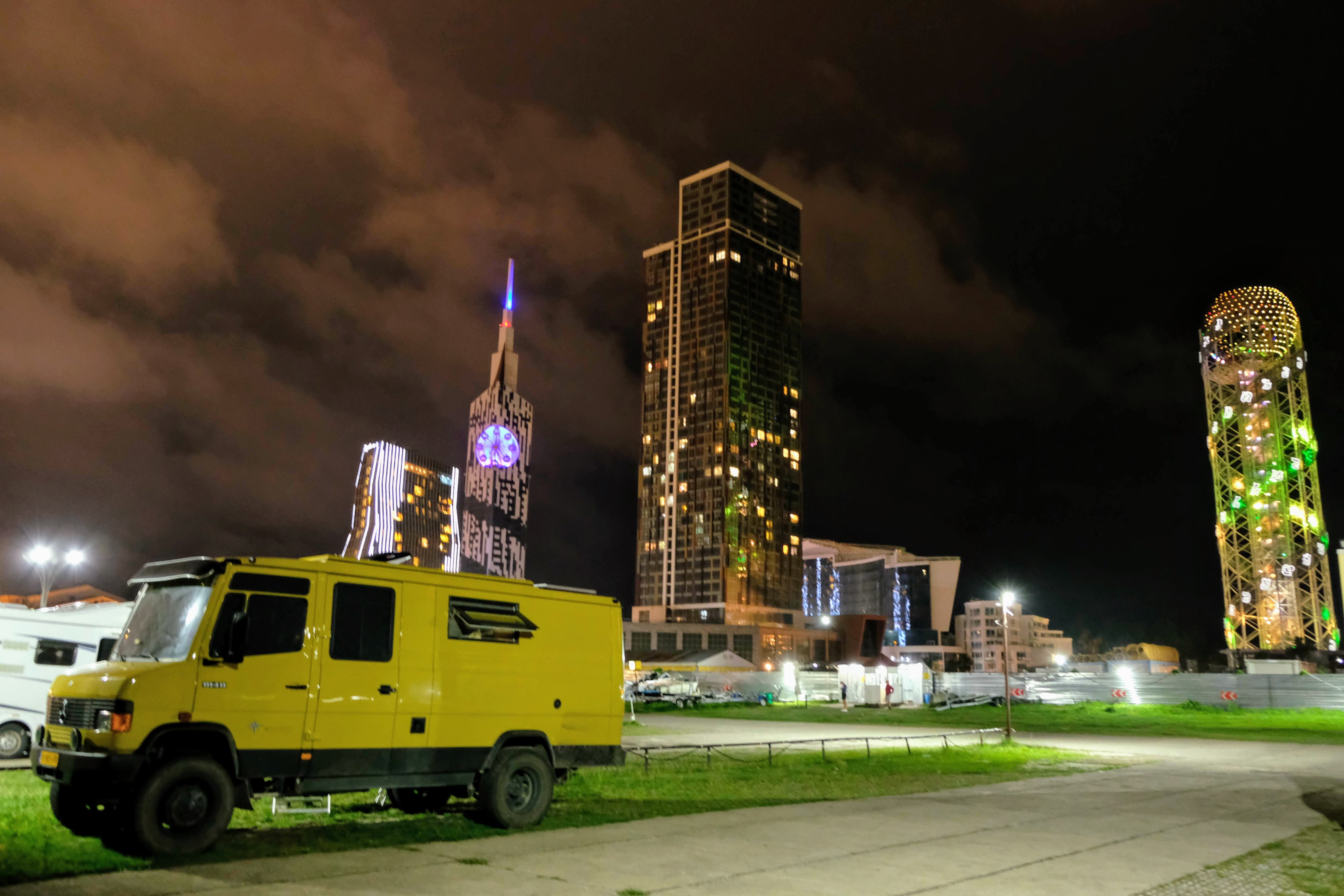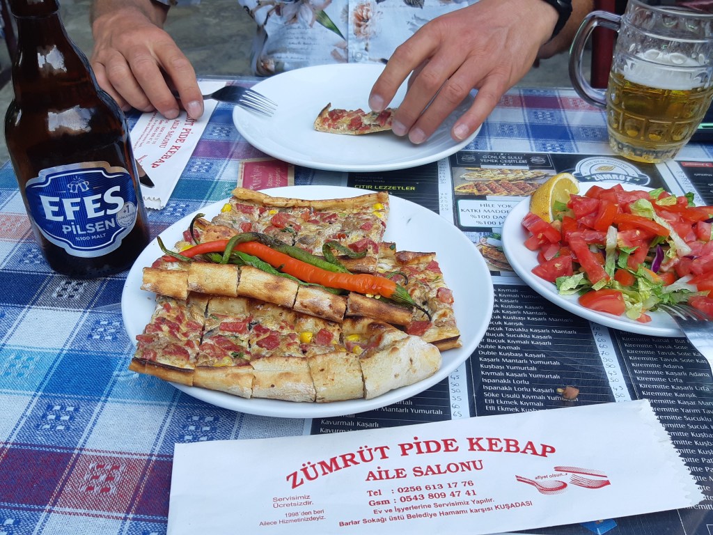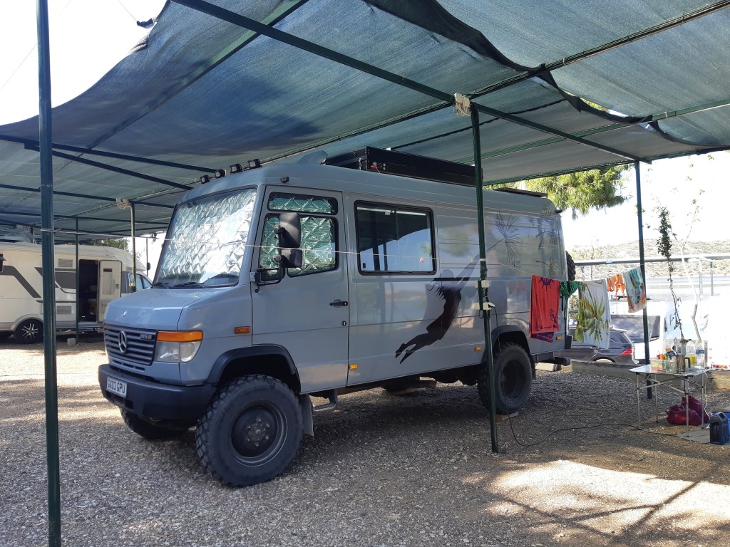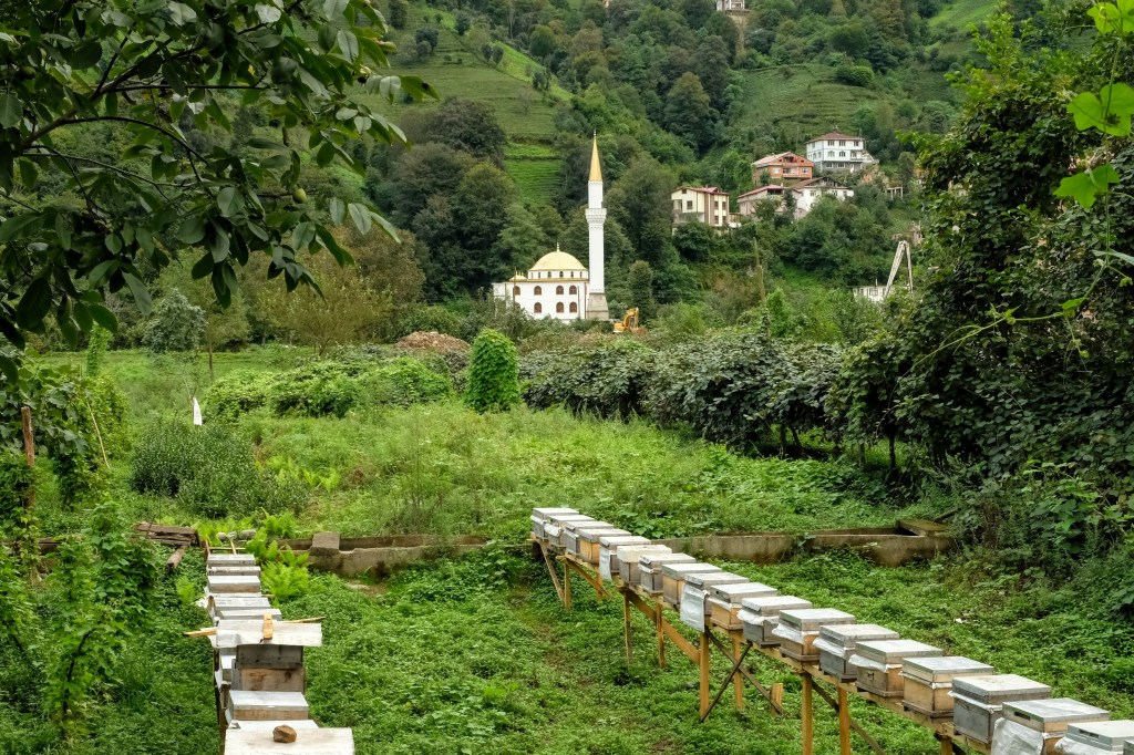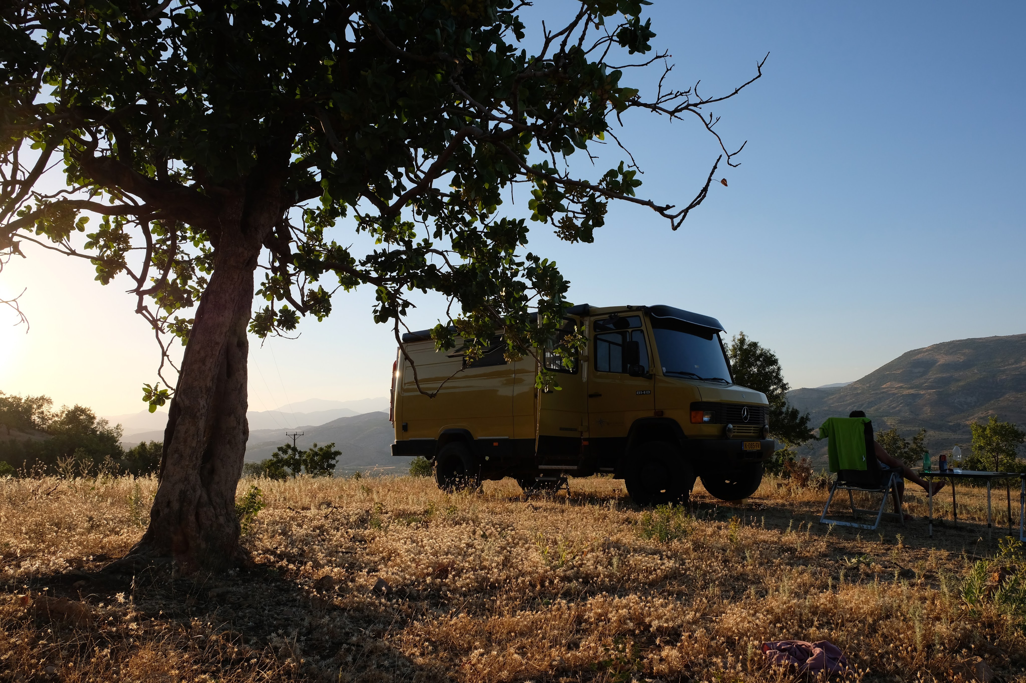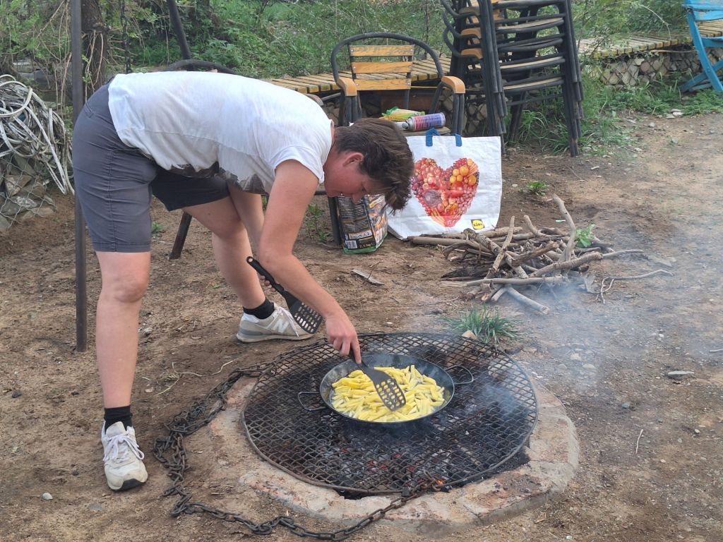 Maandag de 29e hebben we een afspraak bij de Mercedes garage. De vorige keer heeft Georgi ons vortreffelijk geholpen met de vervanging van de luchtverdeler. We hebben hem gevraagd van te voren wat onderdelen te bestellen maar dat is niet helemaal gelukt. Gelukkig weten ze dat we een grote beurt nodig hebben, dus daar starten ze gelijk mee. Helaas kunnen ze verder weinig doen. Als we vertrekken om 12 uur, komt Georgi aan. Hij is duidelijk flink ziek en was naar het ziekenhuis. Nou ja, dan laten we het hier bij. We rijden over de fantastische nieuwe snelweg naar Kutaisi. Die Chinezen hebben hard gewerkt hier aan flink wat tunnels en bruggen. Jammer dat ze nog geen rustplaatsen hebben gemaakt, voor de lunch moeten we een dorp inrijden. We hebben bedacht om weer bij Itara Camp te gaan staan. In 2022 hebben we daar heerlijk gestaan met Bart en Annelouc in de tuin van de Duitsers Claudia en Christoph. Op de website zie ik dat ze hard gewerkt hebben en er nu een huisje staat en een badkamer en keuken voor gasten. Als we de snelweg verlaten rijden we door het prachtige gebied rond Ozurgeti. Het is tropisch groen begroeid en vochtig warm. We worden hartelijk ontvangen. ’s Avonds komt er zowaar een MAN truck bij. De volgende dag regent het helaas de hele dag. Ik boek een vliegticket van Trabzon naar huis en een ferry-ticket voor Joost van Griekendland naar Ancone, Italie. ’s Avonds borrelen we gezellig met Klaus en zijn vrouw en een ander stel dat vandaag met een camper is aangekomen. Het is een ratjetoe van Engels en Duits maar zeker gezellig. In de morgen schijnt de zon, poets ik wat en we maken een wandeling. ’s Avonds is het weer gezellig in de gastenkeuken. En dan is het tijd om richting Turkije te gaan. We vinden het beide een raar idee om uit elkaar te gaan na 6 maanden, maar we zijn het eens dat het goed is zo. We maken nog een tussenstop aan het strand van Gonio, vlak onder Batumi. We maken een wandeling en zien langzaam de zon in de zee zakken onder het genot van een gebraden kippetje met gebakken aardappeltjes en aubergine rolletjes met walnoten die we vanochtend gescoord hebben. Vrijdag 3 oktober rijden we de grens met Turkije over. Ook hier wil ik van mijn Georgische Lari’s af. Een jongeman wil ze eigenlijk niet aannemen zonder er iets voor terug te geven. Hij neemt ze toch aan en als ik Turkse Lira’s sta te pinnen geeft hij mij een volle hand met snoepjes. Dat voelt blijkbaar toch beter. We rijden langs te Turkse kust, kopen bij een postkantoor een tolticket en parkeren op de luchthaven van Trabzon. Het parkeerterrein is flink vol maar ze doen hun best een plekje voor ons te vinden. Na een broodje nemen we een taxi de stad in. Trabzon is een heerlijke stad met veel marktjes en winkeltjes en het is prima weer. We lopen lekker rond en zoeken nog wat cadeautjes. Het kost wat moeite een tentje te vinden waar we een biertje kunnen drinken in deze islamitische stad. Er zitten veel Russen en de uitbaatster spreekt dan ook vloeiend Russisch. We eindigen in een traditioneel restaurantje en laten ons weer terugrijden naar de Chef.