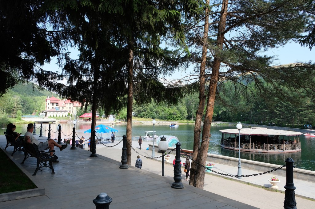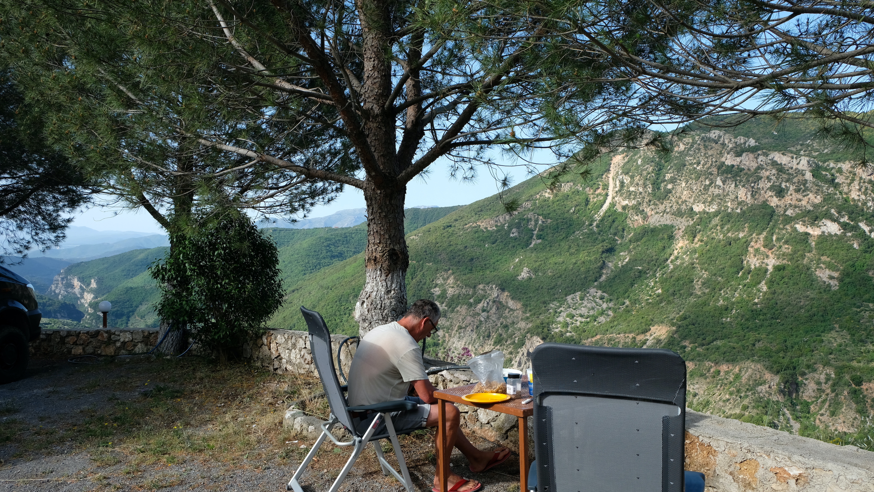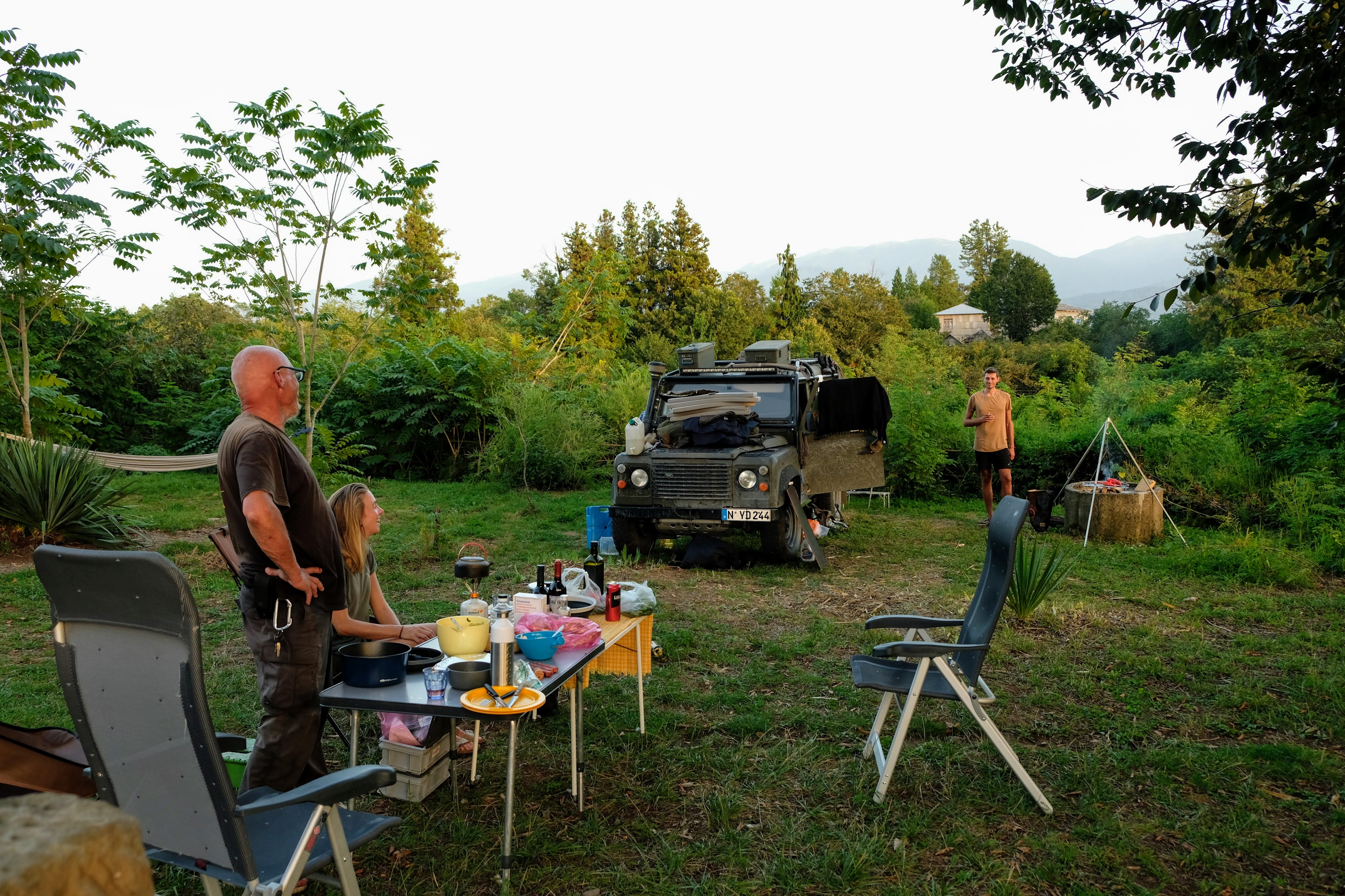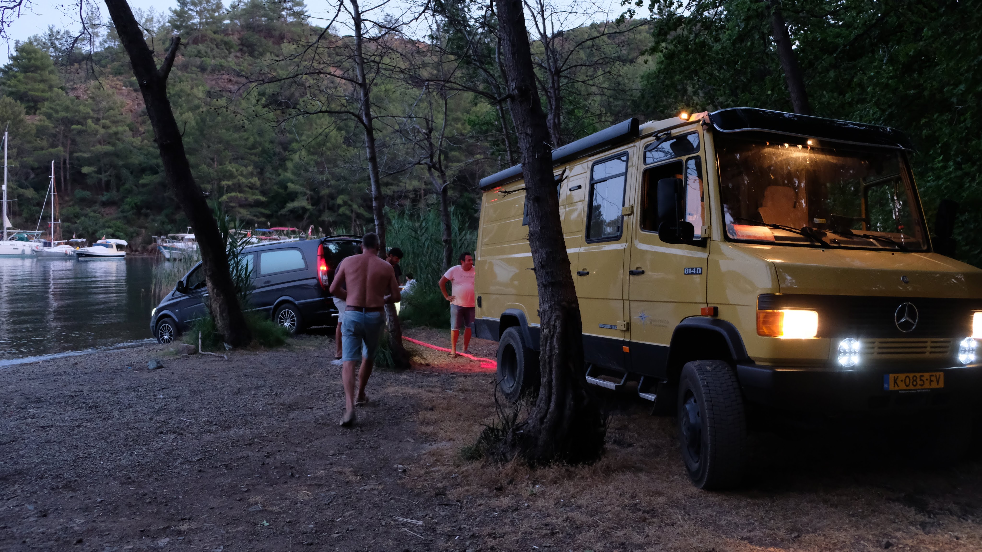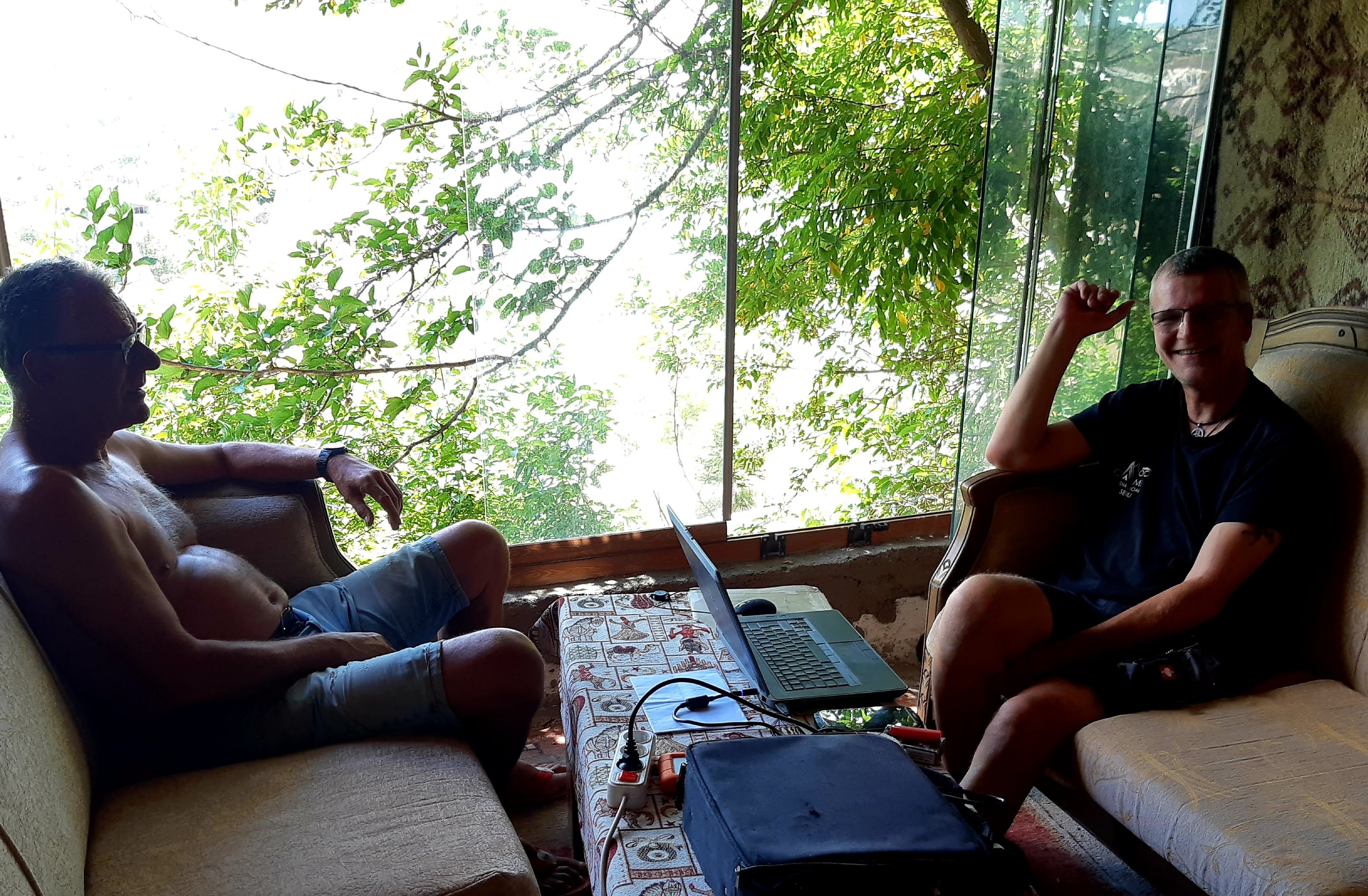 Maandag de 29e hebben we een afspraak bij de Mercedes garage. De vorige keer heeft Georgi ons vortreffelijk geholpen met de vervanging van de luchtverdeler. We hebben hem gevraagd van te voren wat onderdelen te bestellen maar dat is niet helemaal gelukt. Gelukkig weten ze dat we een grote beurt nodig hebben, dus daar starten ze gelijk mee. Helaas kunnen ze verder weinig doen. Als we vertrekken om 12 uur, komt Georgi aan. Hij is duidelijk flink ziek en was naar het ziekenhuis. Nou ja, dan laten we het hier bij. We rijden over de fantastische nieuwe snelweg naar Kutaisi. Die Chinezen hebben hard gewerkt hier aan flink wat tunnels en bruggen. Jammer dat ze nog geen rustplaatsen hebben gemaakt, voor de lunch moeten we een dorp inrijden. We hebben bedacht om weer bij Itara Camp te gaan staan. In 2022 hebben we daar heerlijk gestaan met Bart en Annelouc in de tuin van de Duitsers Claudia en Christoph. Op de website zie ik dat ze hard gewerkt hebben en er nu een huisje staat en een badkamer en keuken voor gasten. Als we de snelweg verlaten rijden we door het prachtige gebied rond Ozurgeti. Het is tropisch groen begroeid en vochtig warm. We worden hartelijk ontvangen. ’s Avonds komt er zowaar een MAN truck bij. De volgende dag regent het helaas de hele dag. Ik boek een vliegticket van Trabzon naar huis en een ferry-ticket voor Joost van Griekendland naar Ancone, Italie. ’s Avonds borrelen we gezellig met Klaus en zijn vrouw en een ander stel dat vandaag met een camper is aangekomen. Het is een ratjetoe van Engels en Duits maar zeker gezellig. In de morgen schijnt de zon, poets ik wat en we maken een wandeling. ’s Avonds is het weer gezellig in de gastenkeuken. En dan is het tijd om richting Turkije te gaan. We vinden het beide een raar idee om uit elkaar te gaan na 6 maanden, maar we zijn het eens dat het goed is zo. We maken nog een tussenstop aan het strand van Gonio, vlak onder Batumi. We maken een wandeling en zien langzaam de zon in de zee zakken onder het genot van een gebraden kippetje met gebakken aardappeltjes en aubergine rolletjes met walnoten die we vanochtend gescoord hebben. Vrijdag 3 oktober rijden we de grens met Turkije over. Ook hier wil ik van mijn Georgische Lari’s af. Een jongeman wil ze eigenlijk niet aannemen zonder er iets voor terug te geven. Hij neemt ze toch aan en als ik Turkse Lira’s sta te pinnen geeft hij mij een volle hand met snoepjes. Dat voelt blijkbaar toch beter. We rijden langs te Turkse kust, kopen bij een postkantoor een tolticket en parkeren op de luchthaven van Trabzon. Het parkeerterrein is flink vol maar ze doen hun best een plekje voor ons te vinden. Na een broodje nemen we een taxi de stad in. Trabzon is een heerlijke stad met veel marktjes en winkeltjes en het is prima weer. We lopen lekker rond en zoeken nog wat cadeautjes. Het kost wat moeite een tentje te vinden waar we een biertje kunnen drinken in deze islamitische stad. Er zitten veel Russen en de uitbaatster spreekt dan ook vloeiend Russisch. We eindigen in een traditioneel restaurantje en laten ons weer terugrijden naar de Chef.