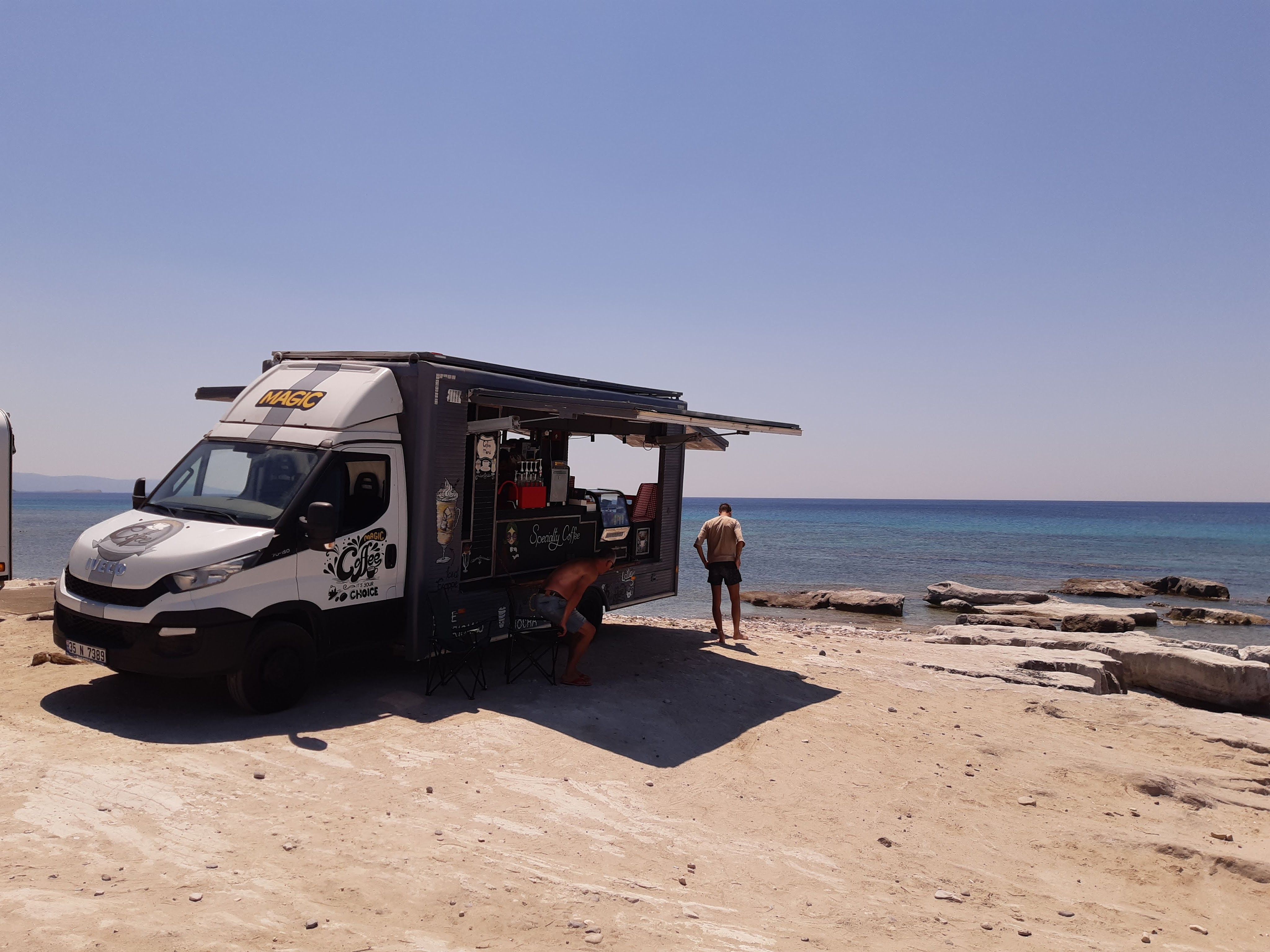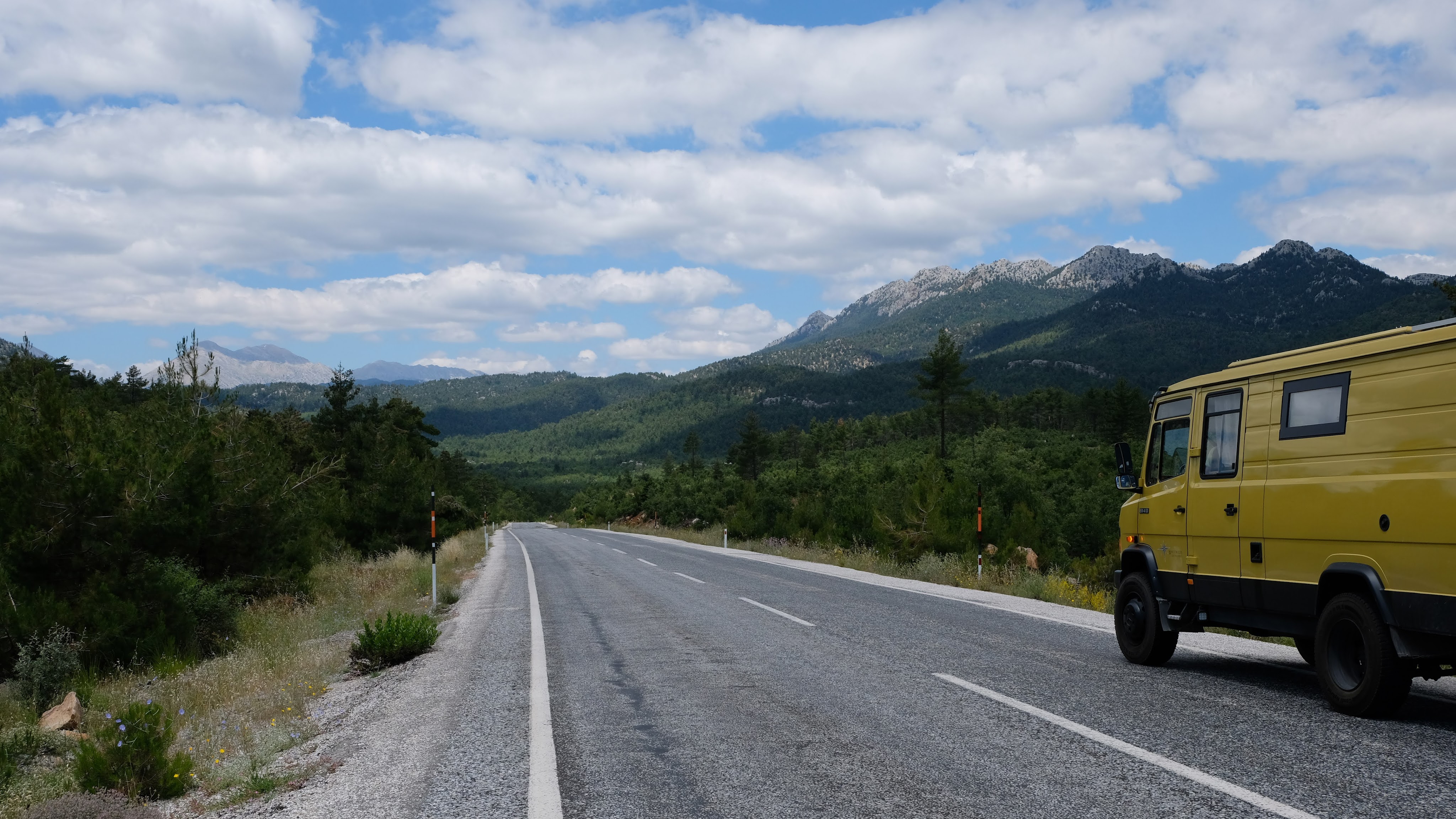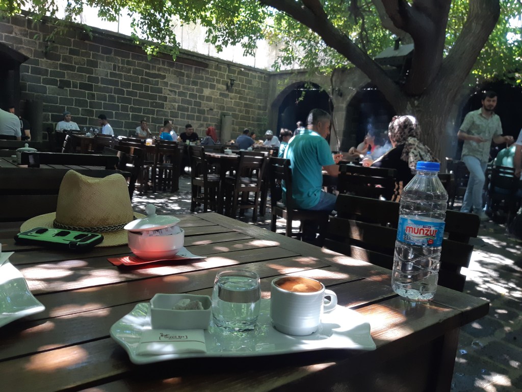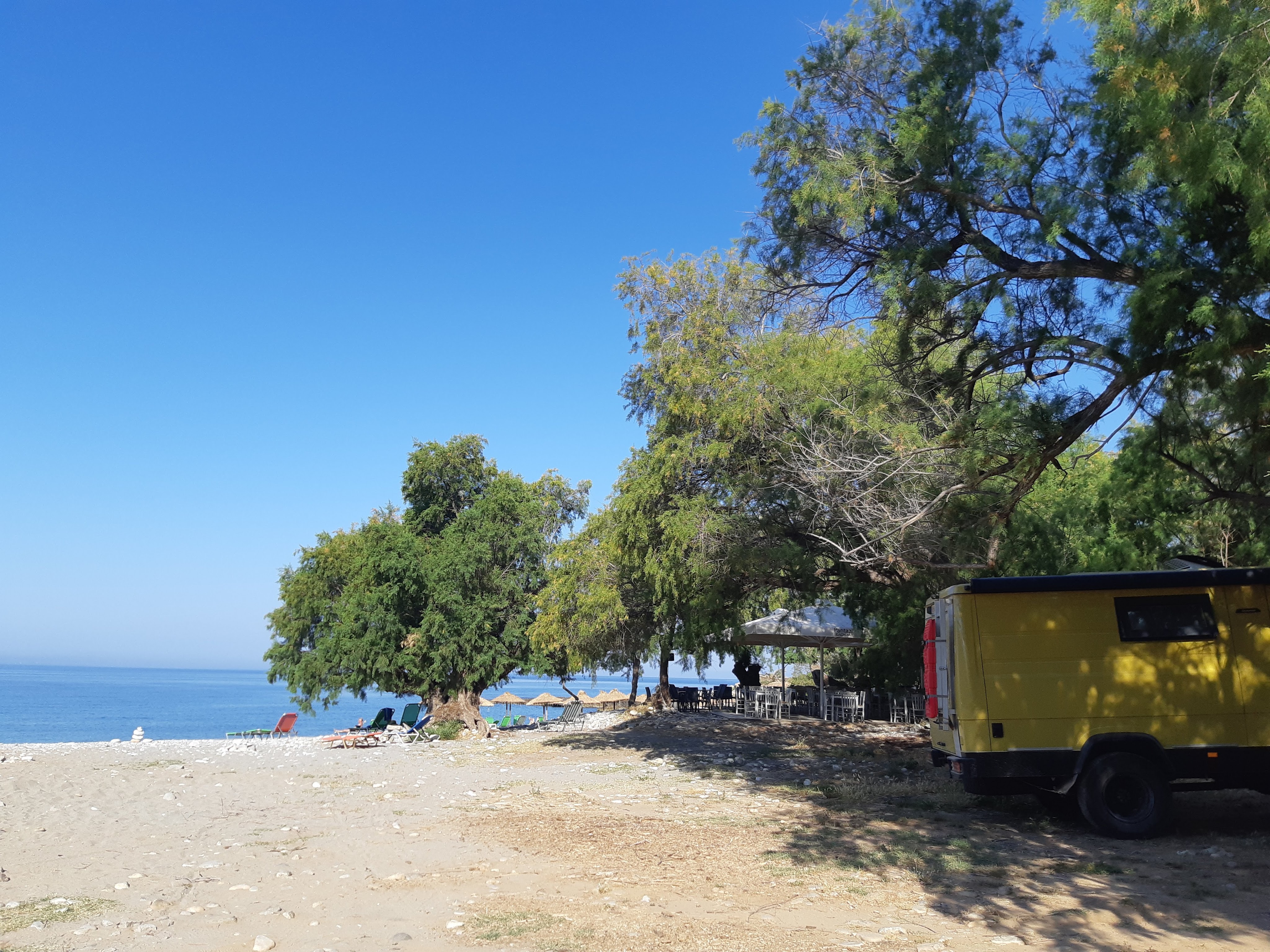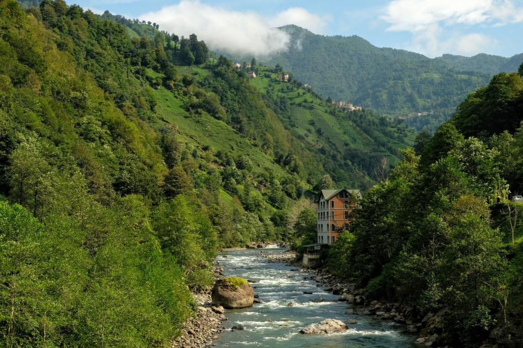 Maandag de 29e hebben we een afspraak bij de Mercedes garage. De vorige keer heeft Georgi ons vortreffelijk geholpen met de vervanging van de luchtverdeler. We hebben hem gevraagd van te voren wat onderdelen te bestellen maar dat is niet helemaal gelukt. Gelukkig weten ze dat we een grote beurt nodig hebben, dus daar starten ze gelijk mee. Helaas kunnen ze verder weinig doen. Als we vertrekken om 12 uur, komt Georgi aan. Hij is duidelijk flink ziek en was naar het ziekenhuis. Nou ja, dan laten we het hier bij. We rijden over de fantastische nieuwe snelweg naar Kutaisi. Die Chinezen hebben hard gewerkt hier aan flink wat tunnels en bruggen. Jammer dat ze nog geen rustplaatsen hebben gemaakt, voor de lunch moeten we een dorp inrijden. We hebben bedacht om weer bij Itara Camp te gaan staan. In 2022 hebben we daar heerlijk gestaan met Bart en Annelouc in de tuin van de Duitsers Claudia en Christoph. Op de website zie ik dat ze hard gewerkt hebben en er nu een huisje staat en een badkamer en keuken voor gasten. Als we de snelweg verlaten rijden we door het prachtige gebied rond Ozurgeti. Het is tropisch groen begroeid en vochtig warm. We worden hartelijk ontvangen. ’s Avonds komt er zowaar een MAN truck bij. De volgende dag regent het helaas de hele dag. Ik boek een vliegticket van Trabzon naar huis en een ferry-ticket voor Joost van Griekendland naar Ancone, Italie. ’s Avonds borrelen we gezellig met Klaus en zijn vrouw en een ander stel dat vandaag met een camper is aangekomen. Het is een ratjetoe van Engels en Duits maar zeker gezellig. In de morgen schijnt de zon, poets ik wat en we maken een wandeling. ’s Avonds is het weer gezellig in de gastenkeuken. En dan is het tijd om richting Turkije te gaan. We vinden het beide een raar idee om uit elkaar te gaan na 6 maanden, maar we zijn het eens dat het goed is zo. We maken nog een tussenstop aan het strand van Gonio, vlak onder Batumi. We maken een wandeling en zien langzaam de zon in de zee zakken onder het genot van een gebraden kippetje met gebakken aardappeltjes en aubergine rolletjes met walnoten die we vanochtend gescoord hebben. Vrijdag 3 oktober rijden we de grens met Turkije over. Ook hier wil ik van mijn Georgische Lari’s af. Een jongeman wil ze eigenlijk niet aannemen zonder er iets voor terug te geven. Hij neemt ze toch aan en als ik Turkse Lira’s sta te pinnen geeft hij mij een volle hand met snoepjes. Dat voelt blijkbaar toch beter. We rijden langs te Turkse kust, kopen bij een postkantoor een tolticket en parkeren op de luchthaven van Trabzon. Het parkeerterrein is flink vol maar ze doen hun best een plekje voor ons te vinden. Na een broodje nemen we een taxi de stad in. Trabzon is een heerlijke stad met veel marktjes en winkeltjes en het is prima weer. We lopen lekker rond en zoeken nog wat cadeautjes. Het kost wat moeite een tentje te vinden waar we een biertje kunnen drinken in deze islamitische stad. Er zitten veel Russen en de uitbaatster spreekt dan ook vloeiend Russisch. We eindigen in een traditioneel restaurantje en laten ons weer terugrijden naar de Chef.