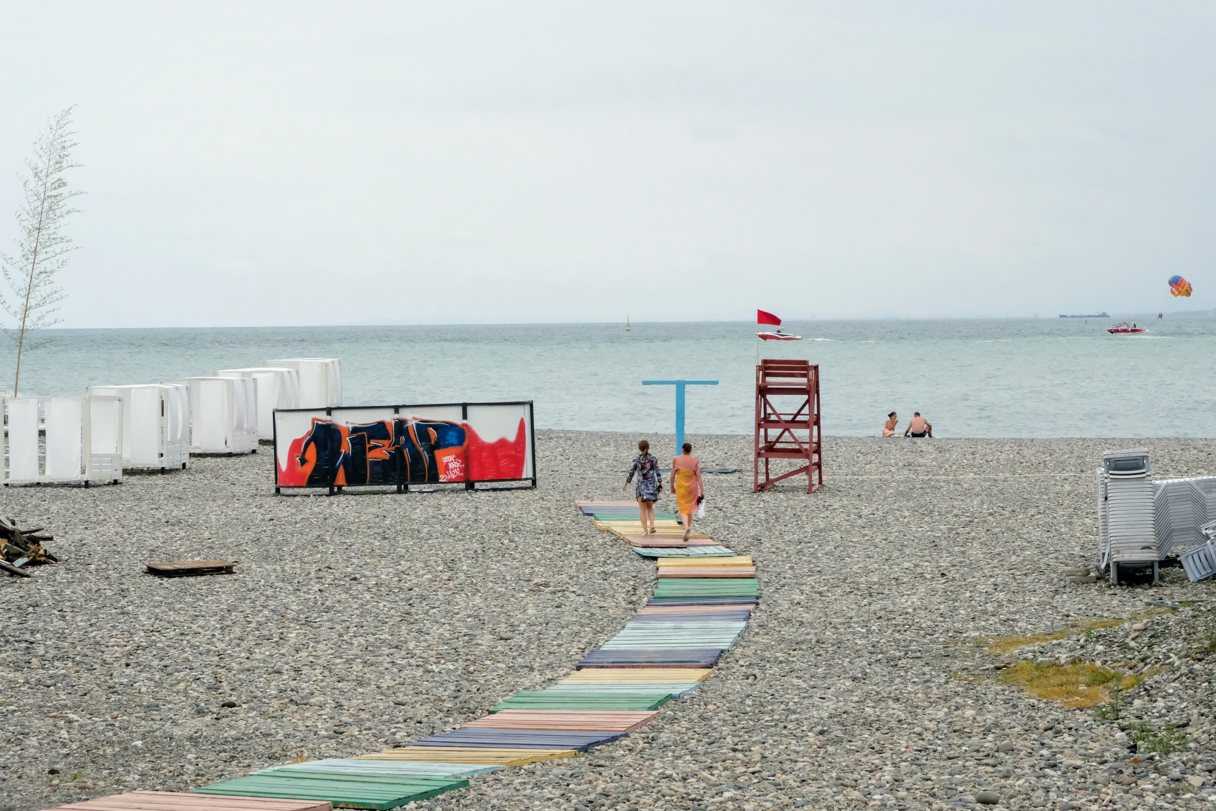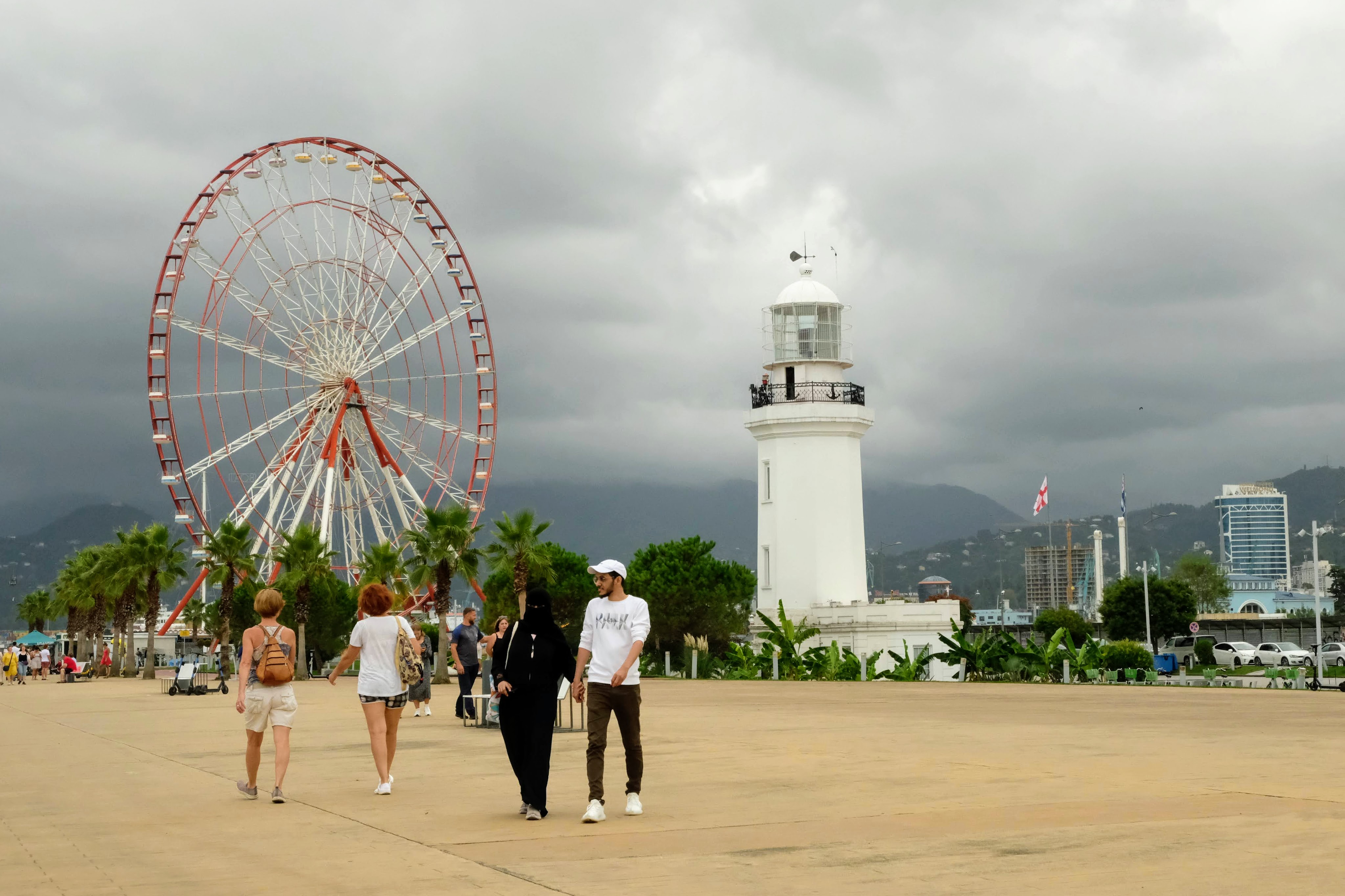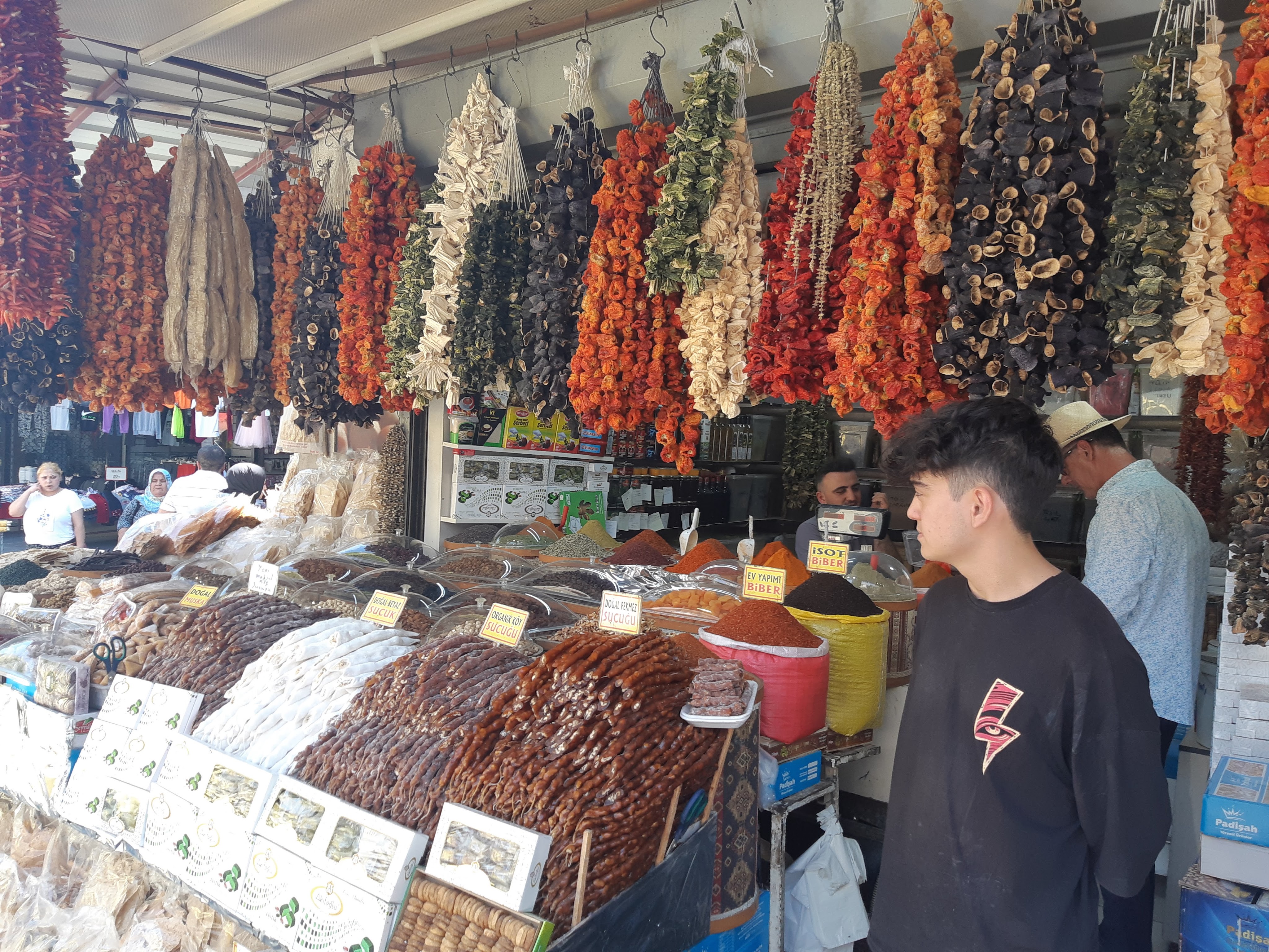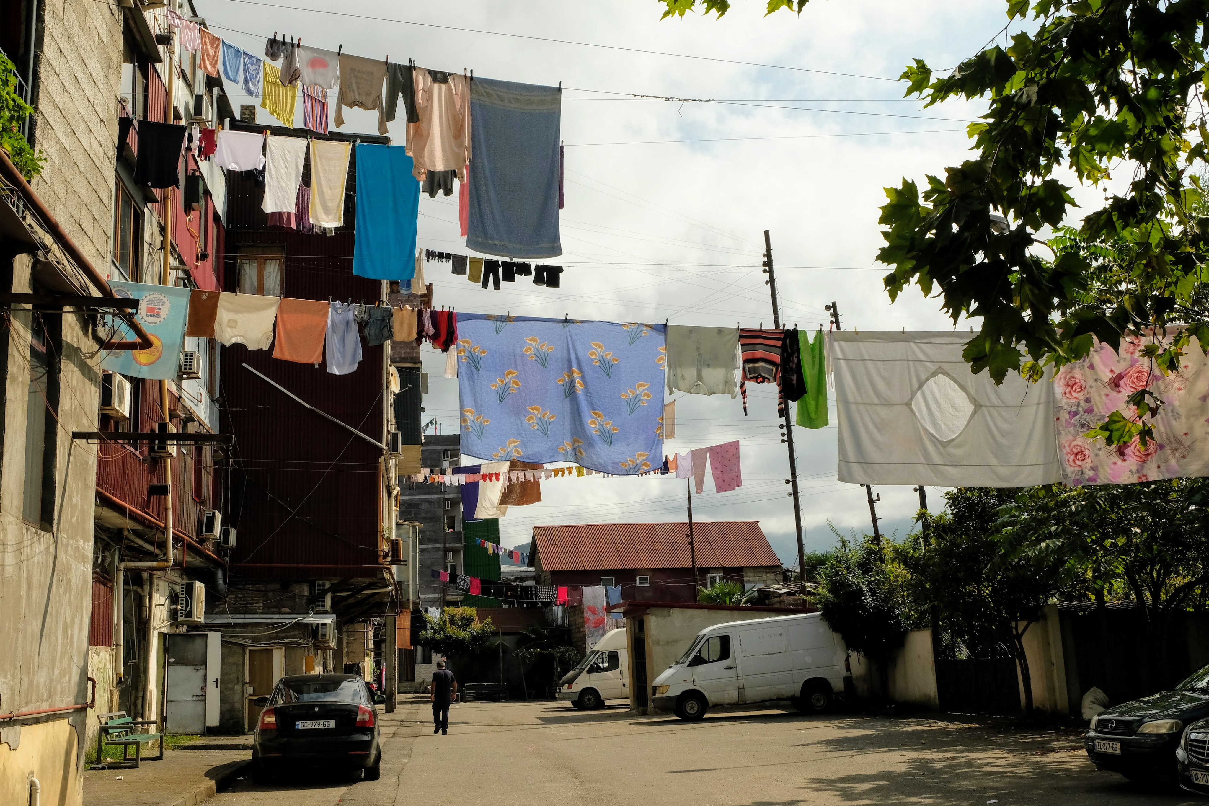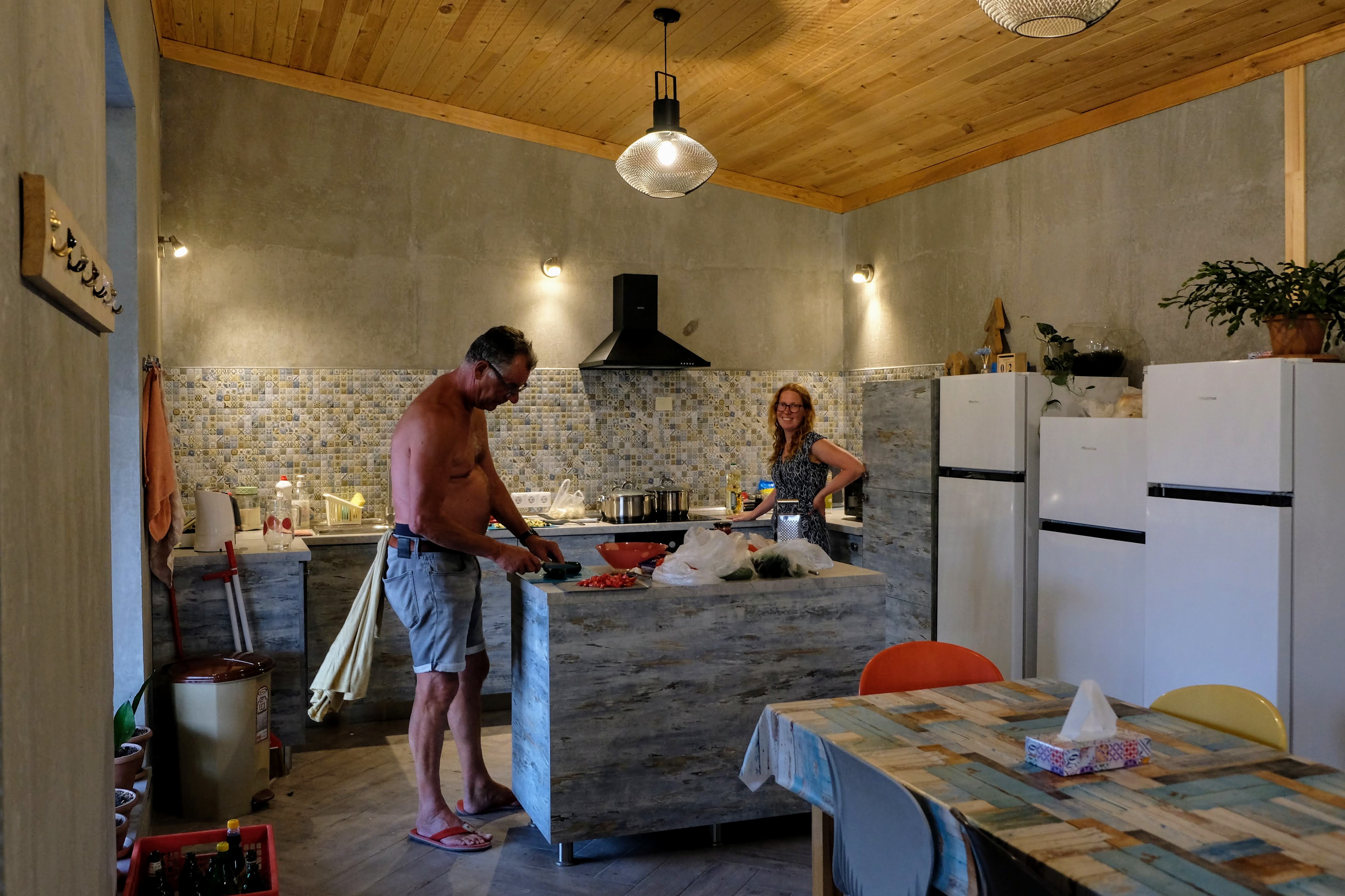 Maandag de 29e hebben we een afspraak bij de Mercedes garage. De vorige keer heeft Georgi ons vortreffelijk geholpen met de vervanging van de luchtverdeler. We hebben hem gevraagd van te voren wat onderdelen te bestellen maar dat is niet helemaal gelukt. Gelukkig weten ze dat we een grote beurt nodig hebben, dus daar starten ze gelijk mee. Helaas kunnen ze verder weinig doen. Als we vertrekken om 12 uur, komt Georgi aan. Hij is duidelijk flink ziek en was naar het ziekenhuis. Nou ja, dan laten we het hier bij. We rijden over de fantastische nieuwe snelweg naar Kutaisi. Die Chinezen hebben hard gewerkt hier aan flink wat tunnels en bruggen. Jammer dat ze nog geen rustplaatsen hebben gemaakt, voor de lunch moeten we een dorp inrijden. We hebben bedacht om weer bij Itara Camp te gaan staan. In 2022 hebben we daar heerlijk gestaan met Bart en Annelouc in de tuin van de Duitsers Claudia en Christoph. Op de website zie ik dat ze hard gewerkt hebben en er nu een huisje staat en een badkamer en keuken voor gasten. Als we de snelweg verlaten rijden we door het prachtige gebied rond Ozurgeti. Het is tropisch groen begroeid en vochtig warm. We worden hartelijk ontvangen. ’s Avonds komt er zowaar een MAN truck bij. De volgende dag regent het helaas de hele dag. Ik boek een vliegticket van Trabzon naar huis en een ferry-ticket voor Joost van Griekendland naar Ancone, Italie. ’s Avonds borrelen we gezellig met Klaus en zijn vrouw en een ander stel dat vandaag met een camper is aangekomen. Het is een ratjetoe van Engels en Duits maar zeker gezellig. In de morgen schijnt de zon, poets ik wat en we maken een wandeling. ’s Avonds is het weer gezellig in de gastenkeuken. En dan is het tijd om richting Turkije te gaan. We vinden het beide een raar idee om uit elkaar te gaan na 6 maanden, maar we zijn het eens dat het goed is zo. We maken nog een tussenstop aan het strand van Gonio, vlak onder Batumi. We maken een wandeling en zien langzaam de zon in de zee zakken onder het genot van een gebraden kippetje met gebakken aardappeltjes en aubergine rolletjes met walnoten die we vanochtend gescoord hebben. Vrijdag 3 oktober rijden we de grens met Turkije over. Ook hier wil ik van mijn Georgische Lari’s af. Een jongeman wil ze eigenlijk niet aannemen zonder er iets voor terug te geven. Hij neemt ze toch aan en als ik Turkse Lira’s sta te pinnen geeft hij mij een volle hand met snoepjes. Dat voelt blijkbaar toch beter. We rijden langs te Turkse kust, kopen bij een postkantoor een tolticket en parkeren op de luchthaven van Trabzon. Het parkeerterrein is flink vol maar ze doen hun best een plekje voor ons te vinden. Na een broodje nemen we een taxi de stad in. Trabzon is een heerlijke stad met veel marktjes en winkeltjes en het is prima weer. We lopen lekker rond en zoeken nog wat cadeautjes. Het kost wat moeite een tentje te vinden waar we een biertje kunnen drinken in deze islamitische stad. Er zitten veel Russen en de uitbaatster spreekt dan ook vloeiend Russisch. We eindigen in een traditioneel restaurantje en laten ons weer terugrijden naar de Chef.