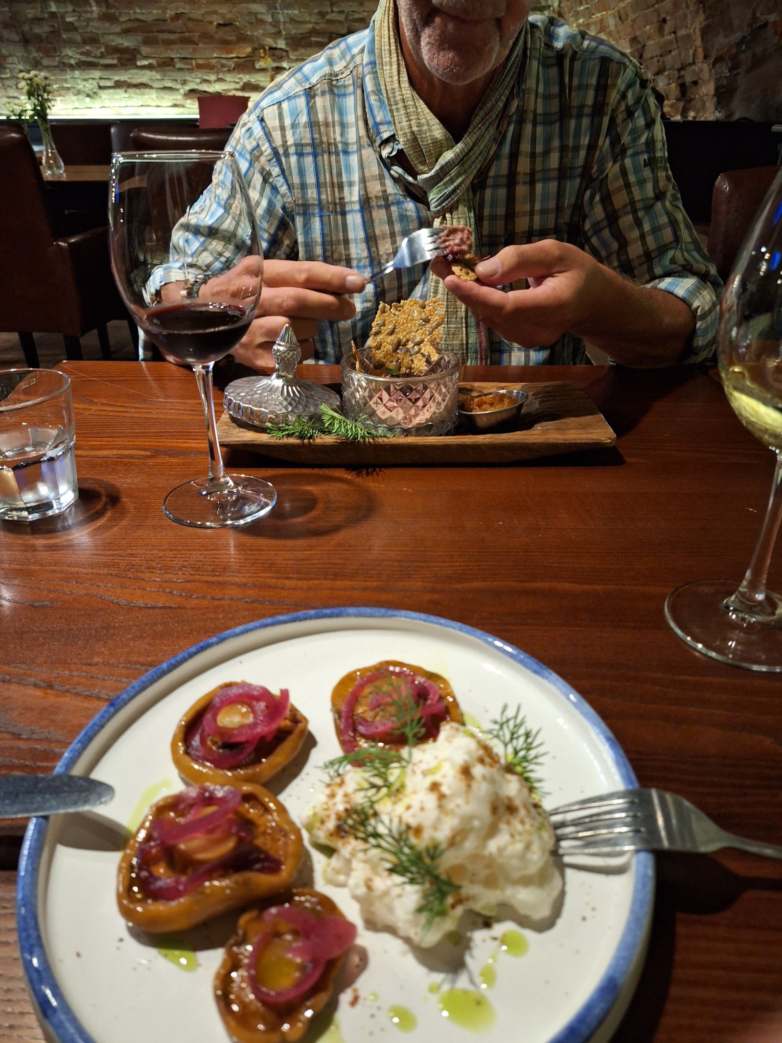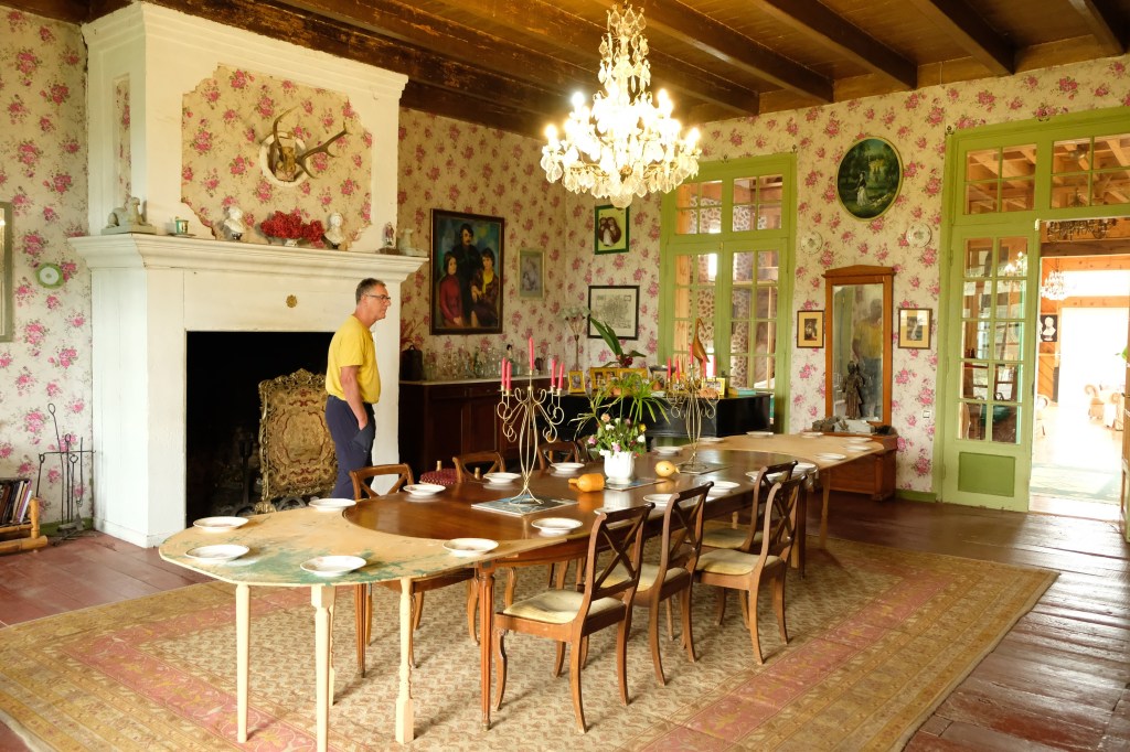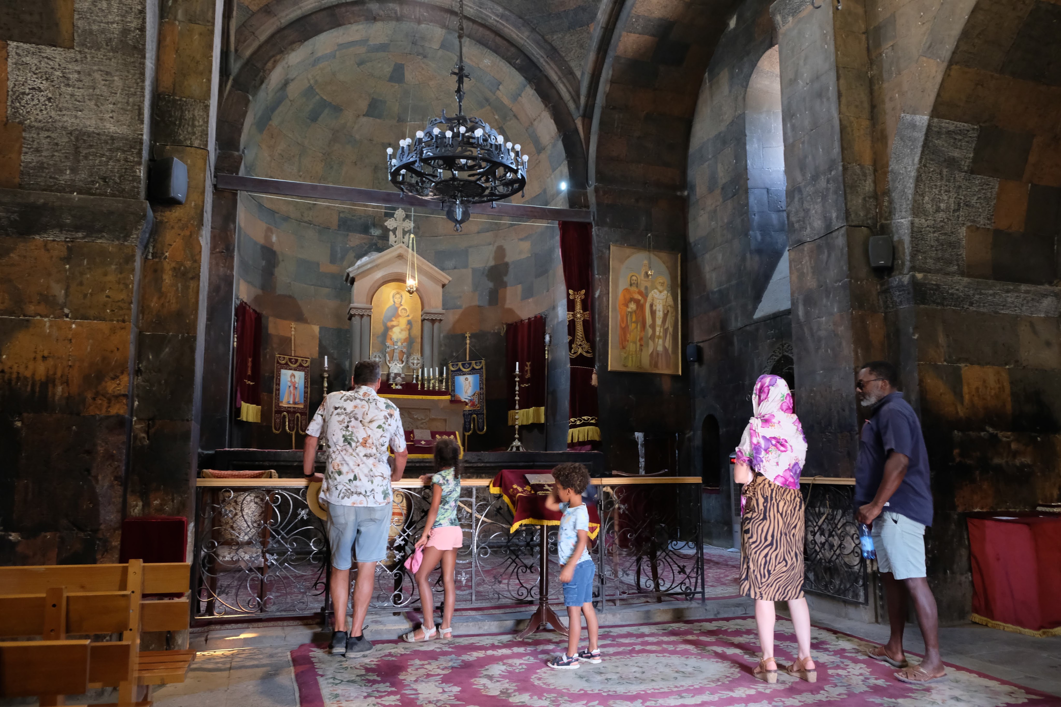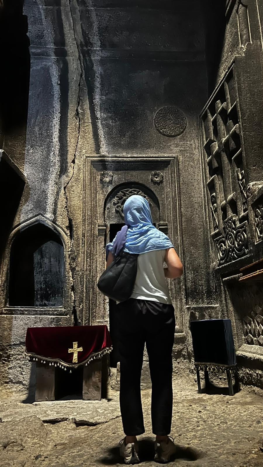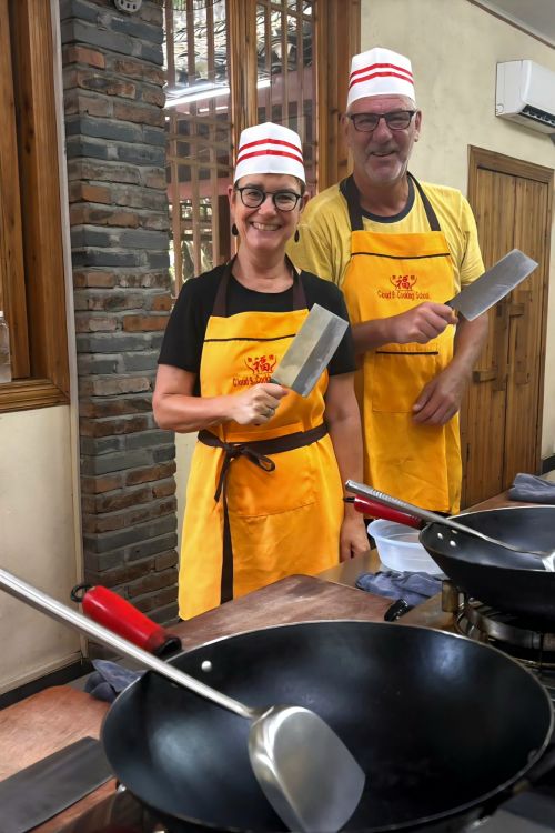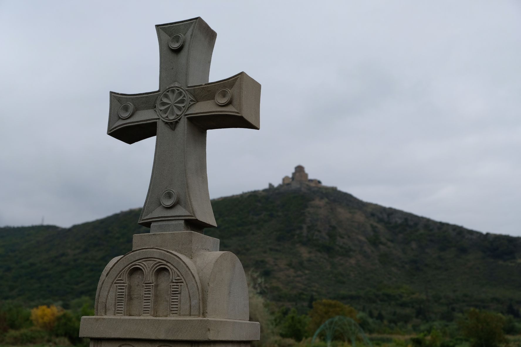 Maar first things first, de was! We slapen uit en de camper bewoners zijn al met een gids naar de Sameba kerk op de top van de berg geweest, als we aan het ontbijt zitten. In Kazbegi gaan we ergens koffie drinken en wachten tot de wasserette opengaat. Als we de was wegbrengen, blijkt dat we die pas vanavond kunnen ophalen. Jammer! Vooral jammer omdat een dichte koude mist is komen opzetten, dus ergens gaan wandelen is ook geen lonkend perspectief. Ik weet nog van andere reizigers dat er een heerlijk hotel is waar je kunt rondhangen. In Hotel Rooms gaan we dus lekker lunchen en zoeken een heerlijk plekje waar we met een flink stuk taart (te groot) en wat drankjes de middag doorbrengen. Omdat we onszelf nog wat willen verwennen, boek ik een kamer bij wijnmaker Schuchmann in Telavi. Daar waren we in 2016 ook en die ervaring is blijven hangen. Buiten is echt niets te zien van het befaamde uitzicht op het Sameba klooster. Om acht uur halen we de was op bij de dames en rijden in het donker maar weer terug naar de parkeerplaats om te overnachten. We staan dit keer alleen. De volgende ochtend staan we vroeg op en in dichte mist rijden we de 2400 meter Jvari pas over (voor de 8e keer). De weg is beter geworden, maar de tunnel die de Chinezen al jaran aan het maken zijn, is nog niet af. Na de pas rijden we de prachtige route door de heuvels en bossen richting Telavi. Helaas zien we weinig door de dichte mist. Om 13 uur arriveren we bij de wijnmaker. Aangezien onze kamer nog niet klaar is, kunnen we gebruik maken van de sauna. Heerlijk! Joost neemt ook nog een massage. Ik denk alvast een douche op de kamer te nemen, maar de kamer is nog steeds niet klaar. Blijkbaar is het erg druk. Pas al Joost terugkomt, zijn ze het bed aan het dekken. Joost haalt twee glazen wijn en dan effe niks. Om 19 uur schuiven we aan voor een heerlijk diner met vijf verschillende wijnen. De vrouwelijke sommelier spreekt voortreffelijk Duits en Engels en neemt alle tijd om ons vanalles te vertellen. Wat een verwennerij. De volgende morgen slapen we lekker uit en genieten van een lekker ontbijtje. Dan kopen we nog wat wijn in de winkel. Als ik een foto laat zien van ons bezoek uit 2016 dan blijkt de manager ons destijds te hebben rondgeleid! Dat is grappig. Hij vertelt dat er de laatste tijd erg veel Nederlanders langskomen. We nemen afscheid en rijden de weg terug naar Mtskheta. We zijn daar op de heenweg ook geweest maar hebben de kathedraal (werelderfgoed) toen niet bezocht. We parkeren bij het politiebureau en zien direct de MAN vrachtwagen staan van Duitsers die we in Atyrau zijn tegengekomen. We maken een praatje met een Francaise in een busje die met 3 honden op pad is. We lopen een rondje en bezoeken de indrukwekkende kathedraal. We nemen een glas wijn bij een wijnhandel en met ondergaande zon eten we nog een prima pizza op het terras.