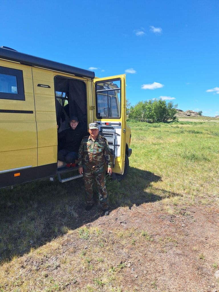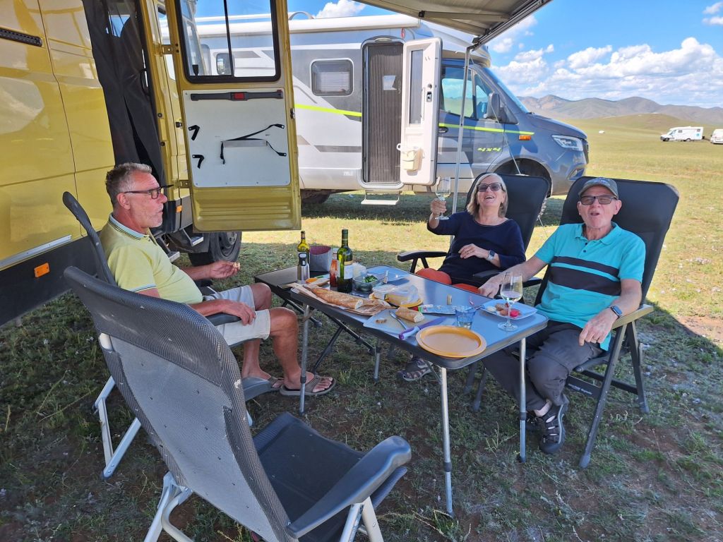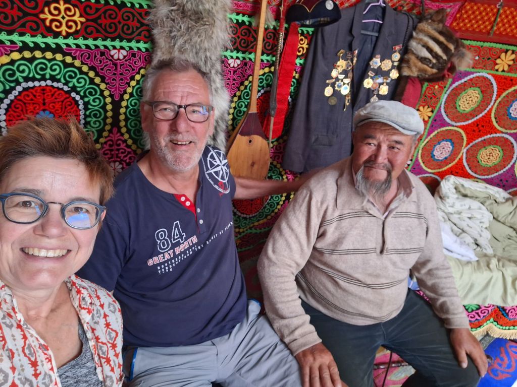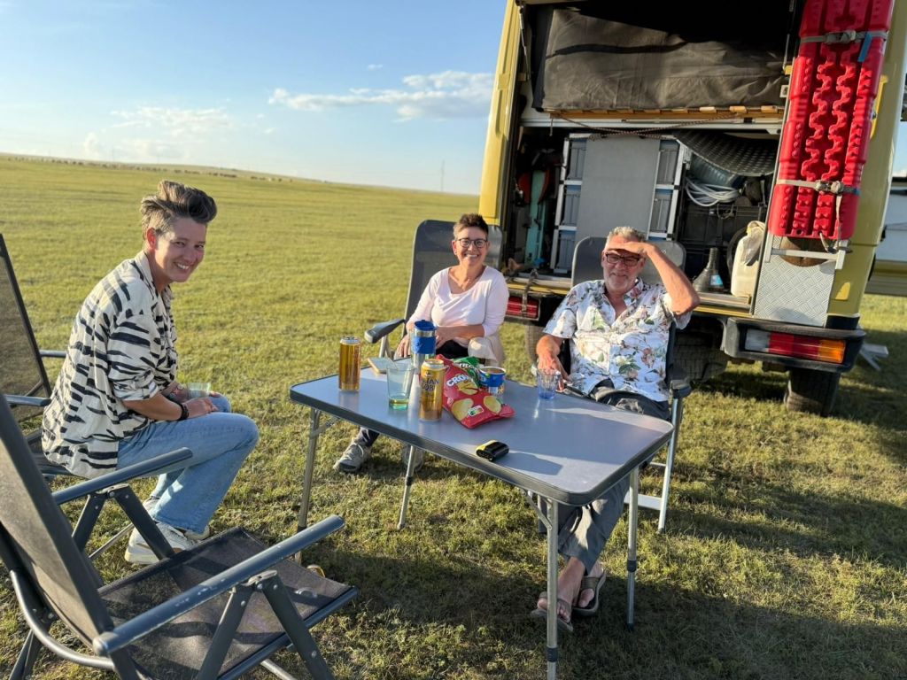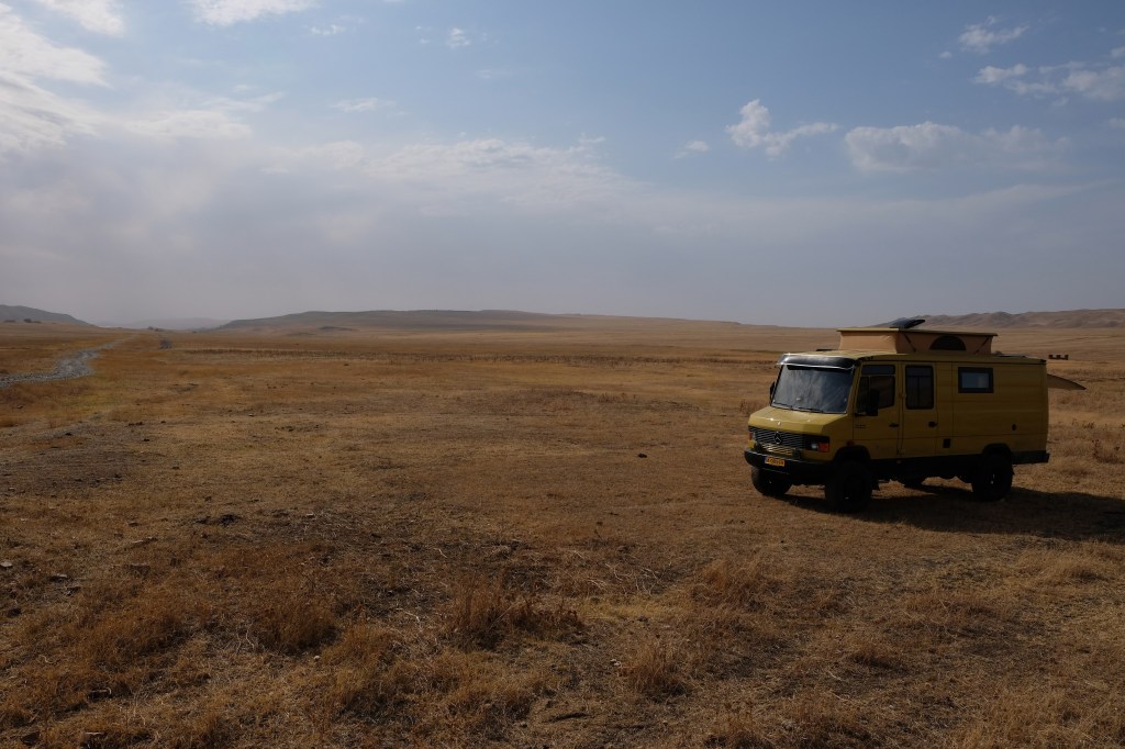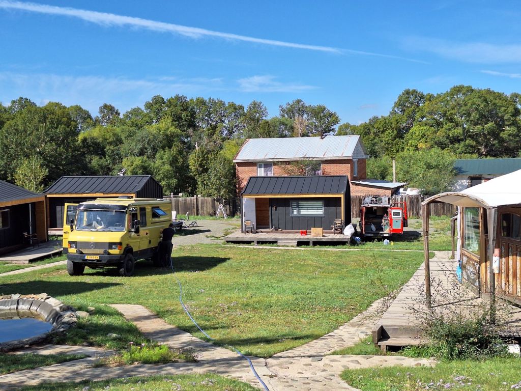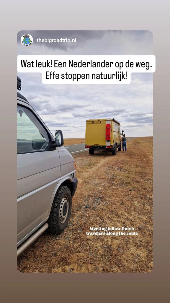 Na de grensovergang Rusland-Kazachstan op 14 september vinden we een plekje op een verlaten industrieterreintje bij een dorp. Het is druilerig en fris. De volgende dag tovert gelijk een glimlach op ons gezicht. Mensen zwaaien vriendelijk, de diesel is 50 cent en ons wordt koffie aangeboden. Het is goed om weer in Kazachstan te zijn! We rijden in Petropavl, na bezoek aan een supermarkt, naar een truckservice. De ontvangst is prima door een collega die Duits spreekt en ze gaan direct aan de slag om ook de andere rubbers te vervangen van de voorste bladveren. Ondertussen eten wij een lekker bordje bij de Stolavaya (kantine) op het terrein en als we terugkomen zijn ze al klaar. We vinden een plekje aan een meertje waar we 5G internet hebben zodat we de jarige Benjamin kunnen feliciteren. We hebben een lange en saaie weg te gaan om vanuit Siberië weer terug te rijden naar Georgië, zo’n 3100 km. De volgende dag rijden we langs Qastanay en vinden een plek bij een stadstrandje bij Livakovsk. De zon schijnt, maar het is ’s avonds snel fris. We rijden door de eindeloze steppe verder en slapen weer op een plek tussen wat bomen, zodat we lekker kunnen douchen. De weg is wel merkbaar beter dan in 2019. Ook het berucht slechte stuk tussen Qarabutaq en Aktobe is zowaar opgeknapt. We parkeren echt middenin het centrum van de grote stad Aktobe vlakbij een waterpretpark en lopen langs de boulevard naar Revolver, waar we in mei zo heerlijk hebben gegeten met Saskia en Martijn. De sfeer in de stad en het weer zijn aangenaam en overal branden lichtjes. We slapen prima. De volgende dag maken we een rondje van 14 km door de stad. We drinken lekkere koffie, bekijken een plaatselijk museum en lopen naar het standbeeld van een beroemde vrouwelijke scherpschutter. We lunchen lekker bij een Italiaan en bezoeken daarna het kleine museum over de vrouwelijke scherpschutter en lokale held, Aliya Moldagulova. Al vroeg verloor ze haar ouders en op jonge leeftijd meldde zij zich aan bij een school voor vrouwelijke scherpschutters. Vrouwen bleken dat vak goed te verstaan. Naar verluidt heeft ze 78 Duitsers doodgeschoten en dat is knap als je al op je 18e zelf het leven laat op het slagveld. Hoe dan ook, een bijzonder verhaal. Daarna gaan we nog even bij een grote mall langs, maar daar vinden we niets aan. Als we relaxen in de Chef met een glas wijn en een kaasje komt er nog een man langs die zijn zoon wil aansporen om met ons te praten en in de Chef te kijken. Daar heeft de tiener overduidelijk geen zin in! Ook de volgende morgen krijgen we bezoek. Het duurt even maar dan is duidelijk dat we met een vriendelijke christelijke missionaris van doen hebben. Of we de bijbel lezen en bij ons hebben? Of we naar de kerk gaan? Hij neemt er genoegen mee dat we volgens Christelijke waarden zijn opgevoed en daar naar leven. Goed bedacht, hè?