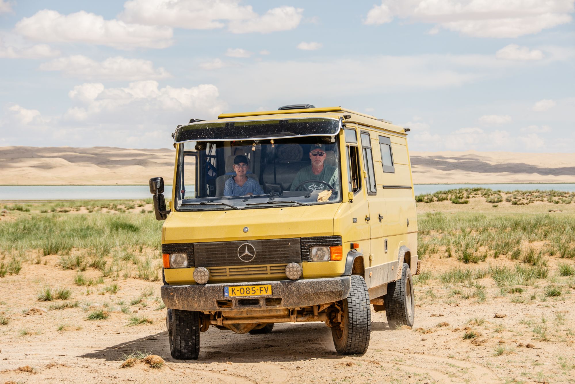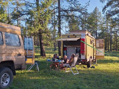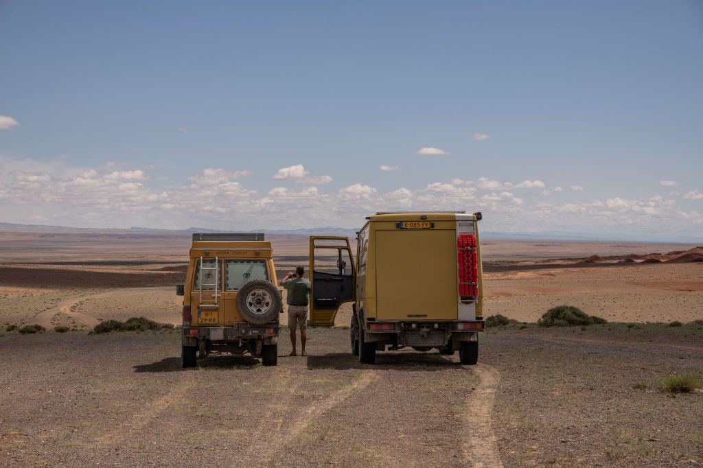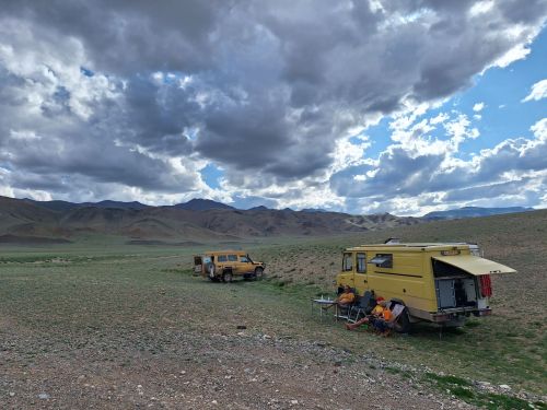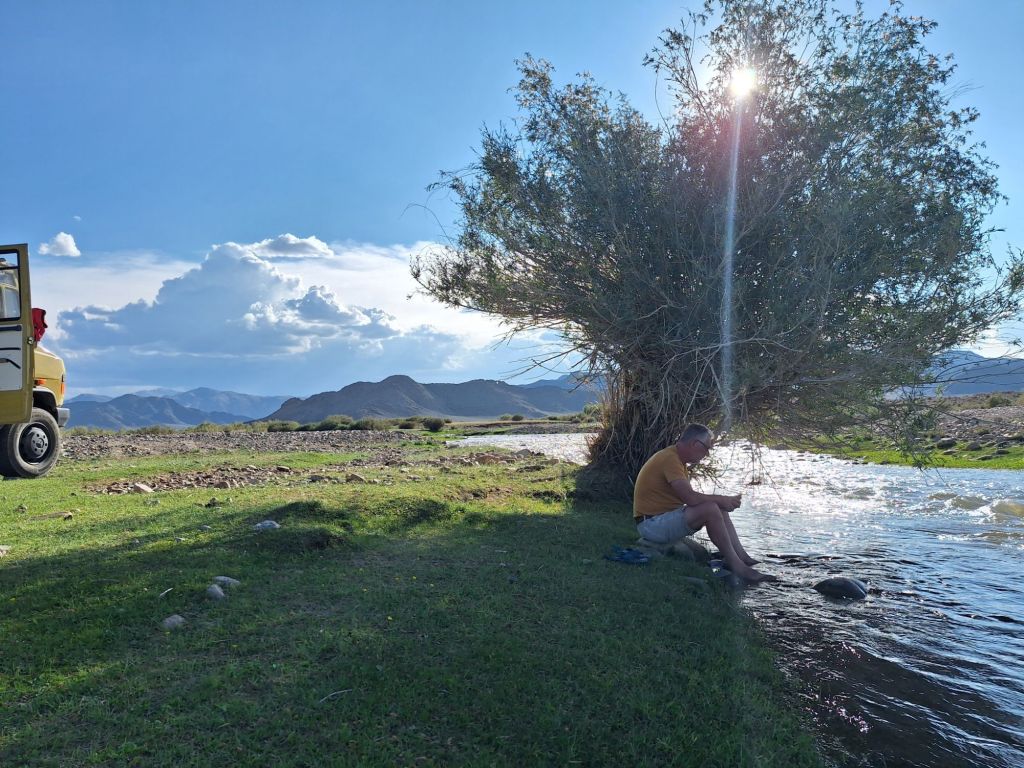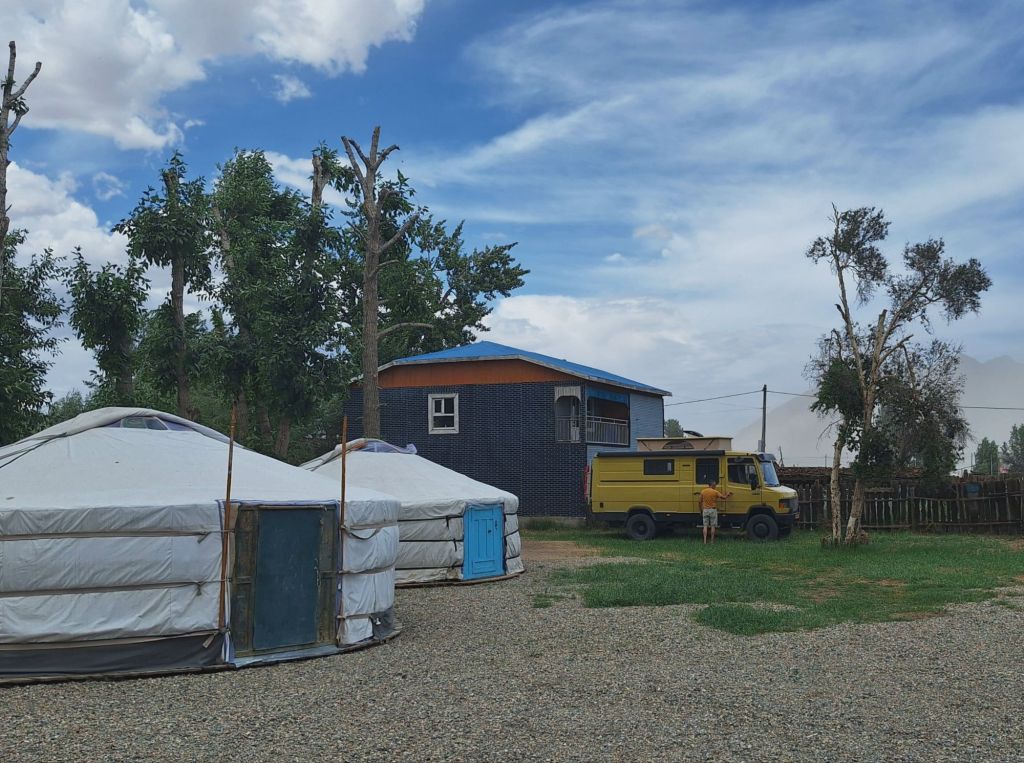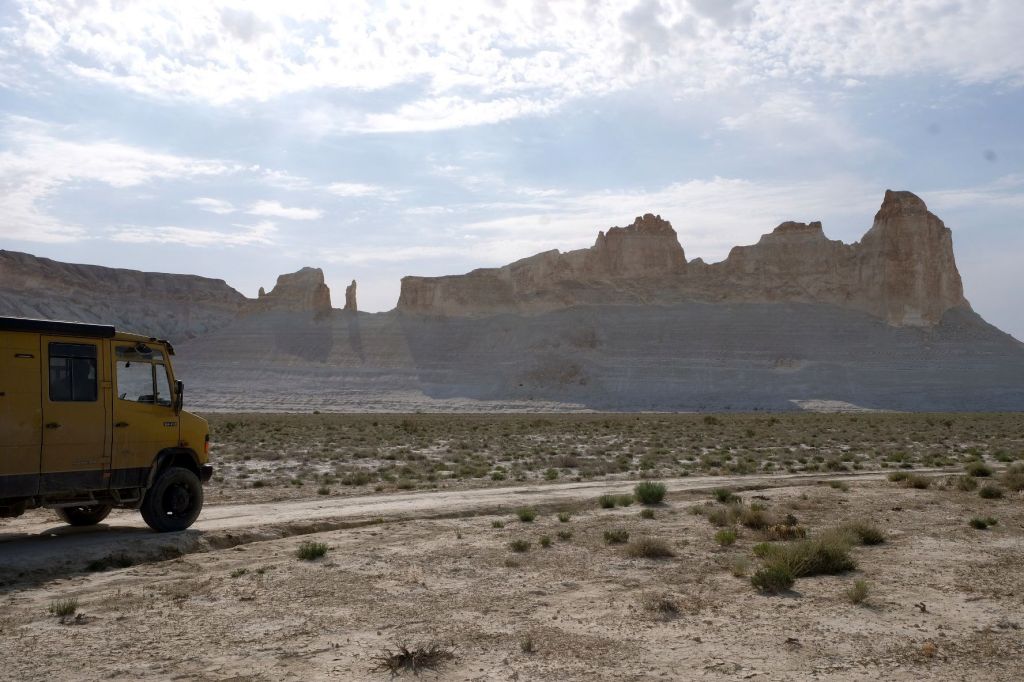 Na de grensovergang Rusland-Kazachstan op 14 september vinden we een plekje op een verlaten industrieterreintje bij een dorp. Het is druilerig en fris. De volgende dag tovert gelijk een glimlach op ons gezicht. Mensen zwaaien vriendelijk, de diesel is 50 cent en ons wordt koffie aangeboden. Het is goed om weer in Kazachstan te zijn! We rijden in Petropavl, na bezoek aan een supermarkt, naar een truckservice. De ontvangst is prima door een collega die Duits spreekt en ze gaan direct aan de slag om ook de andere rubbers te vervangen van de voorste bladveren. Ondertussen eten wij een lekker bordje bij de Stolavaya (kantine) op het terrein en als we terugkomen zijn ze al klaar. We vinden een plekje aan een meertje waar we 5G internet hebben zodat we de jarige Benjamin kunnen feliciteren. We hebben een lange en saaie weg te gaan om vanuit Siberië weer terug te rijden naar Georgië, zo’n 3100 km. De volgende dag rijden we langs Qastanay en vinden een plek bij een stadstrandje bij Livakovsk. De zon schijnt, maar het is ’s avonds snel fris. We rijden door de eindeloze steppe verder en slapen weer op een plek tussen wat bomen, zodat we lekker kunnen douchen. De weg is wel merkbaar beter dan in 2019. Ook het berucht slechte stuk tussen Qarabutaq en Aktobe is zowaar opgeknapt. We parkeren echt middenin het centrum van de grote stad Aktobe vlakbij een waterpretpark en lopen langs de boulevard naar Revolver, waar we in mei zo heerlijk hebben gegeten met Saskia en Martijn. De sfeer in de stad en het weer zijn aangenaam en overal branden lichtjes. We slapen prima. De volgende dag maken we een rondje van 14 km door de stad. We drinken lekkere koffie, bekijken een plaatselijk museum en lopen naar het standbeeld van een beroemde vrouwelijke scherpschutter. We lunchen lekker bij een Italiaan en bezoeken daarna het kleine museum over de vrouwelijke scherpschutter en lokale held, Aliya Moldagulova. Al vroeg verloor ze haar ouders en op jonge leeftijd meldde zij zich aan bij een school voor vrouwelijke scherpschutters. Vrouwen bleken dat vak goed te verstaan. Naar verluidt heeft ze 78 Duitsers doodgeschoten en dat is knap als je al op je 18e zelf het leven laat op het slagveld. Hoe dan ook, een bijzonder verhaal. Daarna gaan we nog even bij een grote mall langs, maar daar vinden we niets aan. Als we relaxen in de Chef met een glas wijn en een kaasje komt er nog een man langs die zijn zoon wil aansporen om met ons te praten en in de Chef te kijken. Daar heeft de tiener overduidelijk geen zin in! Ook de volgende morgen krijgen we bezoek. Het duurt even maar dan is duidelijk dat we met een vriendelijke christelijke missionaris van doen hebben. Of we de bijbel lezen en bij ons hebben? Of we naar de kerk gaan? Hij neemt er genoegen mee dat we volgens Christelijke waarden zijn opgevoed en daar naar leven. Goed bedacht, hè?