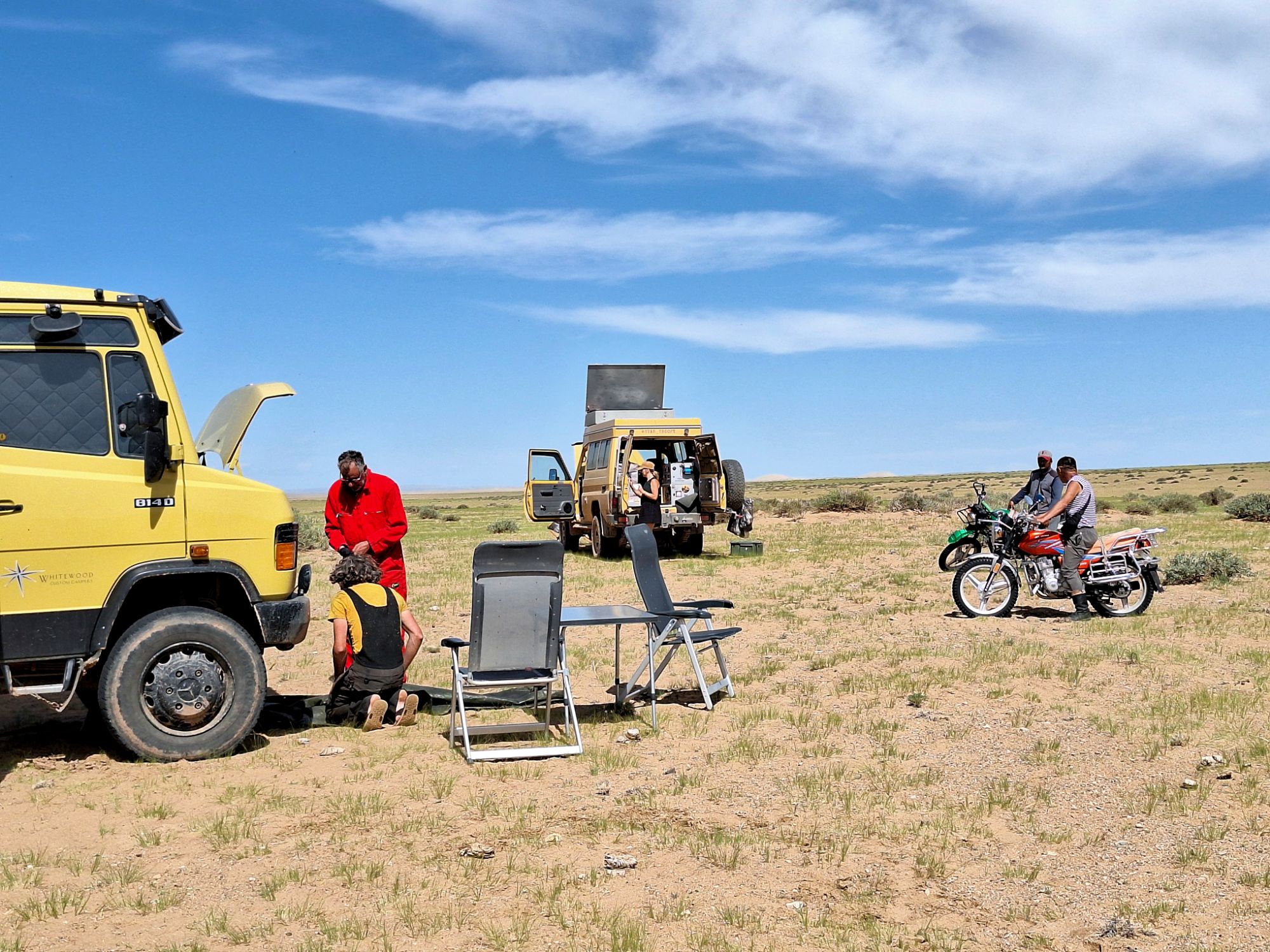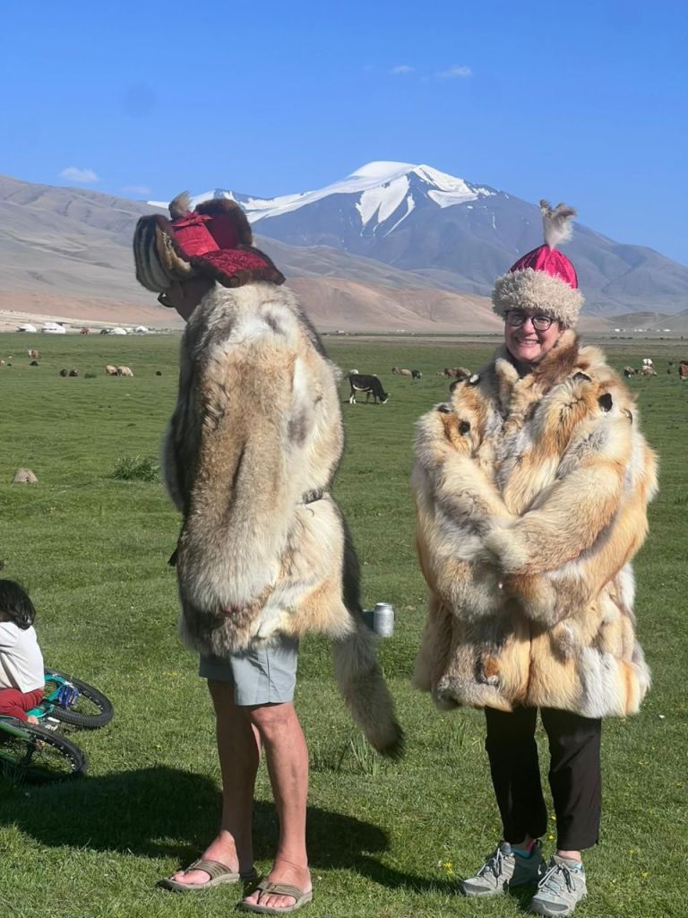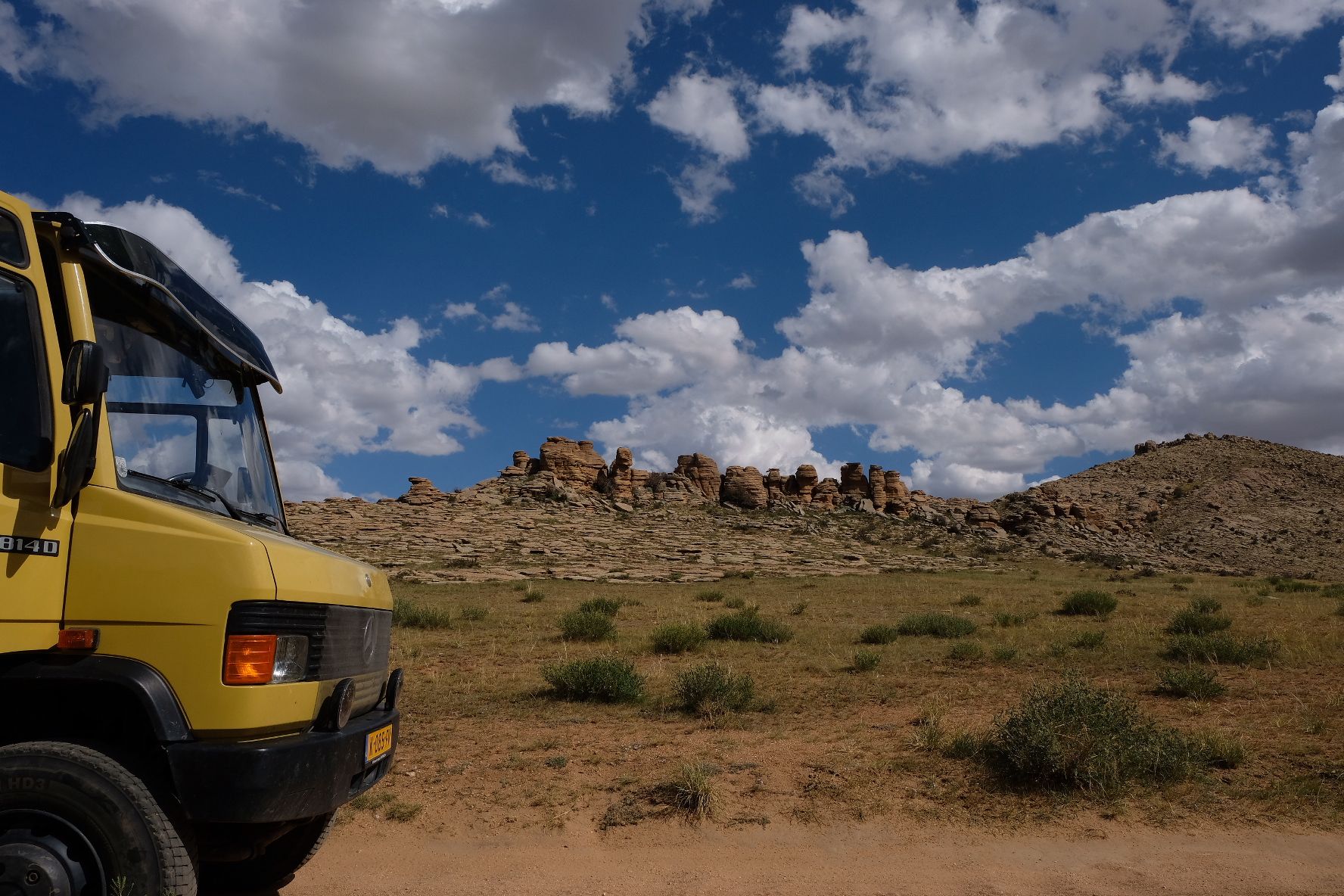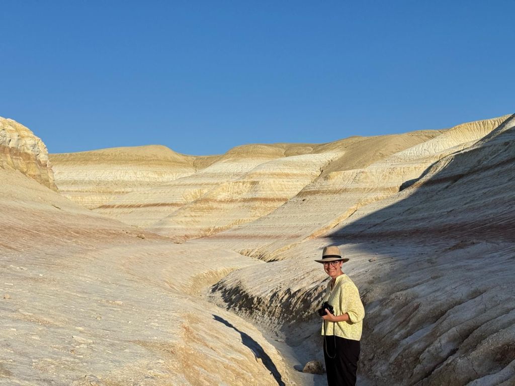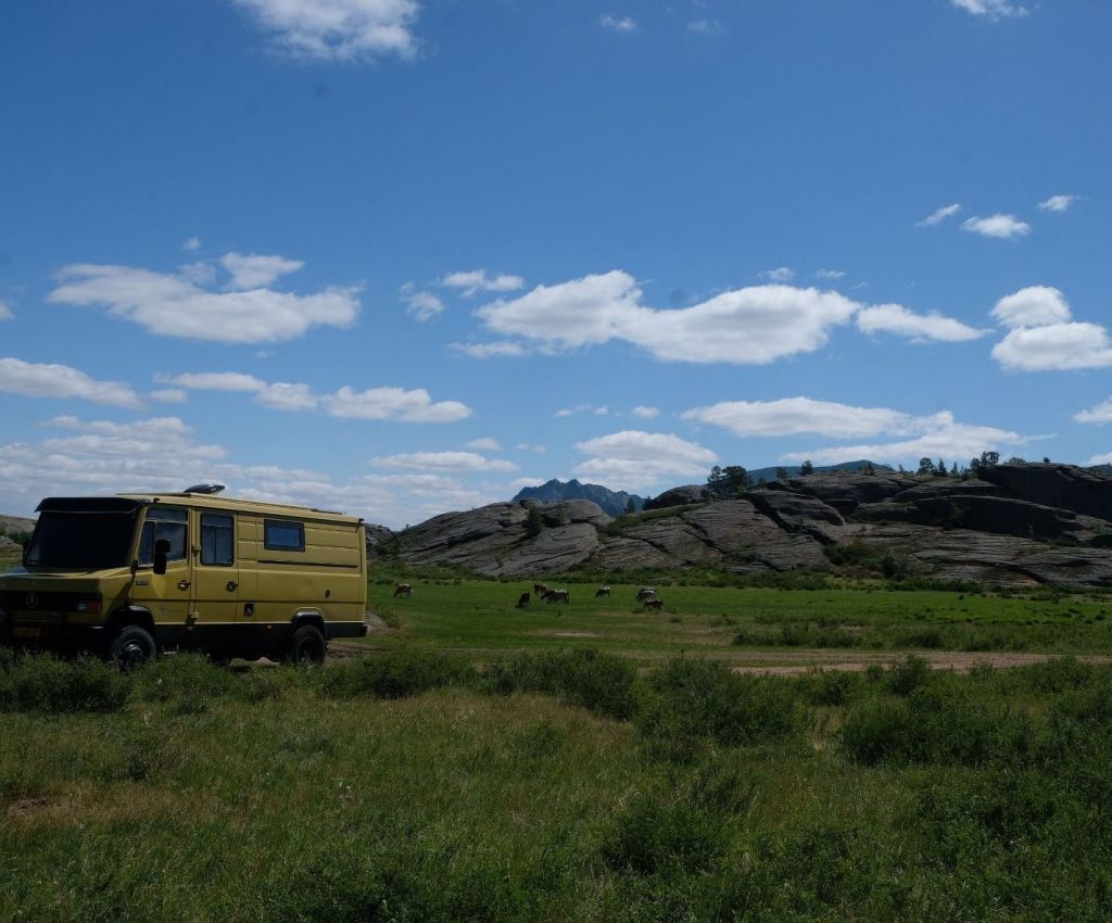 Na de grensovergang Rusland-Kazachstan op 14 september vinden we een plekje op een verlaten industrieterreintje bij een dorp. Het is druilerig en fris. De volgende dag tovert gelijk een glimlach op ons gezicht. Mensen zwaaien vriendelijk, de diesel is 50 cent en ons wordt koffie aangeboden. Het is goed om weer in Kazachstan te zijn! We rijden in Petropavl, na bezoek aan een supermarkt, naar een truckservice. De ontvangst is prima door een collega die Duits spreekt en ze gaan direct aan de slag om ook de andere rubbers te vervangen van de voorste bladveren. Ondertussen eten wij een lekker bordje bij de Stolavaya (kantine) op het terrein en als we terugkomen zijn ze al klaar. We vinden een plekje aan een meertje waar we 5G internet hebben zodat we de jarige Benjamin kunnen feliciteren. We hebben een lange en saaie weg te gaan om vanuit Siberië weer terug te rijden naar Georgië, zo’n 3100 km. De volgende dag rijden we langs Qastanay en vinden een plek bij een stadstrandje bij Livakovsk. De zon schijnt, maar het is ’s avonds snel fris. We rijden door de eindeloze steppe verder en slapen weer op een plek tussen wat bomen, zodat we lekker kunnen douchen. De weg is wel merkbaar beter dan in 2019. Ook het berucht slechte stuk tussen Qarabutaq en Aktobe is zowaar opgeknapt. We parkeren echt middenin het centrum van de grote stad Aktobe vlakbij een waterpretpark en lopen langs de boulevard naar Revolver, waar we in mei zo heerlijk hebben gegeten met Saskia en Martijn. De sfeer in de stad en het weer zijn aangenaam en overal branden lichtjes. We slapen prima. De volgende dag maken we een rondje van 14 km door de stad. We drinken lekkere koffie, bekijken een plaatselijk museum en lopen naar het standbeeld van een beroemde vrouwelijke scherpschutter. We lunchen lekker bij een Italiaan en bezoeken daarna het kleine museum over de vrouwelijke scherpschutter en lokale held, Aliya Moldagulova. Al vroeg verloor ze haar ouders en op jonge leeftijd meldde zij zich aan bij een school voor vrouwelijke scherpschutters. Vrouwen bleken dat vak goed te verstaan. Naar verluidt heeft ze 78 Duitsers doodgeschoten en dat is knap als je al op je 18e zelf het leven laat op het slagveld. Hoe dan ook, een bijzonder verhaal. Daarna gaan we nog even bij een grote mall langs, maar daar vinden we niets aan. Als we relaxen in de Chef met een glas wijn en een kaasje komt er nog een man langs die zijn zoon wil aansporen om met ons te praten en in de Chef te kijken. Daar heeft de tiener overduidelijk geen zin in! Ook de volgende morgen krijgen we bezoek. Het duurt even maar dan is duidelijk dat we met een vriendelijke christelijke missionaris van doen hebben. Of we de bijbel lezen en bij ons hebben? Of we naar de kerk gaan? Hij neemt er genoegen mee dat we volgens Christelijke waarden zijn opgevoed en daar naar leven. Goed bedacht, hè?
