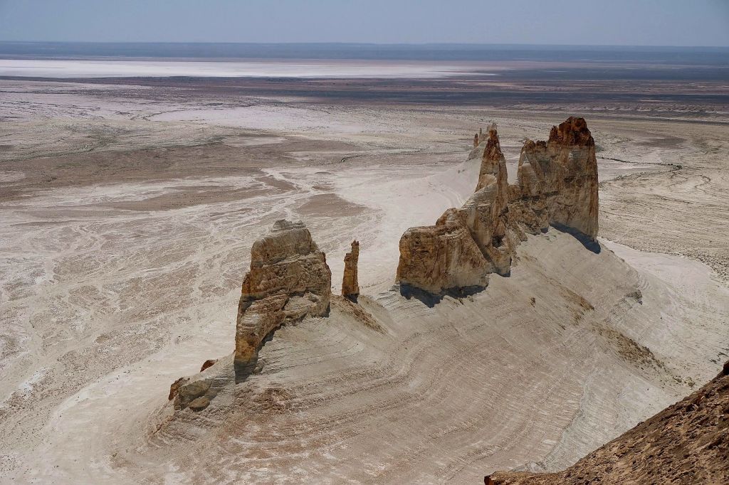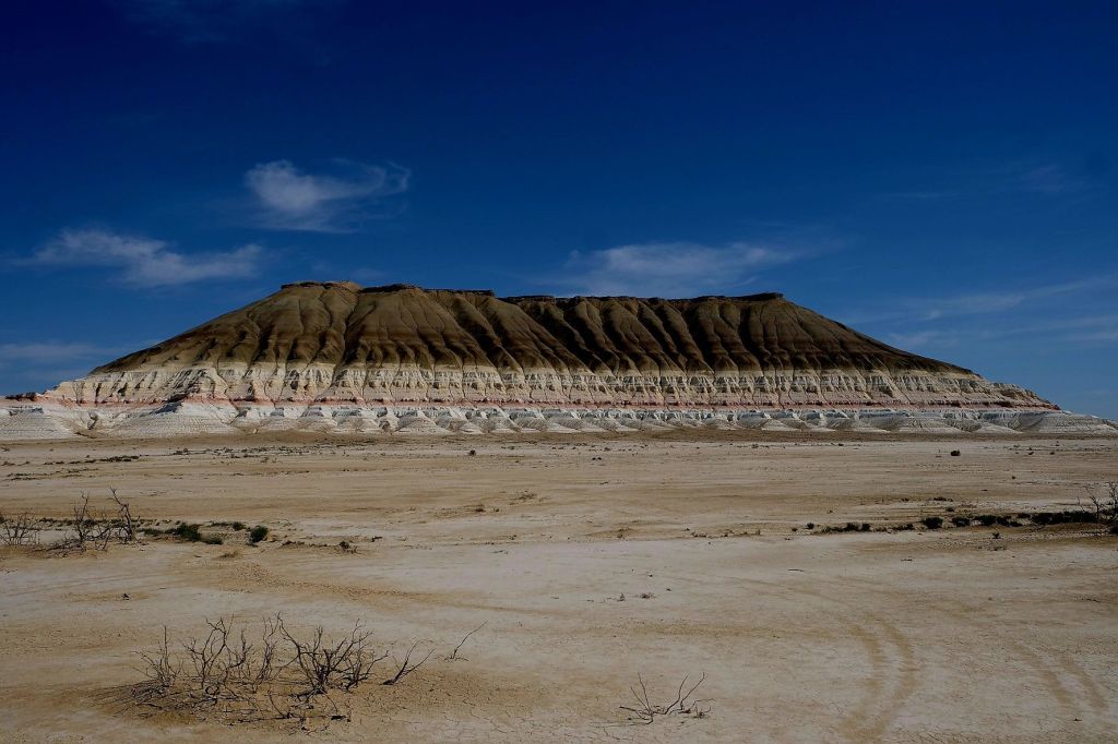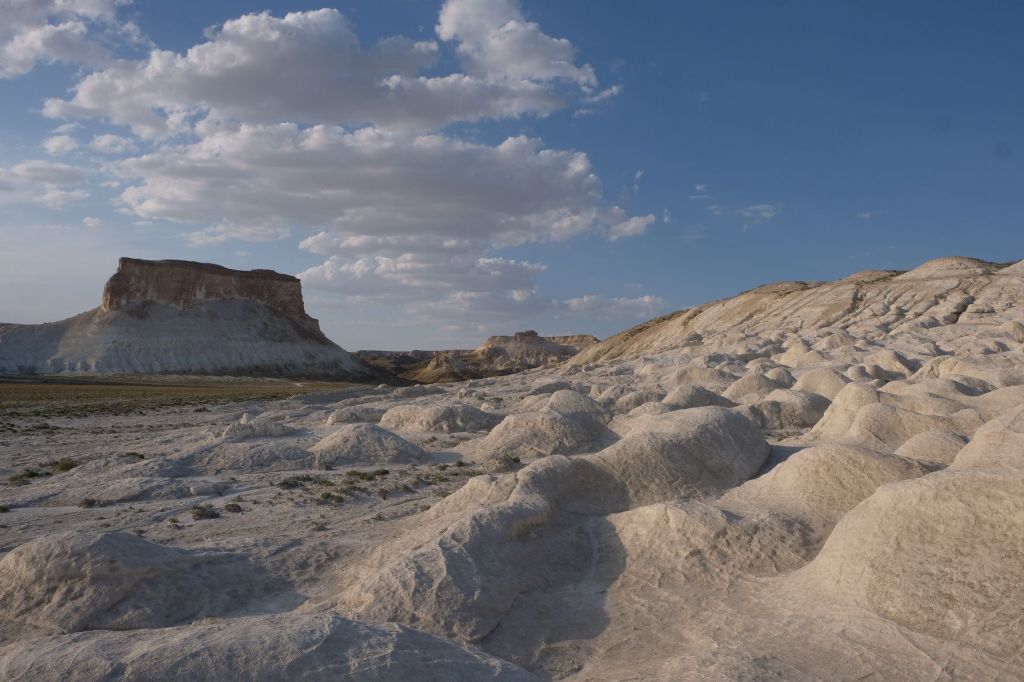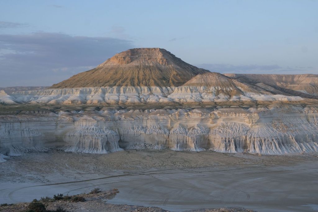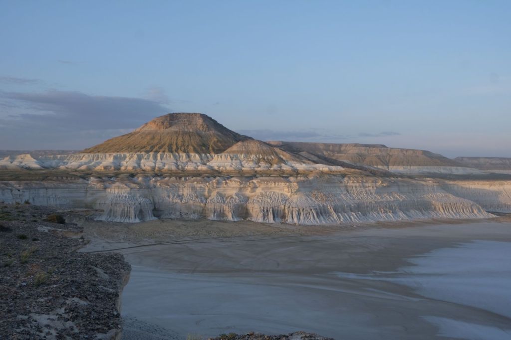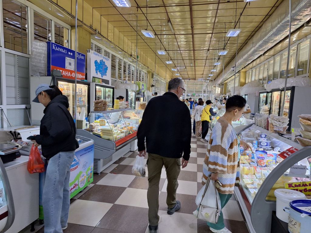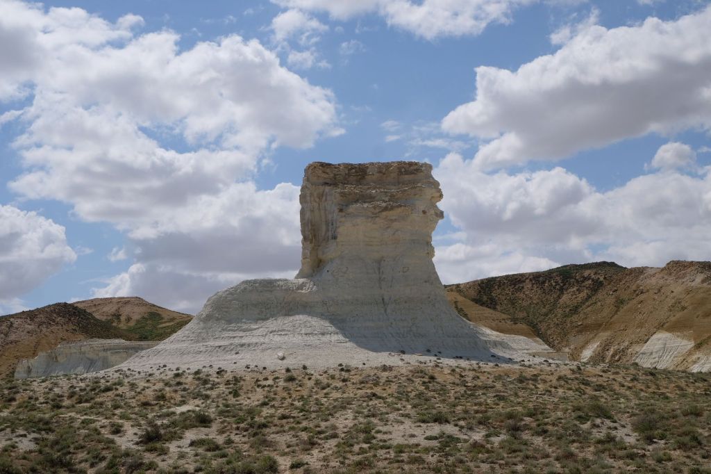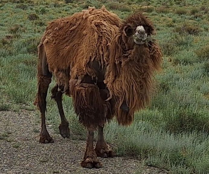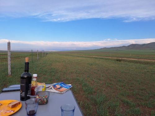 Op 20 september rijden we van Aktobe een lang rit van 400 km over de eindeloze steppen. En eigenlijk heeft ook dat wel wat. Af en toe zien we kamelen, maar ook groepjes combines die de eindeloze vlaktes met graan in formatie maaien, een fraai gezicht. Ik heb gelezen dat de weg van Muchir naar Qulsary inmiddels asfalt is geworden en dan zouden we het Akkermesh plateau kunnen bezoeken. We vinden het begin van de weg, maar al snel zijn er twee bypasses door een soort fesh-fesh zand. Hmmm, geen goed idee. We draaien om en vinden een plekje in het dorp waar we wat beschut staan van de felle wind. Het duurt niet lang of er komt een dame langs met een telefoon in haar hand. We mogen niet op het parkeerterrein van het schooltje staan, maar ze willen ons naar een betere plek begeleiden. We rijden achter haar man aan, die ze heeft opgetrommeld, en we worden naar het plaatselijke wegrestaurant gereden. Ach ja, geen topplek, maar we doen het er mee. Ik maak een lekker visje met zoete aardappelpuree en salade. Na he ontbijt rijden we in de miezerregen naar Atyrau, een grote stad met veel olie-industrie. We wassen de Chef in een wasstraat, waarbij we de eigenaar iedere keer moeten vragen om met z’n telefoon digitaal te betalen. Hij begrijpt niet helemaal dat we eerst willen afspuiten, dan sop en dan nog afspoelen. Zal best, maar onze Chef glimt weer als vanouds! Als we de stad verder inrijden, raakt een man aan de kant van de weg in vervoering als ie ons ziet. Het filmpje is van de dashcam en kort, maar je ziet duidelijk dat hij een hartje maakt als we langsrijden. We parkeren in het Retro Park en krijgen dan ook gezelschap van Duitsers met een grote MAN-vrachtwagen. We kletsen wat en wandelen dan via het park, langs de rivier naar de plaatselijk mall, waar ook weer niets te beleven valt. We eten echt Kazachs bij Sarqyt. Ik eet mijn favoriete salade met krokante aubergine en een gestoofde runderrib. Joost waagt zich aan een gerecht met merg en een enorm stuk lamsstoofvlees. We drinken er een alcoholvrije mojito limonade bij, want moslims schenken geen alcohol! Het was heerlijk.