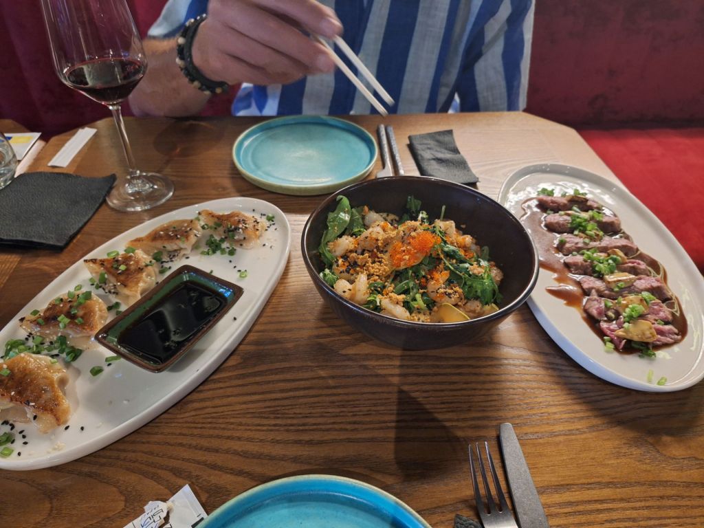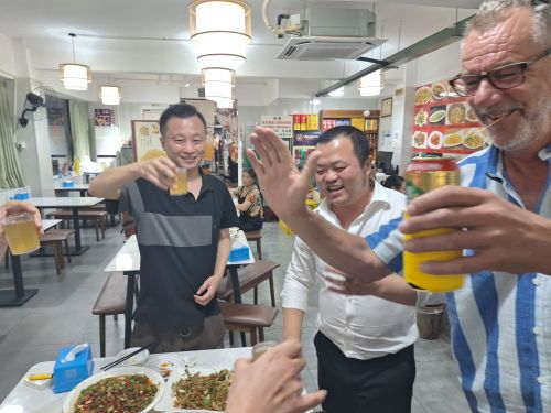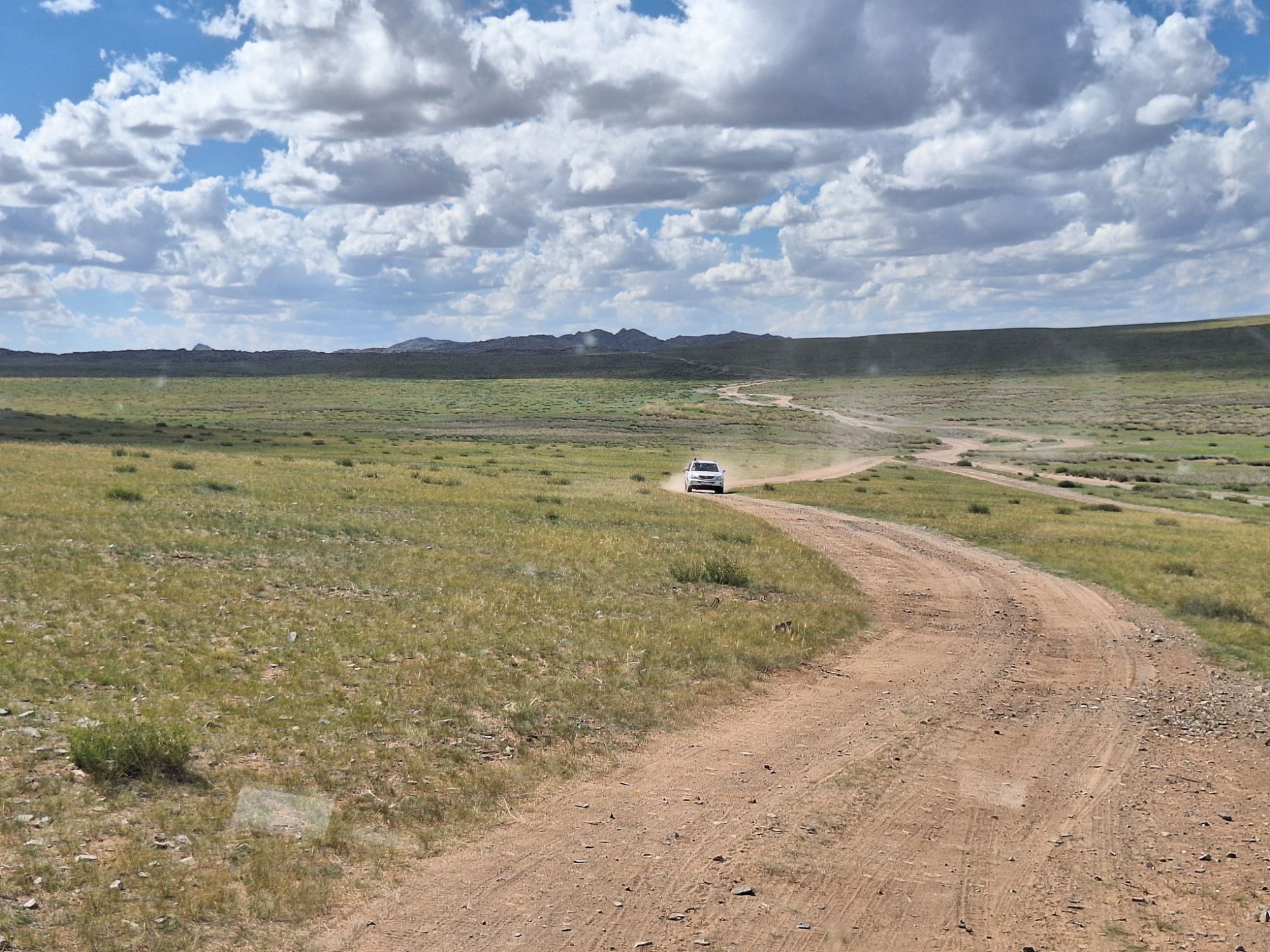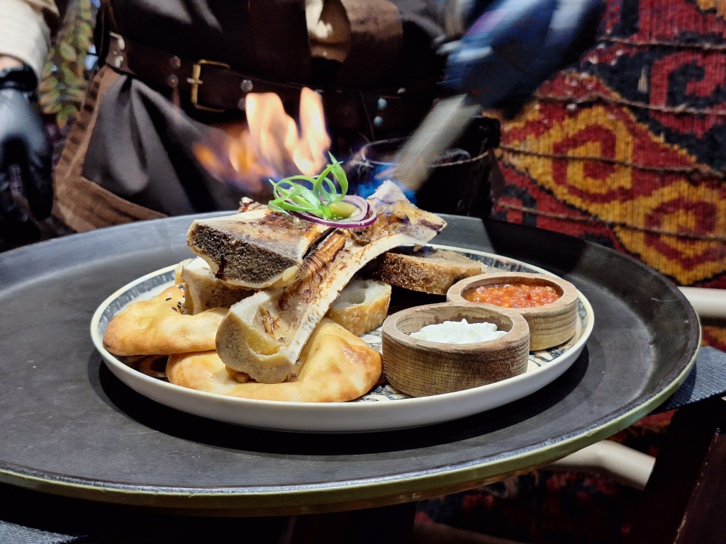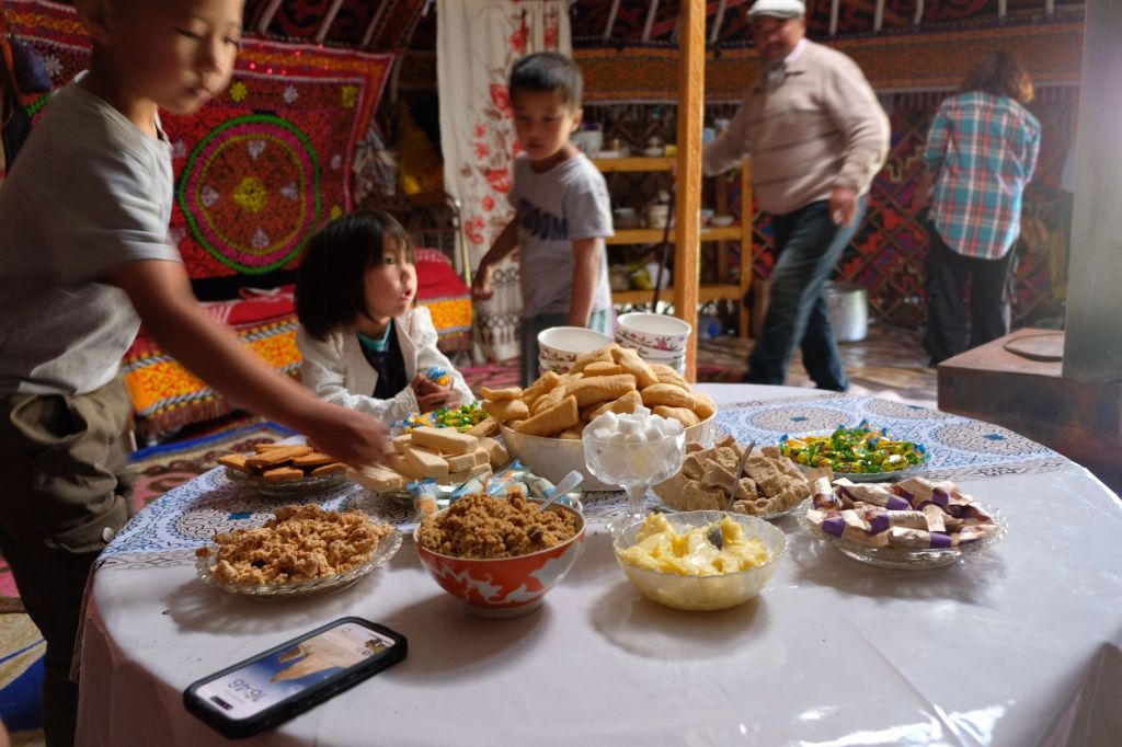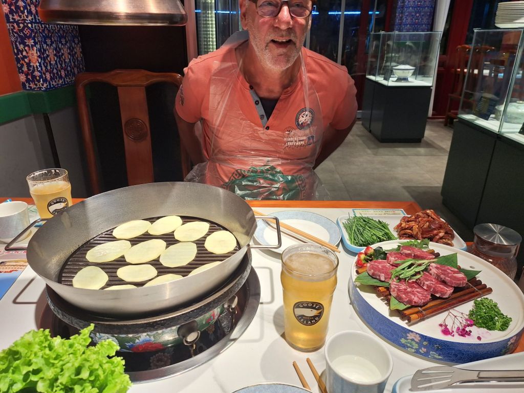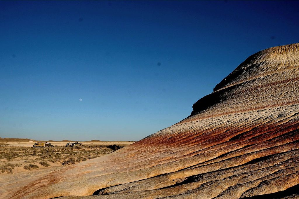 Op 20 september rijden we van Aktobe een lang rit van 400 km over de eindeloze steppen. En eigenlijk heeft ook dat wel wat. Af en toe zien we kamelen, maar ook groepjes combines die de eindeloze vlaktes met graan in formatie maaien, een fraai gezicht. Ik heb gelezen dat de weg van Muchir naar Qulsary inmiddels asfalt is geworden en dan zouden we het Akkermesh plateau kunnen bezoeken. We vinden het begin van de weg, maar al snel zijn er twee bypasses door een soort fesh-fesh zand. Hmmm, geen goed idee. We draaien om en vinden een plekje in het dorp waar we wat beschut staan van de felle wind. Het duurt niet lang of er komt een dame langs met een telefoon in haar hand. We mogen niet op het parkeerterrein van het schooltje staan, maar ze willen ons naar een betere plek begeleiden. We rijden achter haar man aan, die ze heeft opgetrommeld, en we worden naar het plaatselijke wegrestaurant gereden. Ach ja, geen topplek, maar we doen het er mee. Ik maak een lekker visje met zoete aardappelpuree en salade. Na he ontbijt rijden we in de miezerregen naar Atyrau, een grote stad met veel olie-industrie. We wassen de Chef in een wasstraat, waarbij we de eigenaar iedere keer moeten vragen om met z’n telefoon digitaal te betalen. Hij begrijpt niet helemaal dat we eerst willen afspuiten, dan sop en dan nog afspoelen. Zal best, maar onze Chef glimt weer als vanouds! Als we de stad verder inrijden, raakt een man aan de kant van de weg in vervoering als ie ons ziet. Het filmpje is van de dashcam en kort, maar je ziet duidelijk dat hij een hartje maakt als we langsrijden. We parkeren in het Retro Park en krijgen dan ook gezelschap van Duitsers met een grote MAN-vrachtwagen. We kletsen wat en wandelen dan via het park, langs de rivier naar de plaatselijk mall, waar ook weer niets te beleven valt. We eten echt Kazachs bij Sarqyt. Ik eet mijn favoriete salade met krokante aubergine en een gestoofde runderrib. Joost waagt zich aan een gerecht met merg en een enorm stuk lamsstoofvlees. We drinken er een alcoholvrije mojito limonade bij, want moslims schenken geen alcohol! Het was heerlijk.